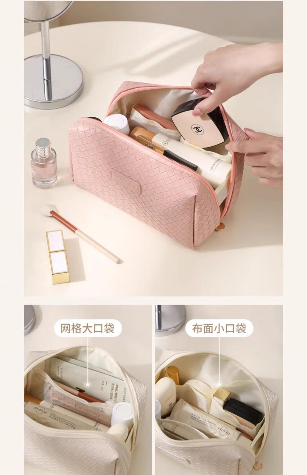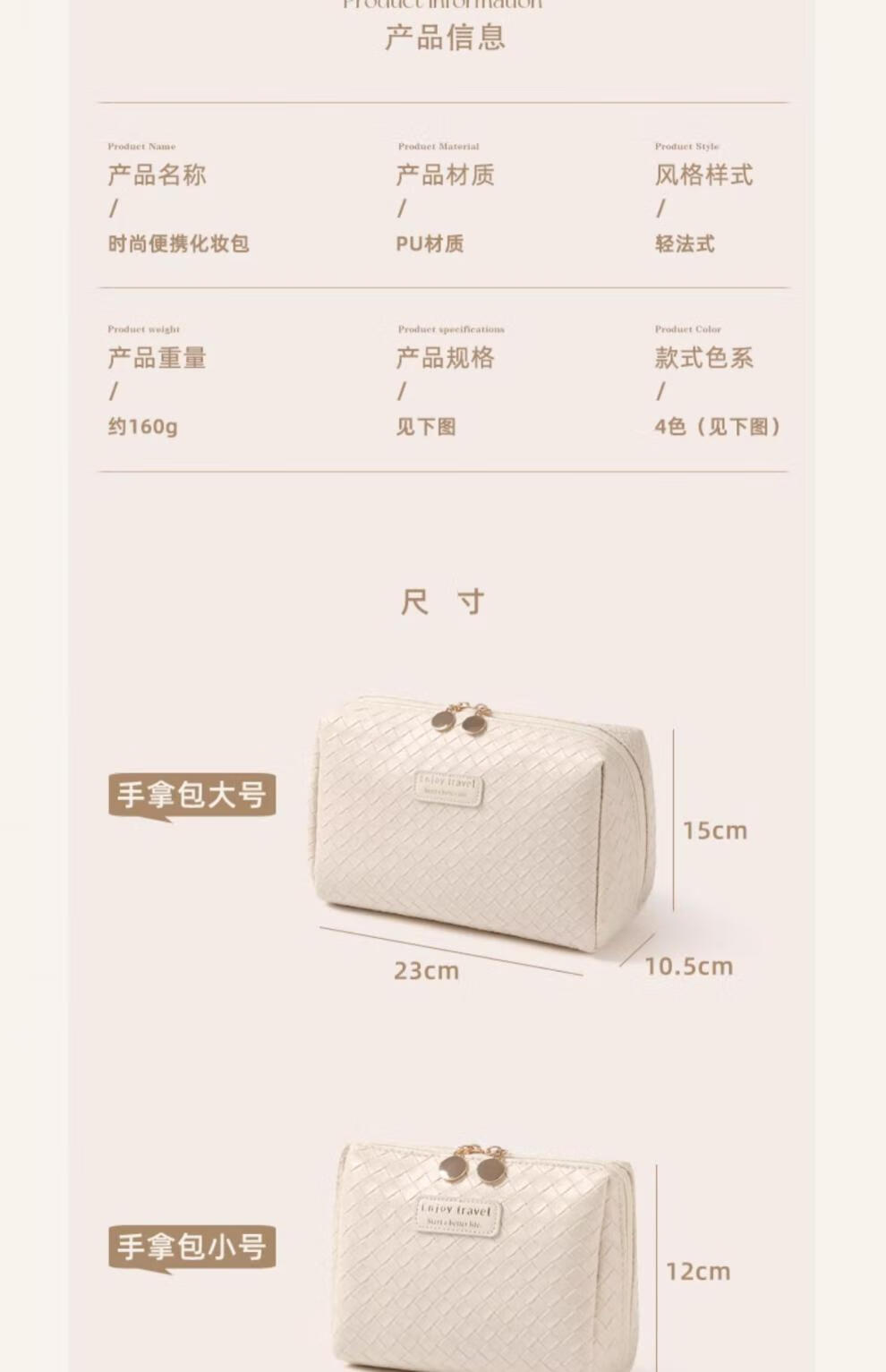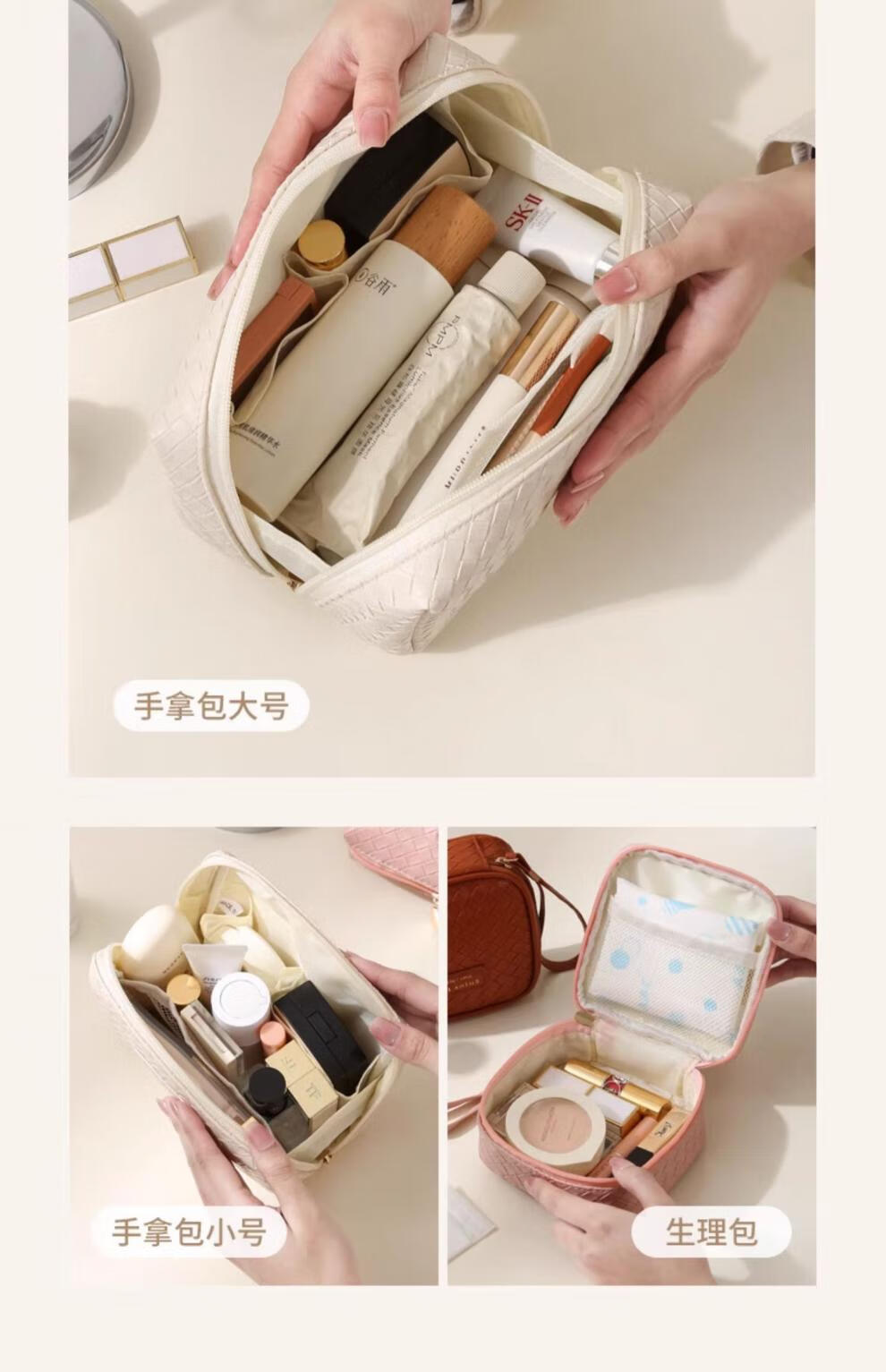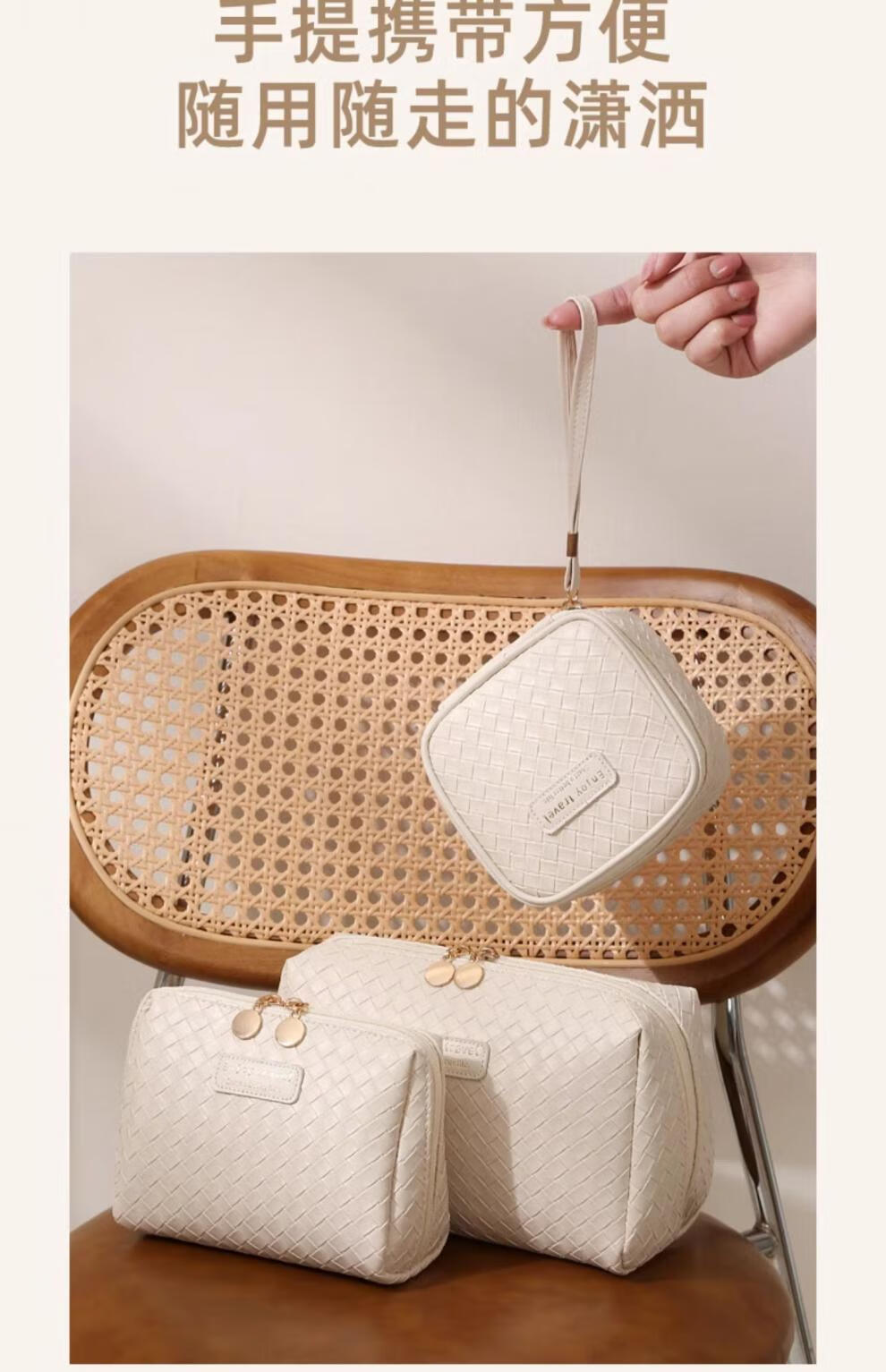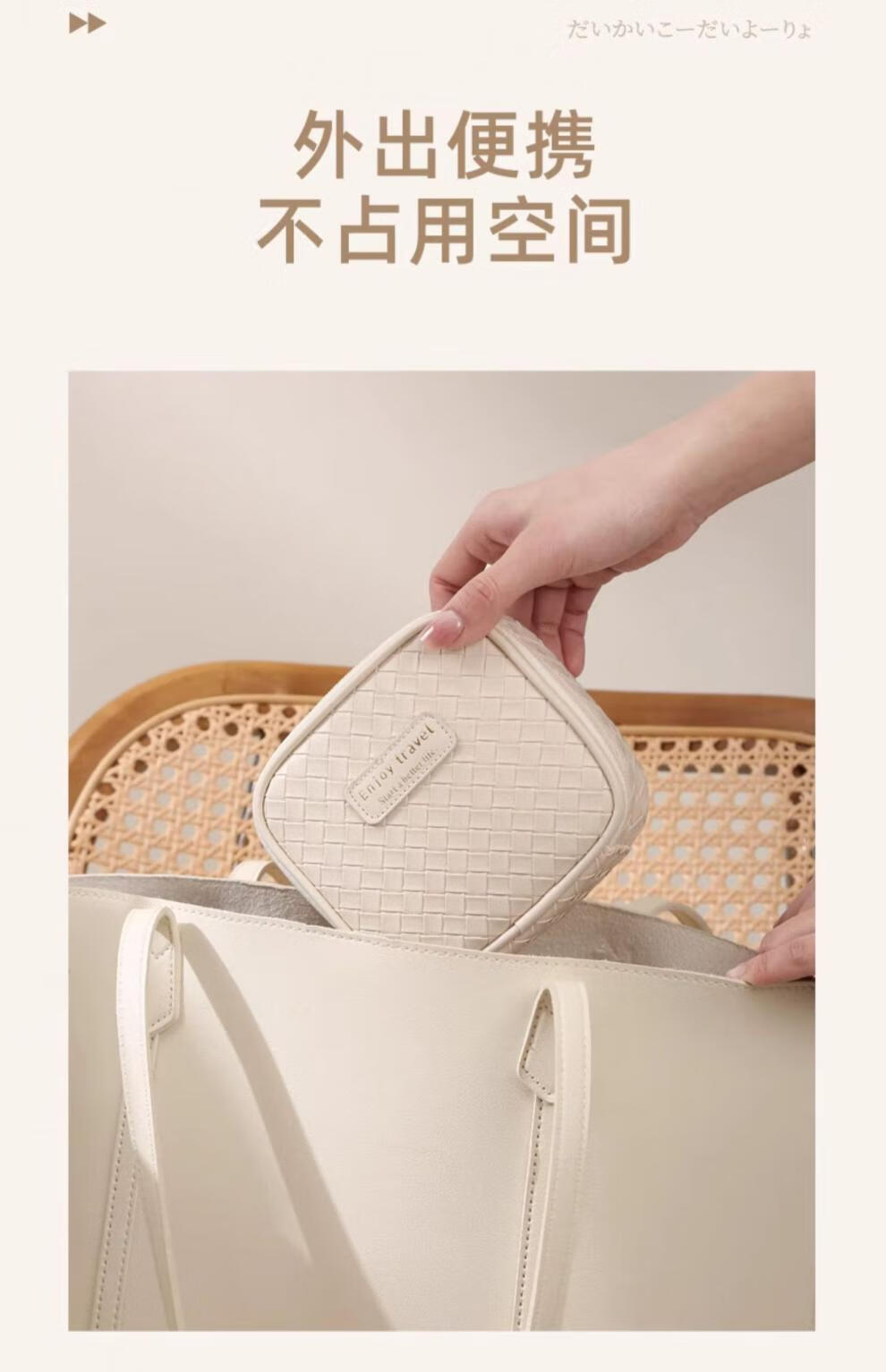 XMSJ Japanese imported quality cosmetic bag for women 2025 new portable small cosmetic storage bag travel cosmetic bag bag French woven clutch white large size