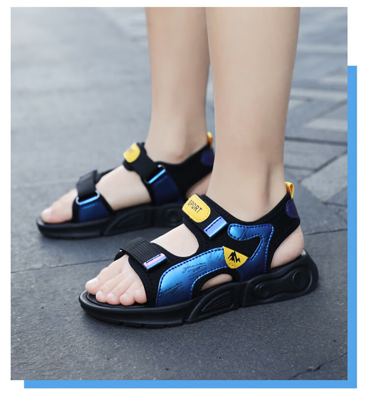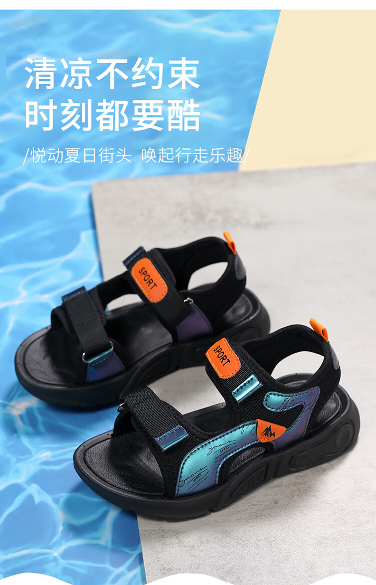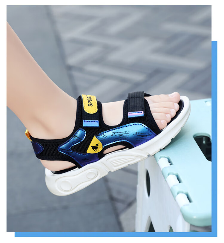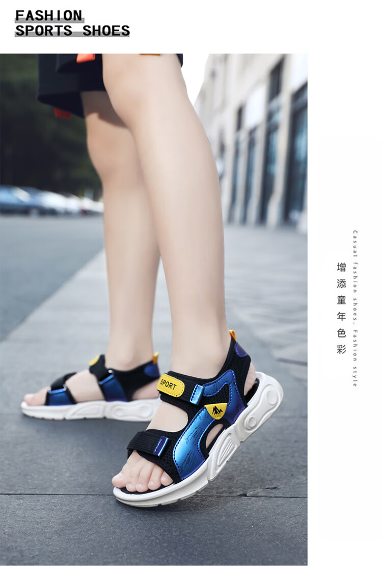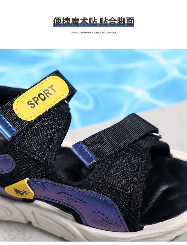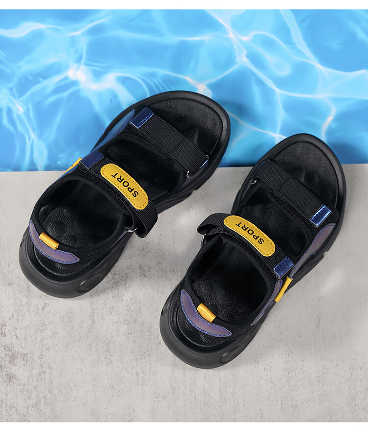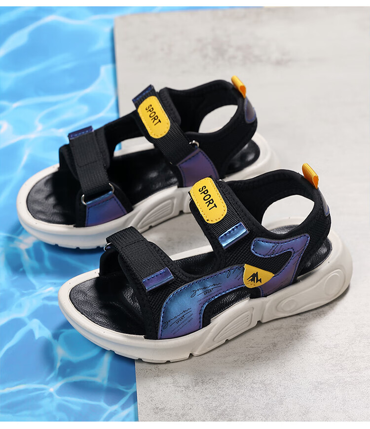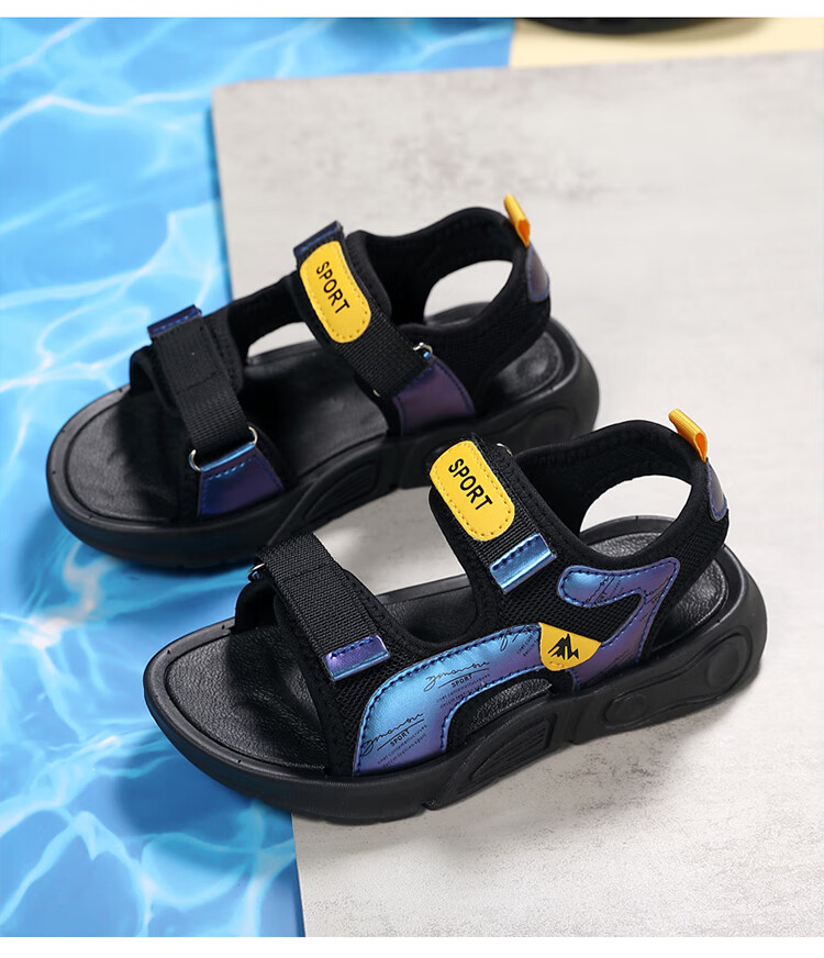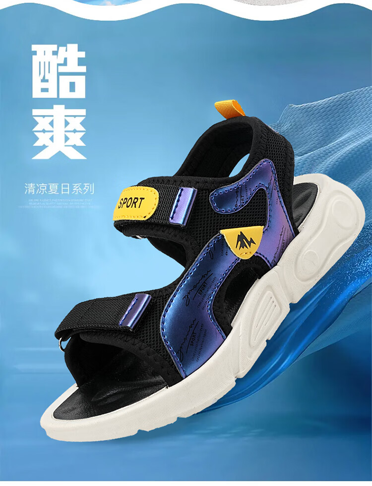 Children's sports sandals 2025 summer new fashion medium and large children's open-toed sandals boys' lightweight soft-soled beach shoes black and yellow 29 inner length 18.5 cm