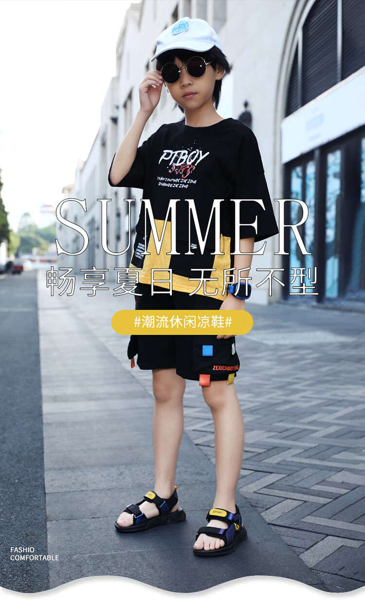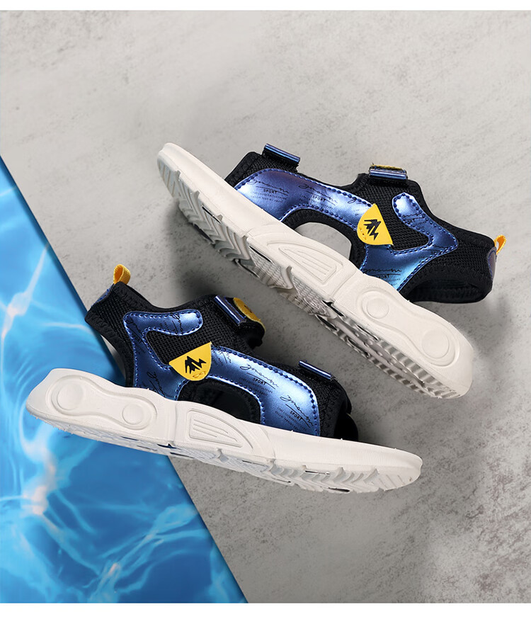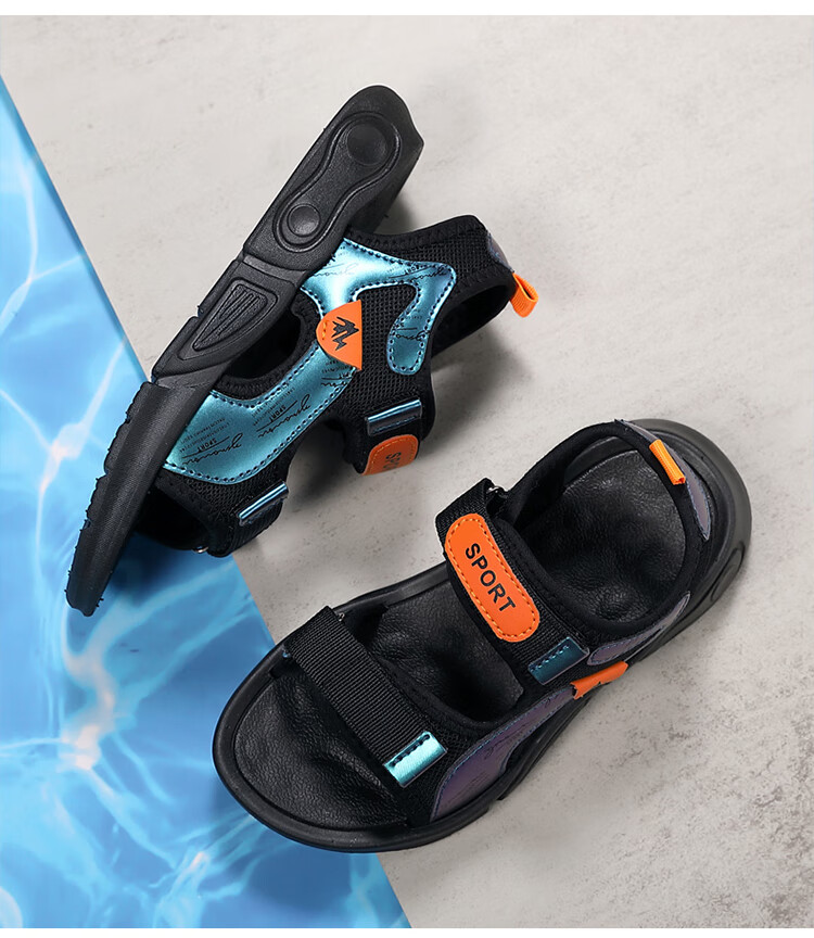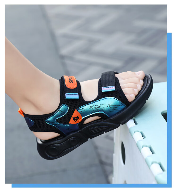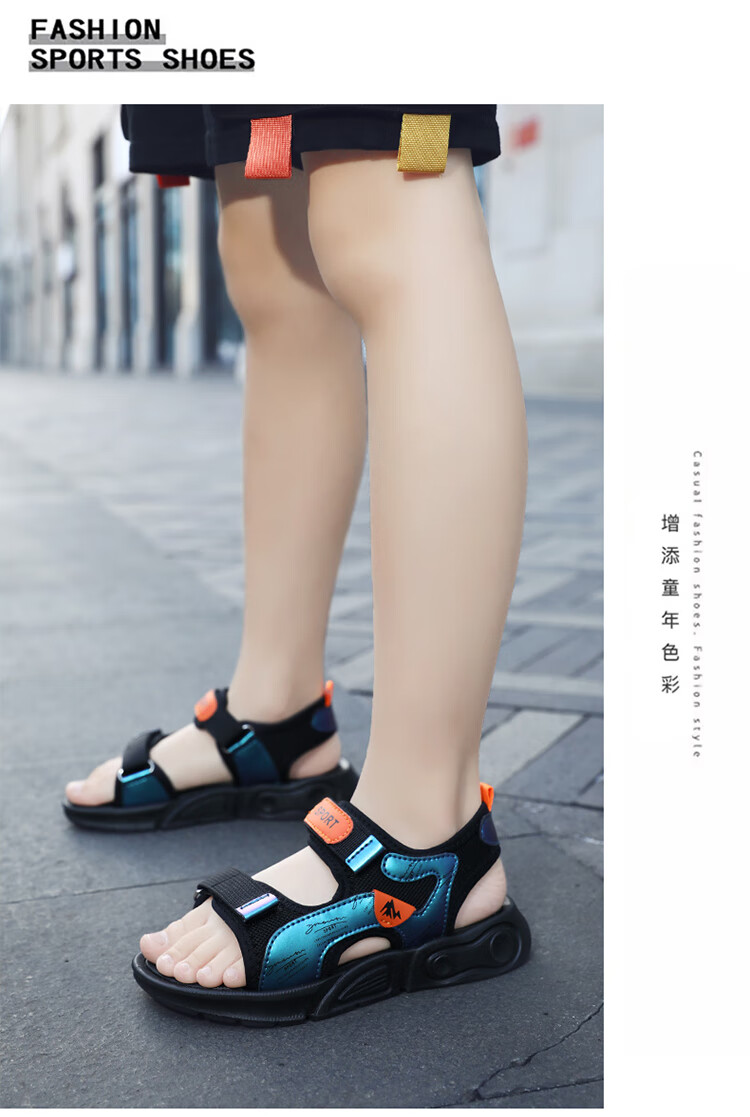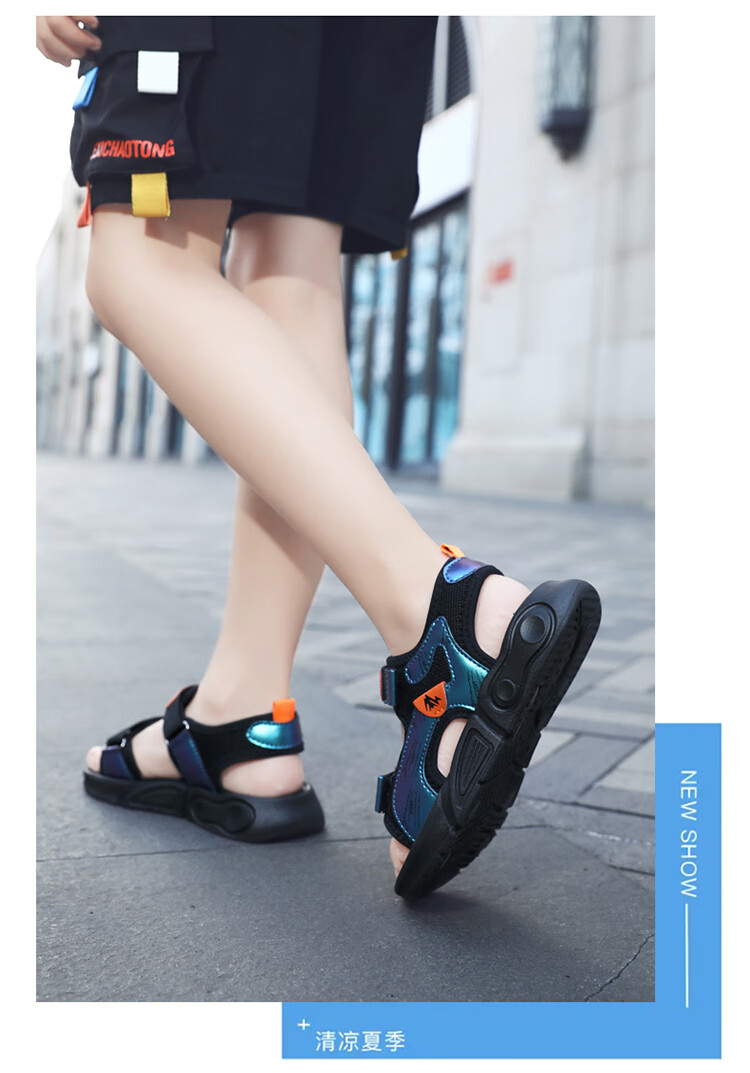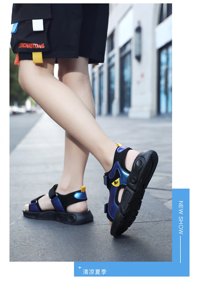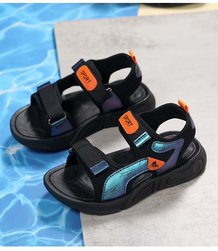 Children's sports sandals 2025 summer new fashion medium and large children's open-toed sandals boys' lightweight soft-soled beach shoes black and yellow 29 inner length 18.5 cm