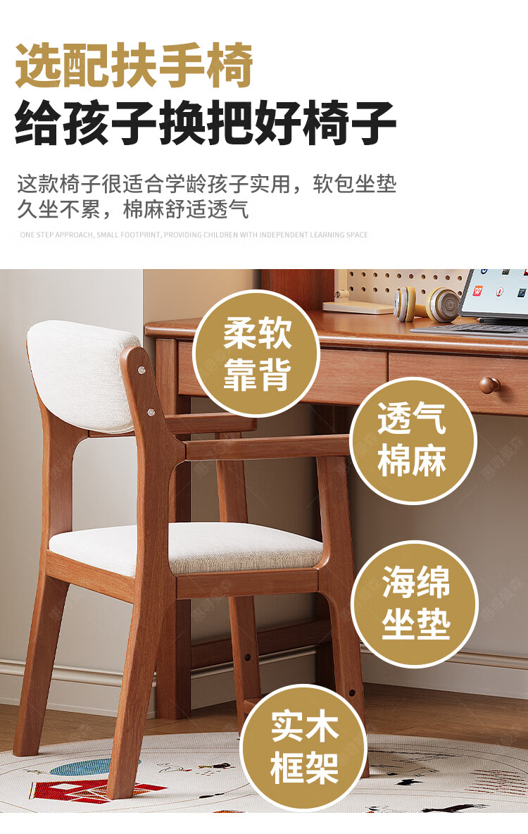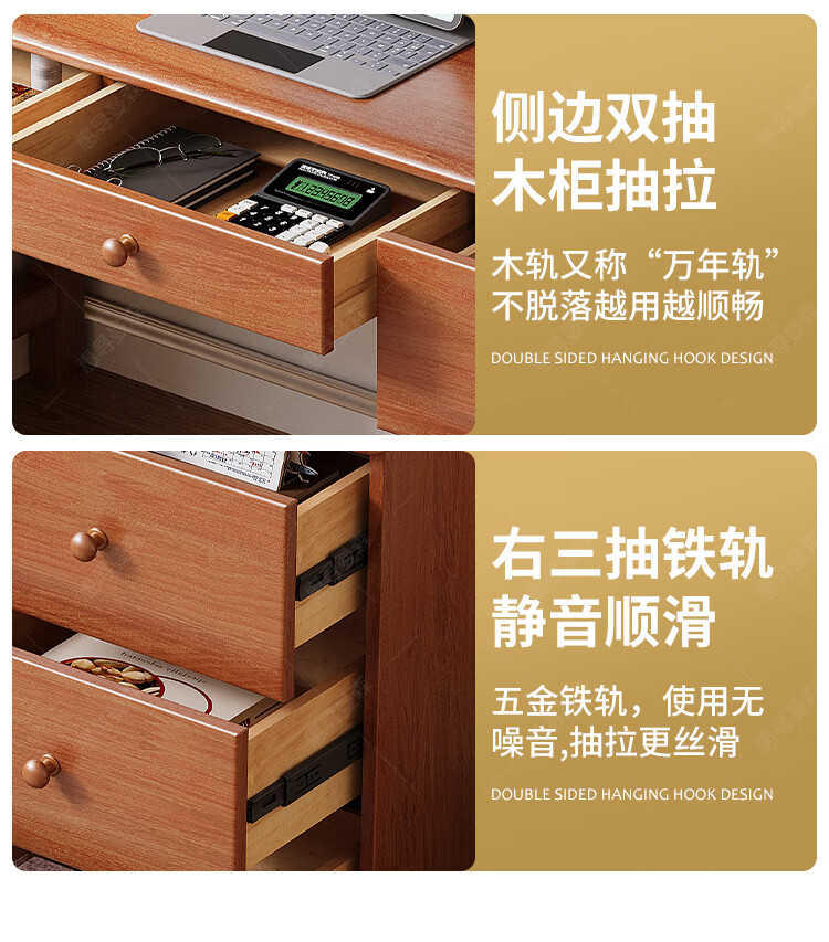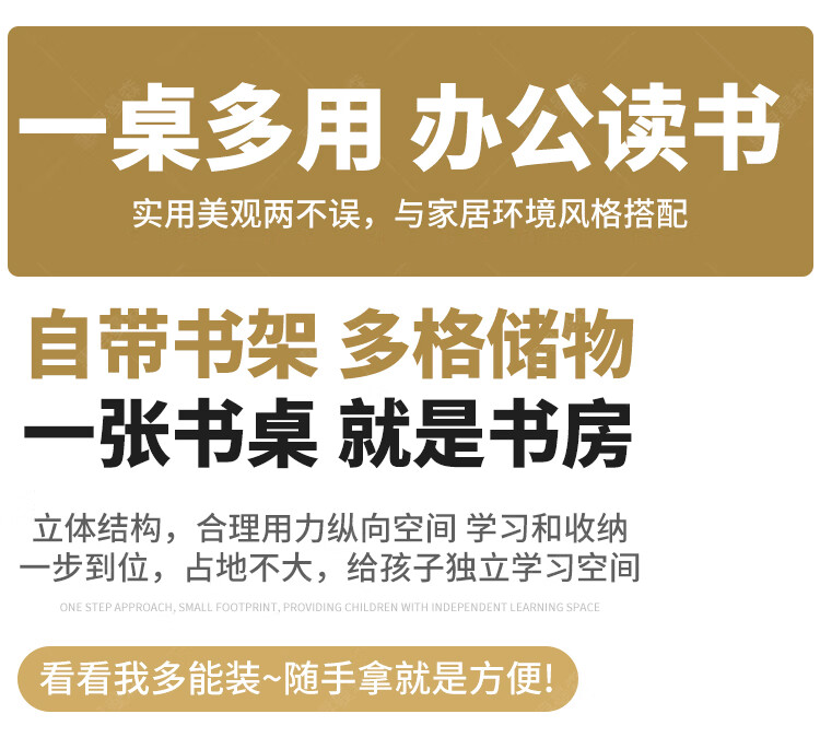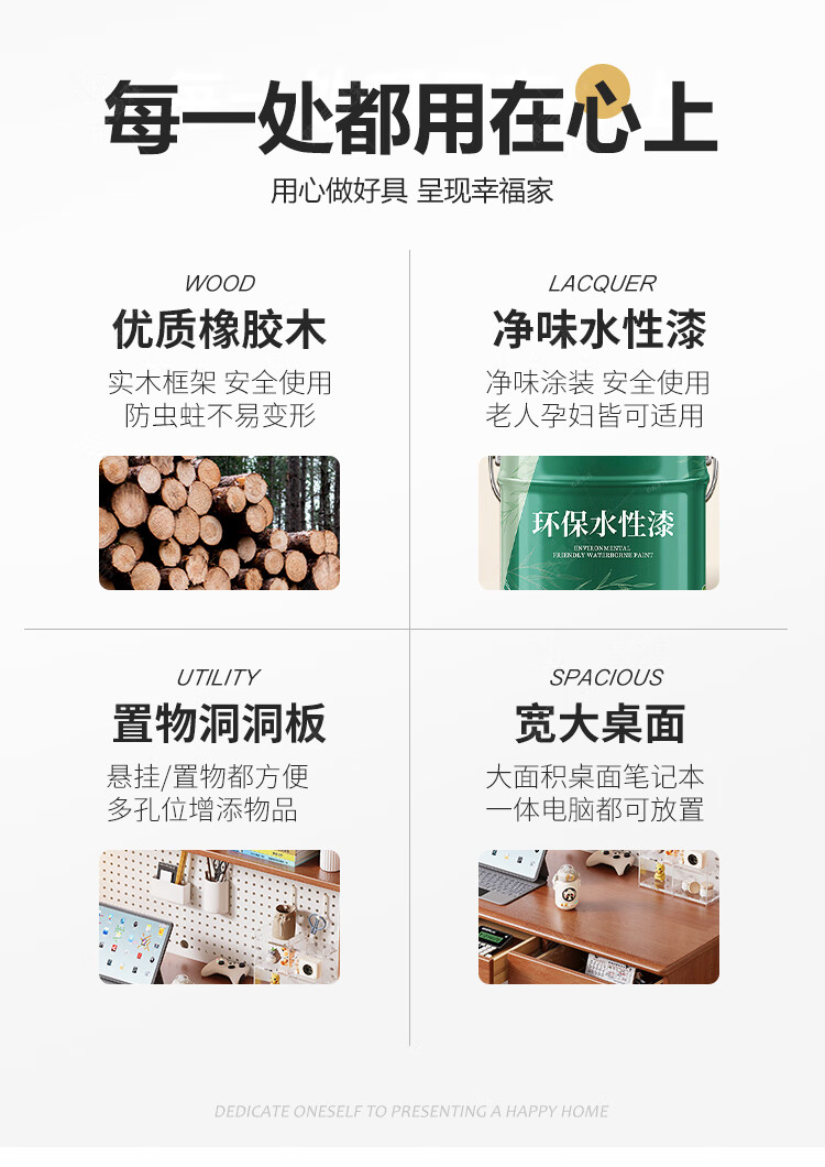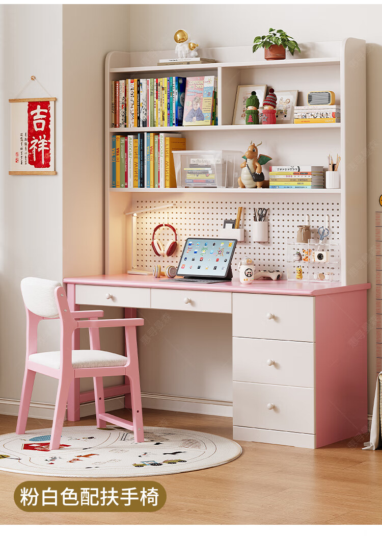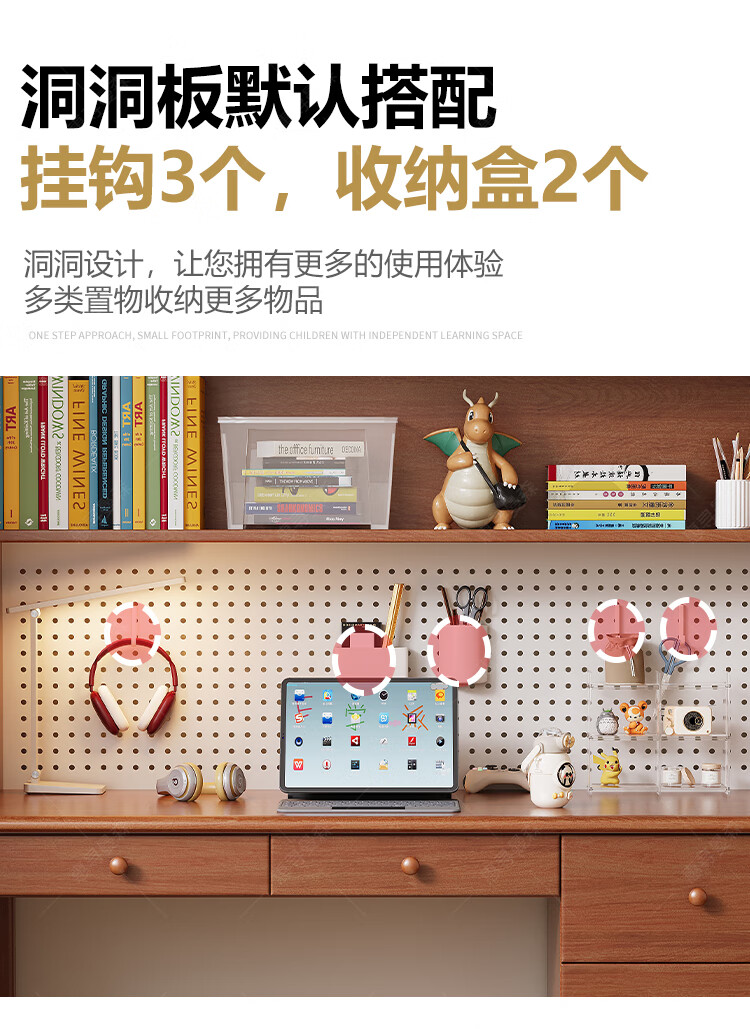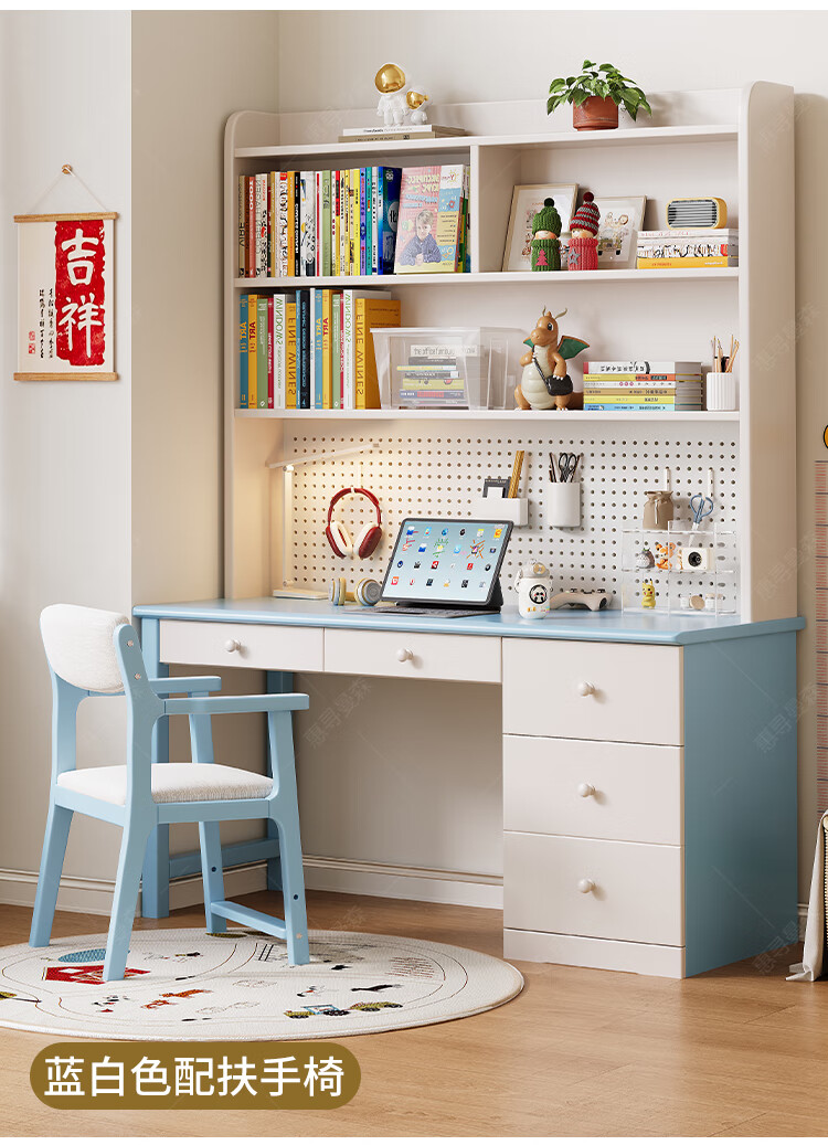 Huixun solid wood desk with bookshelf integrated table perforated board student children study table bedroom home office computer table walnut color desk + bookshelf 100cm*60cm*75cm total height 190cm