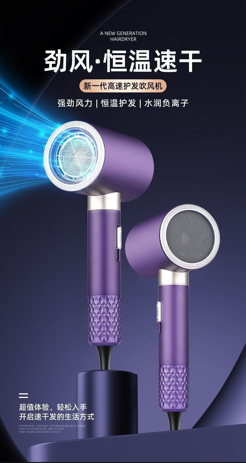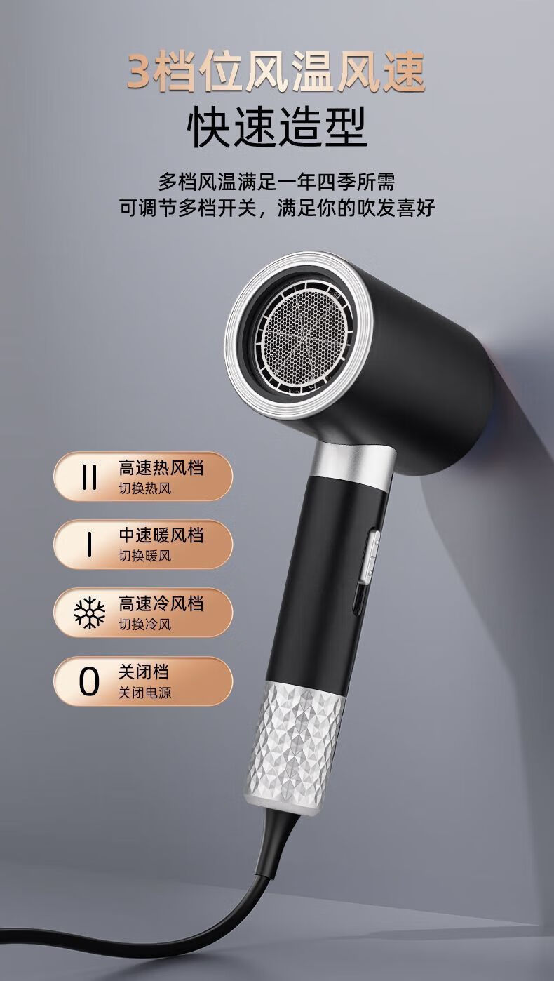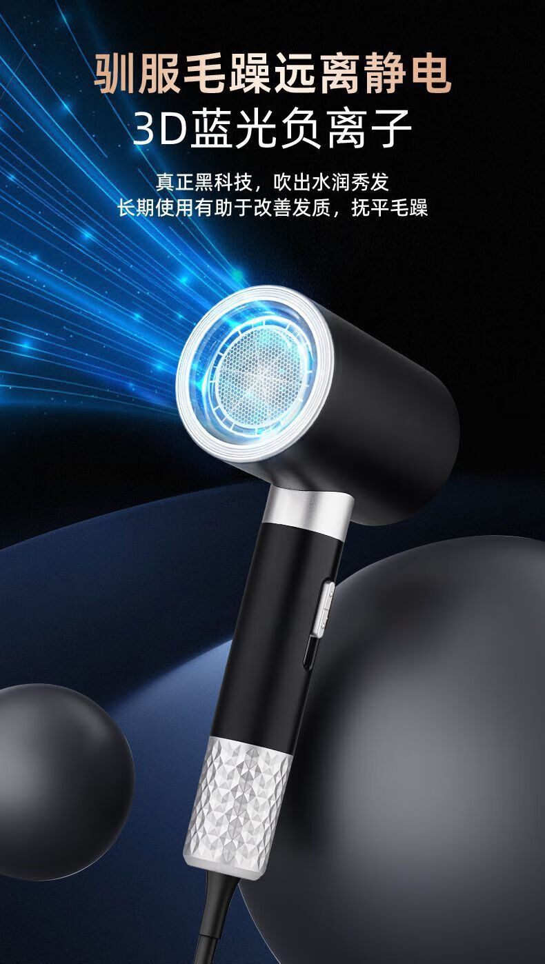Jinghuang, the most popular hair dryer on the Internet, home silent negative ions, high power, non-damaging, student dormitory hair dryer, barber shop special high wind, high speed drying, noise reduction hair care, dark night black, collagen 500 million water negative ions, 800W Jinghuang