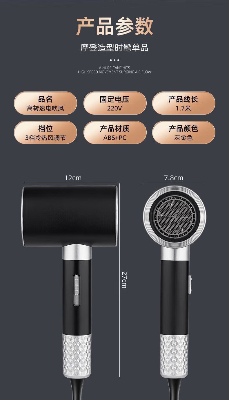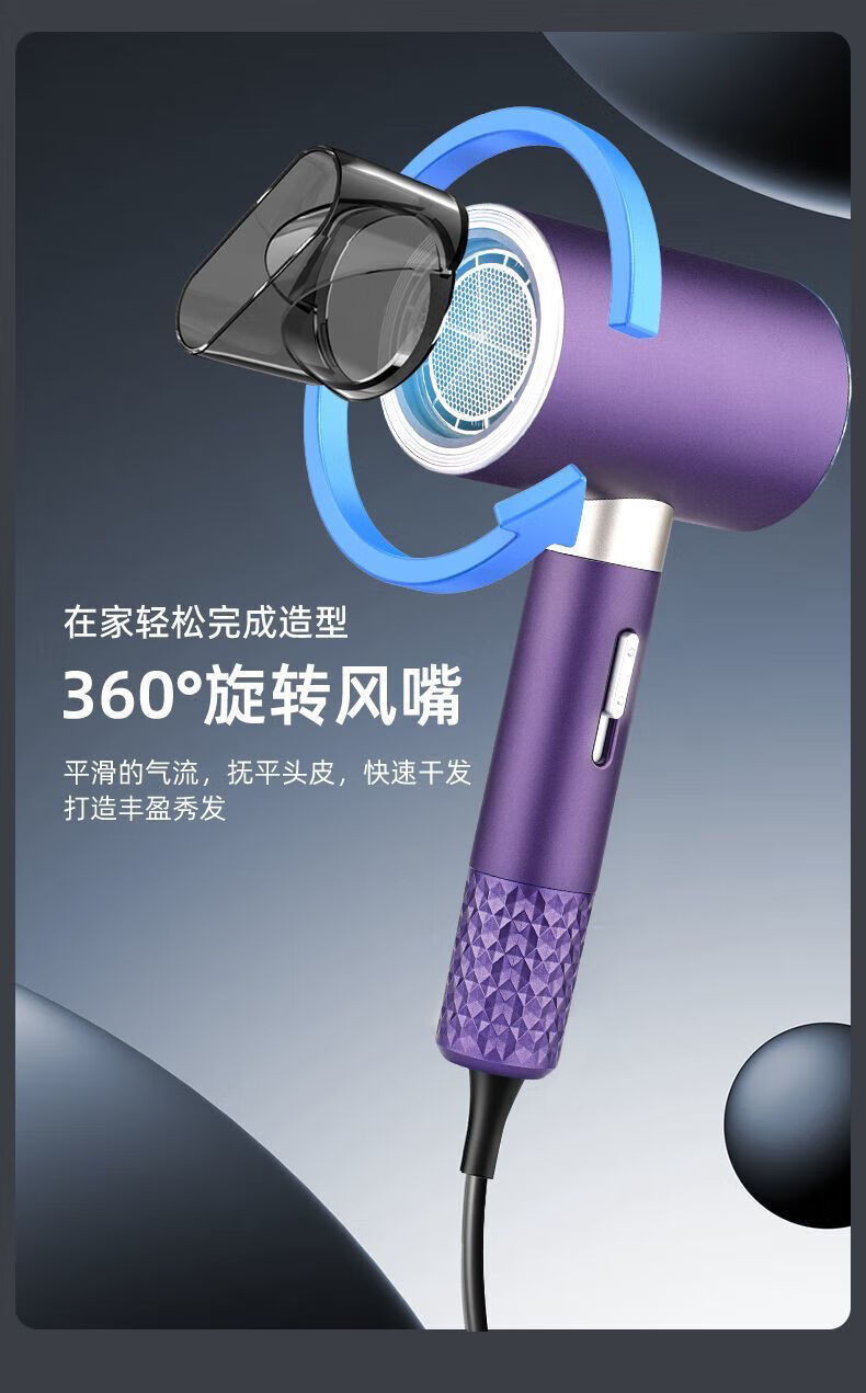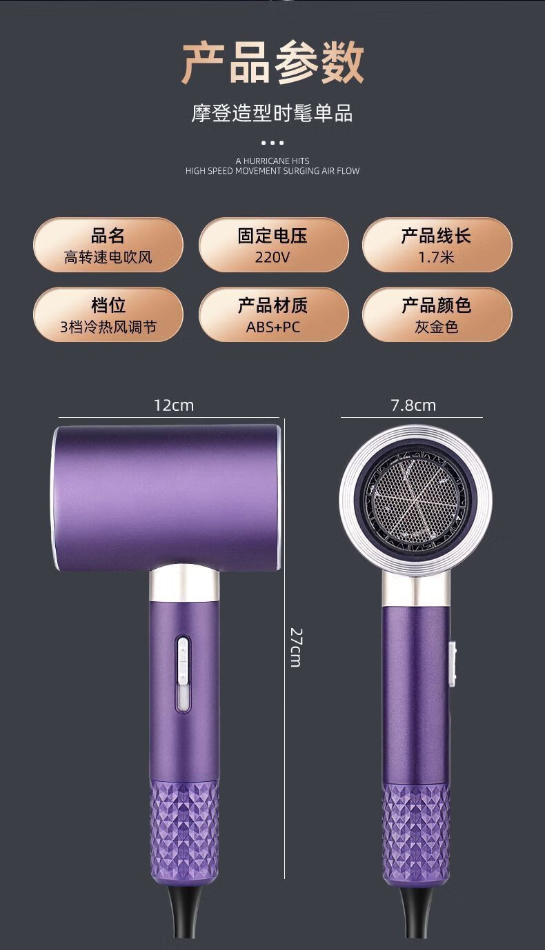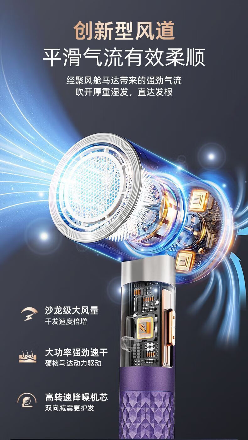 Jinghuang, the most popular hair dryer on the Internet, home silent negative ions, high power, non-damaging, student dormitory hair dryer, barber shop special high wind, high speed drying, noise reduction hair care, dark night black, collagen 500 million water negative ions, 800W Jinghuang