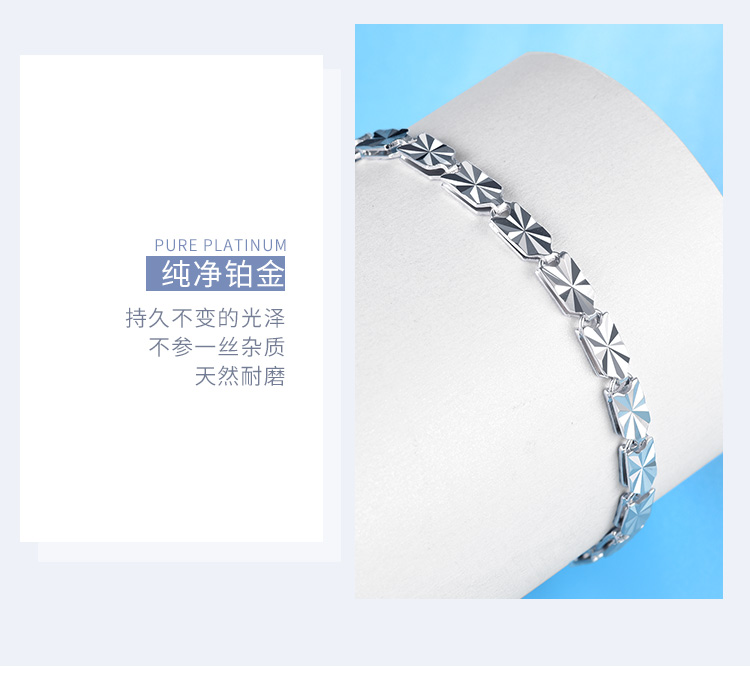 Whiskey Platinum Bracelet Women's Pt950 Platinum Bracelet Fashion Super Shiny Simple Couple Bracelet Perkin Carved Square Chain Other Weights and Repairs Contact Customer Service for Price Changes Single Shots Will Not Be Delivered