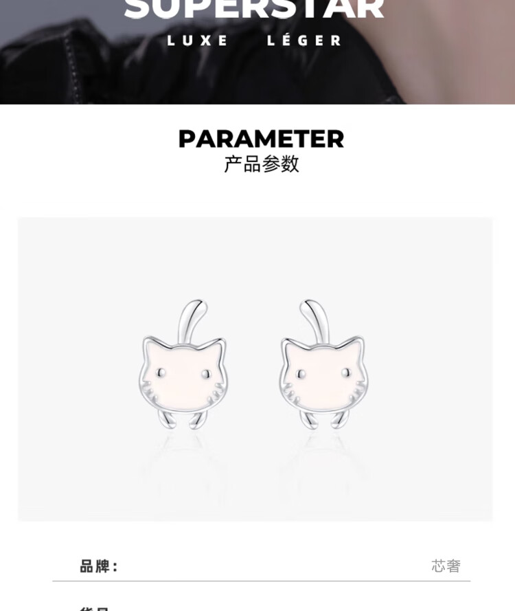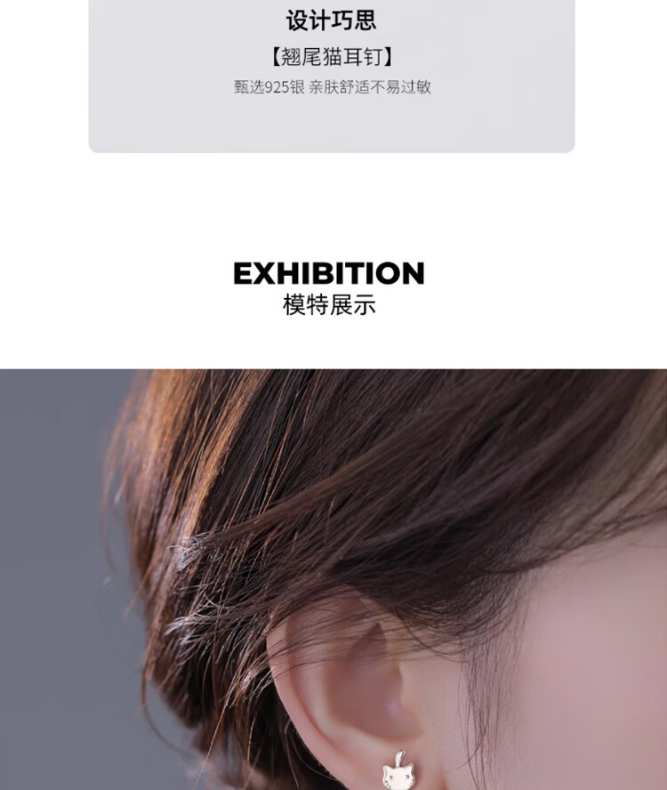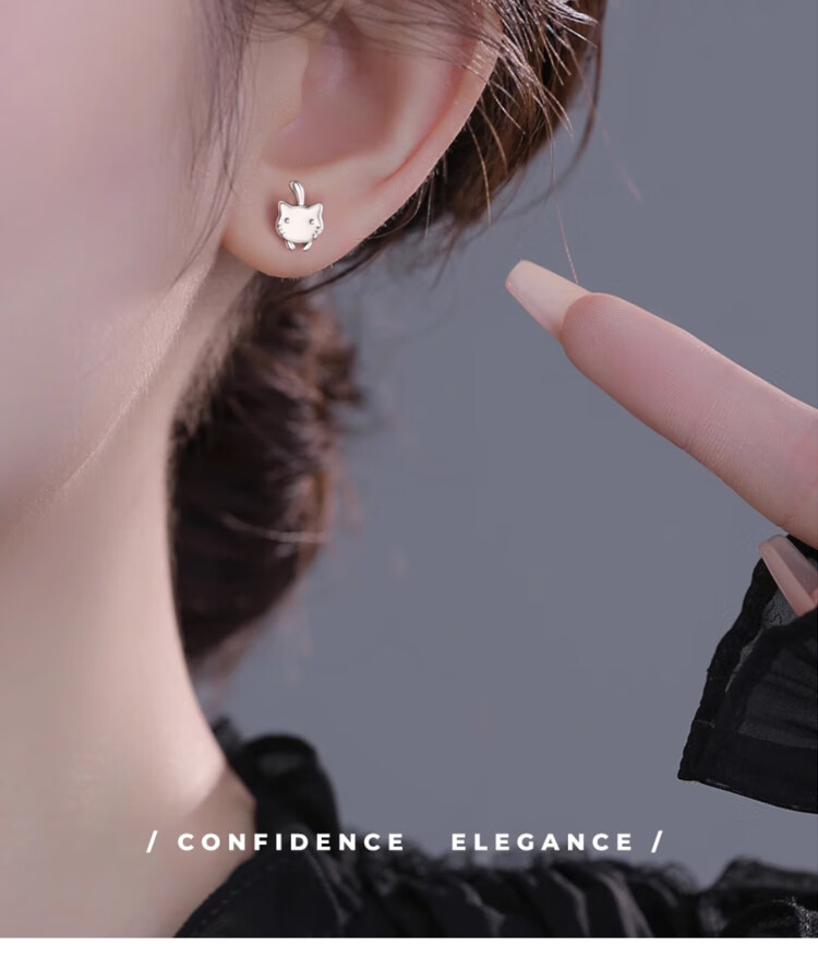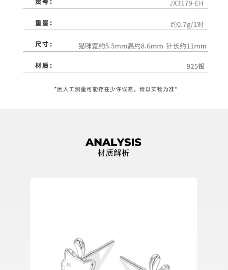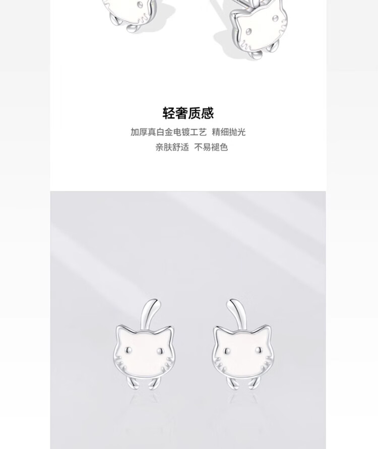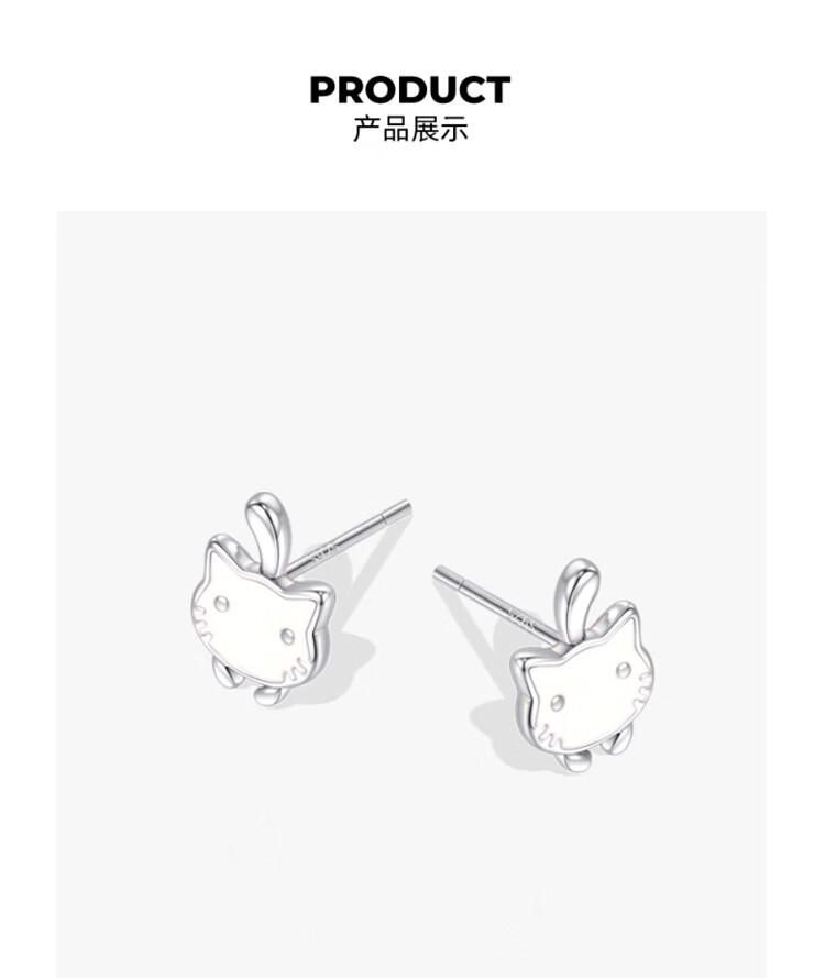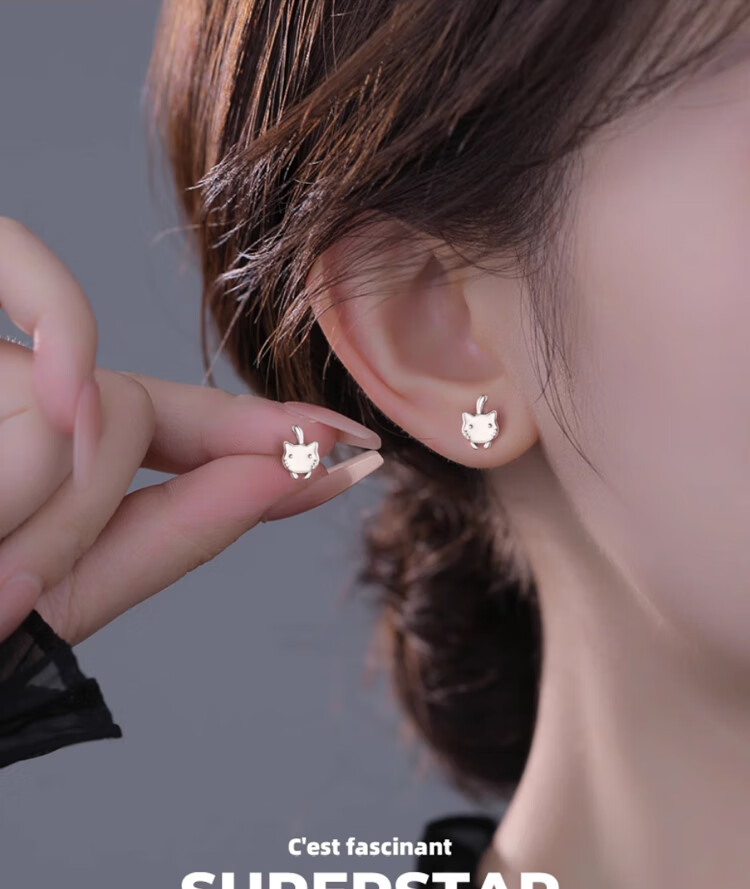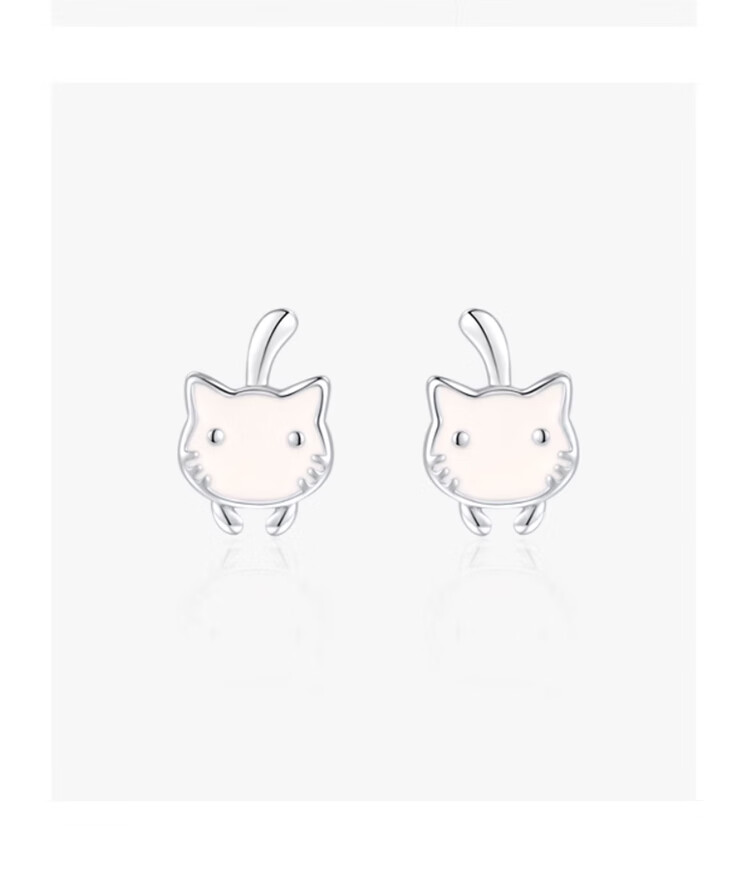 Xinshe s925 sterling silver cartoon cat earrings for women with pierced ears for sleeping, no need to pick them up, small and exquisite silver earrings, non-allergenic s925 sterling silver kitten earrings