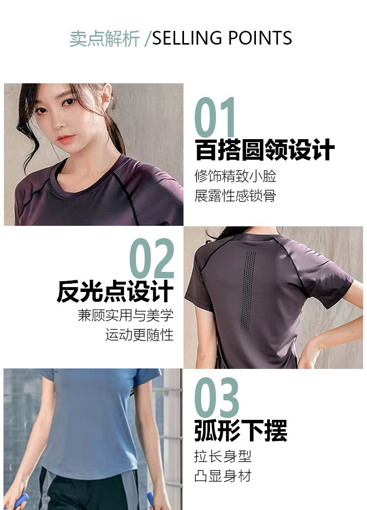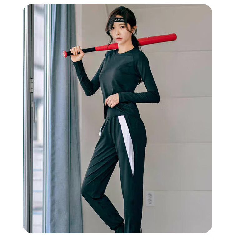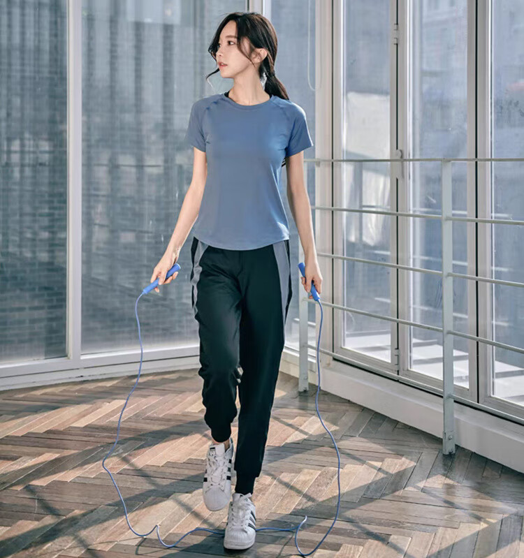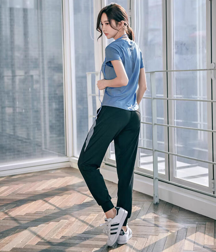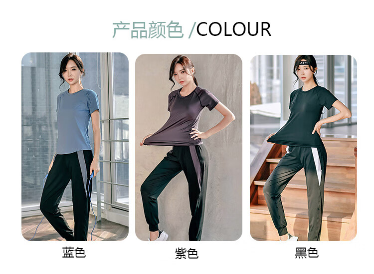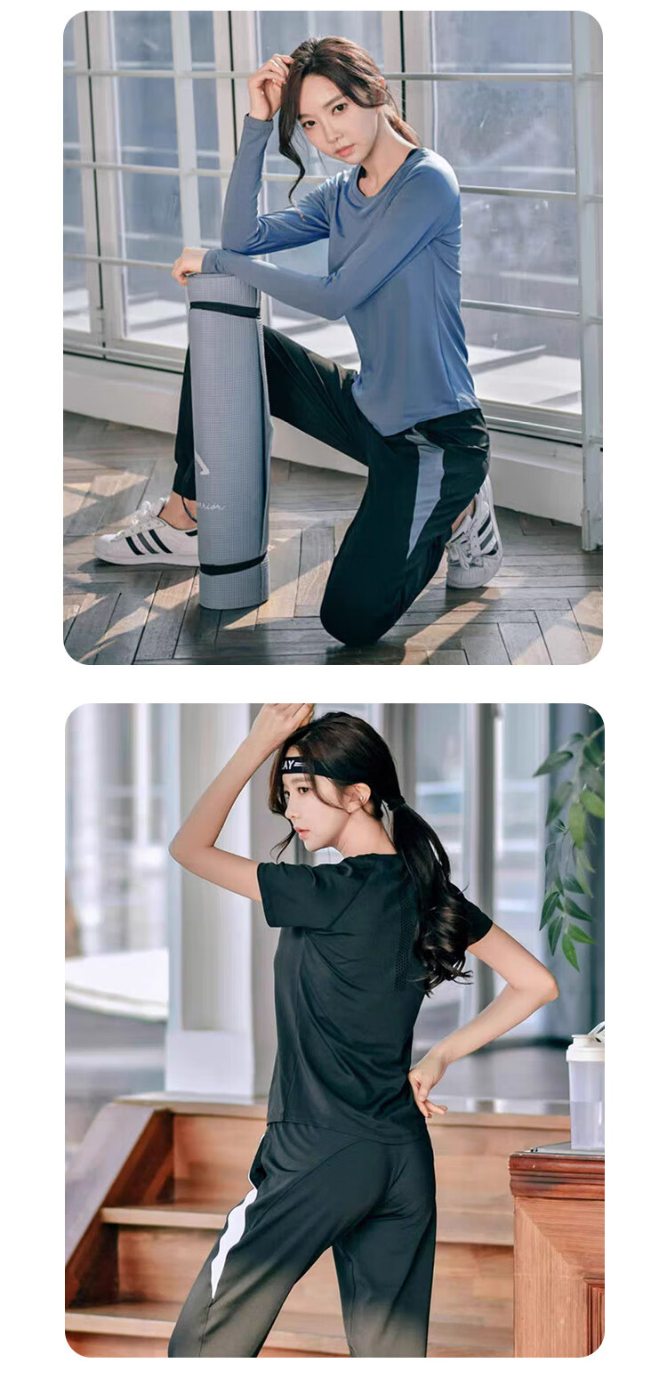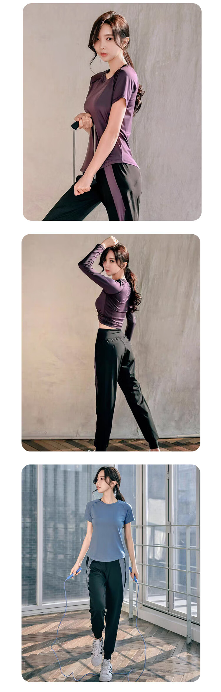 Nobana fitness sports suit Pilates women's loose long-sleeved sports running quick-drying clothing breathable yoga practice clothing purple short-sleeved + purple trousers M