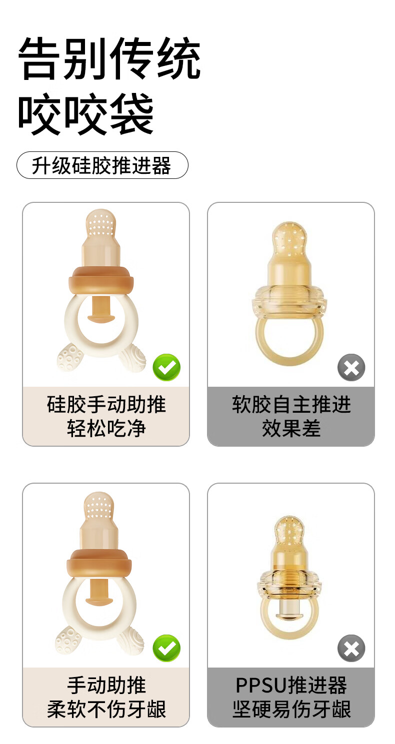 Hanyuan Bite Baby Fruit Eating Artifact Baby Fruit and Vegetable Bite Bag Bite Play Fruit Food Complementary Silicone Teether L 0-18 Months Upgraded Silicone Propeller 1 Pack