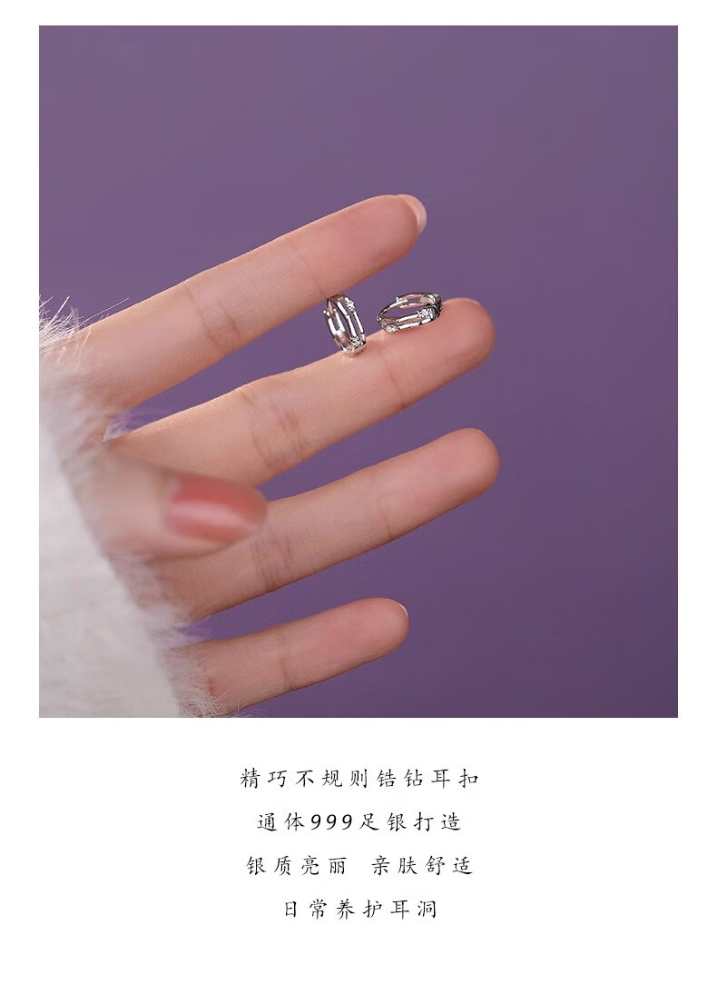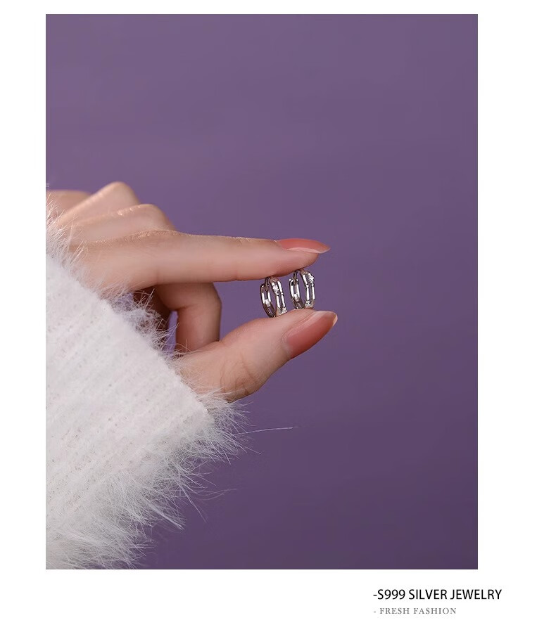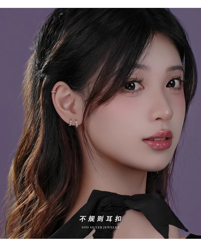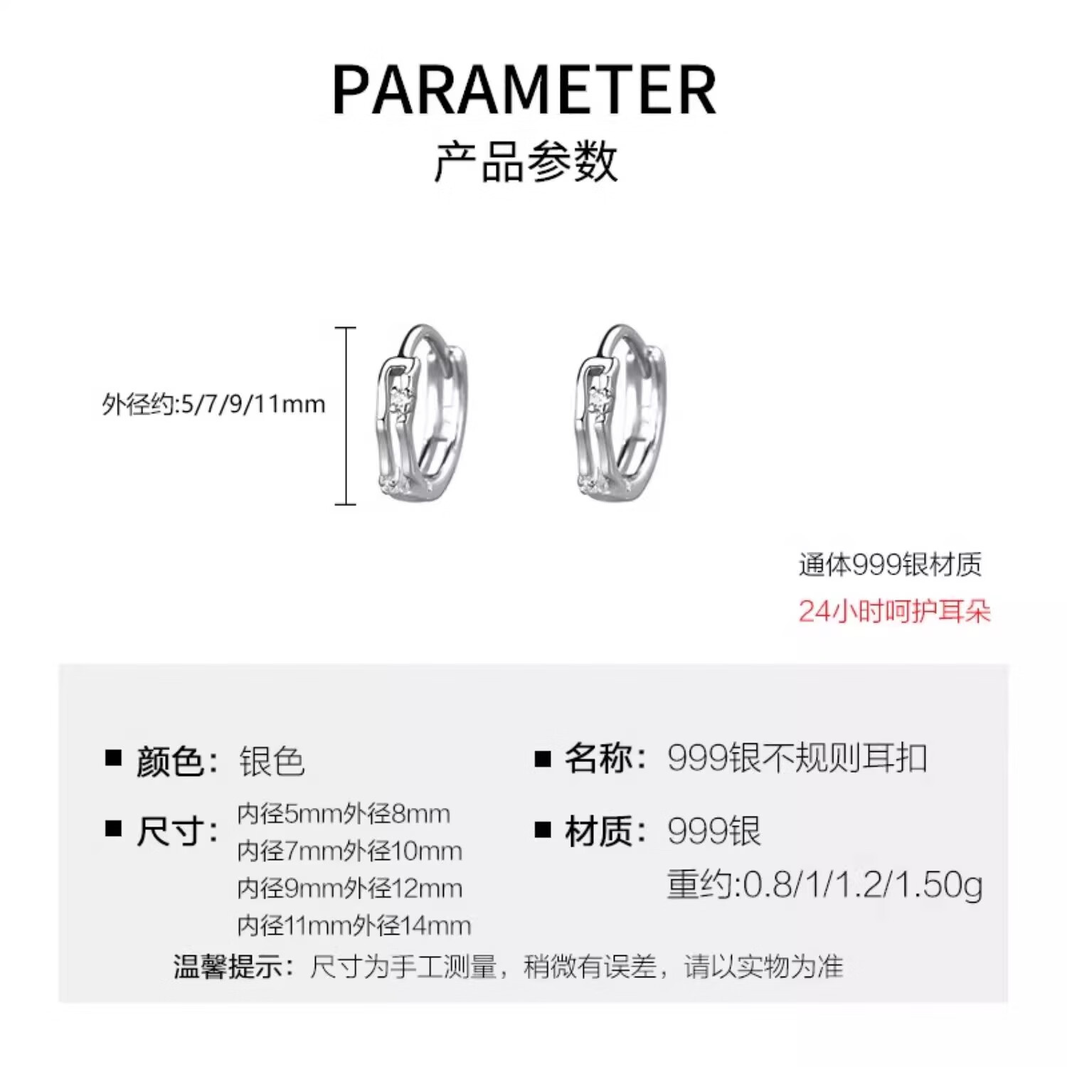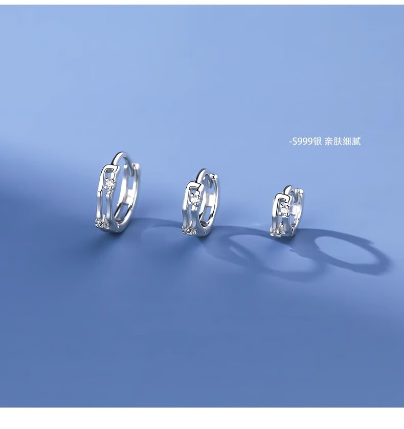 BJYLS999 pure silver earrings for women niche design high-end earrings sterling silver ear piercing ear bone studs earrings ear buckle jewelry S999 pure silver earrings-12mm (pair)