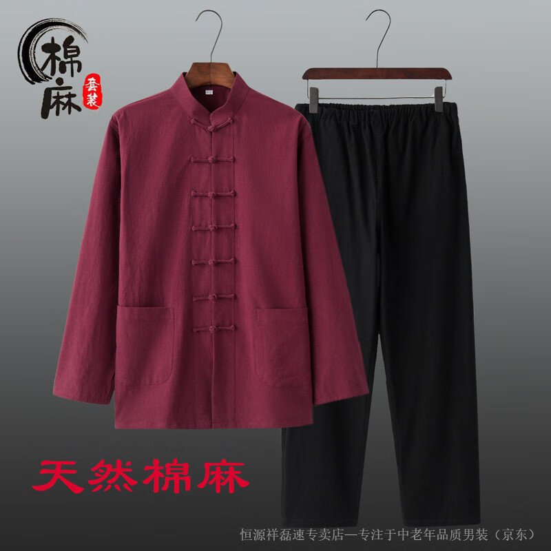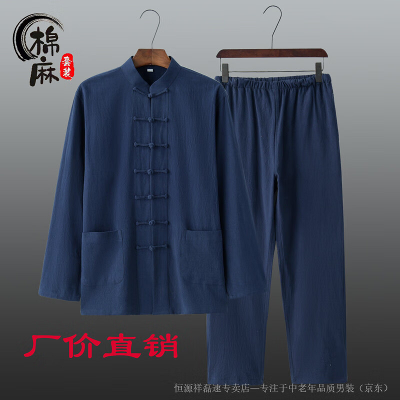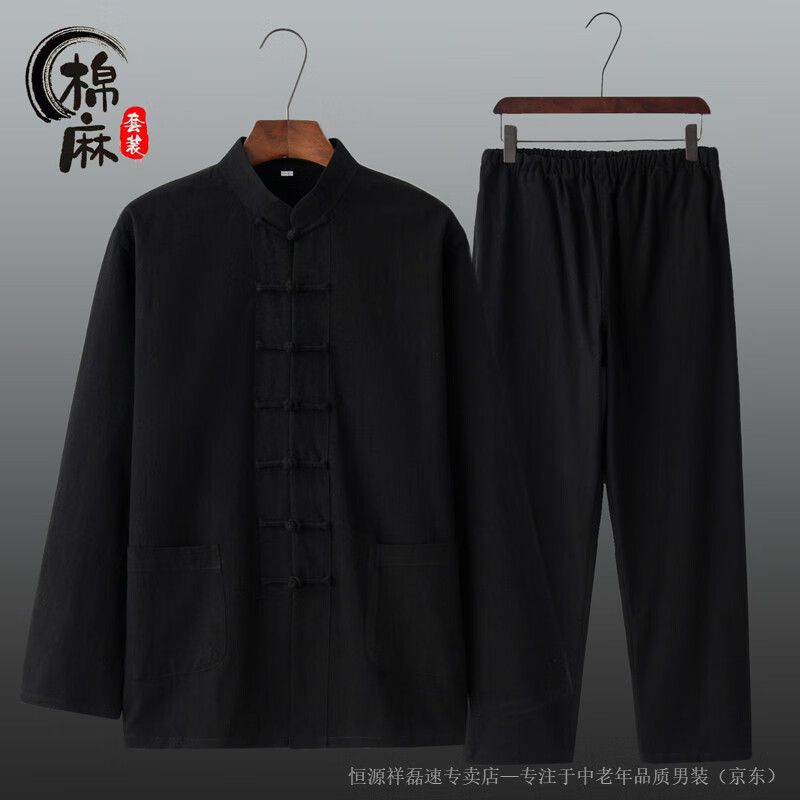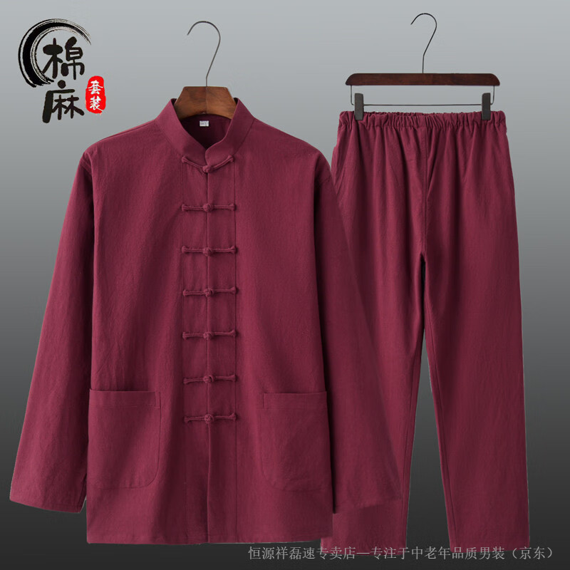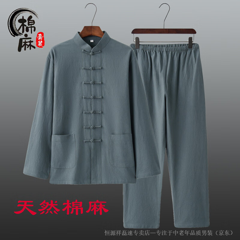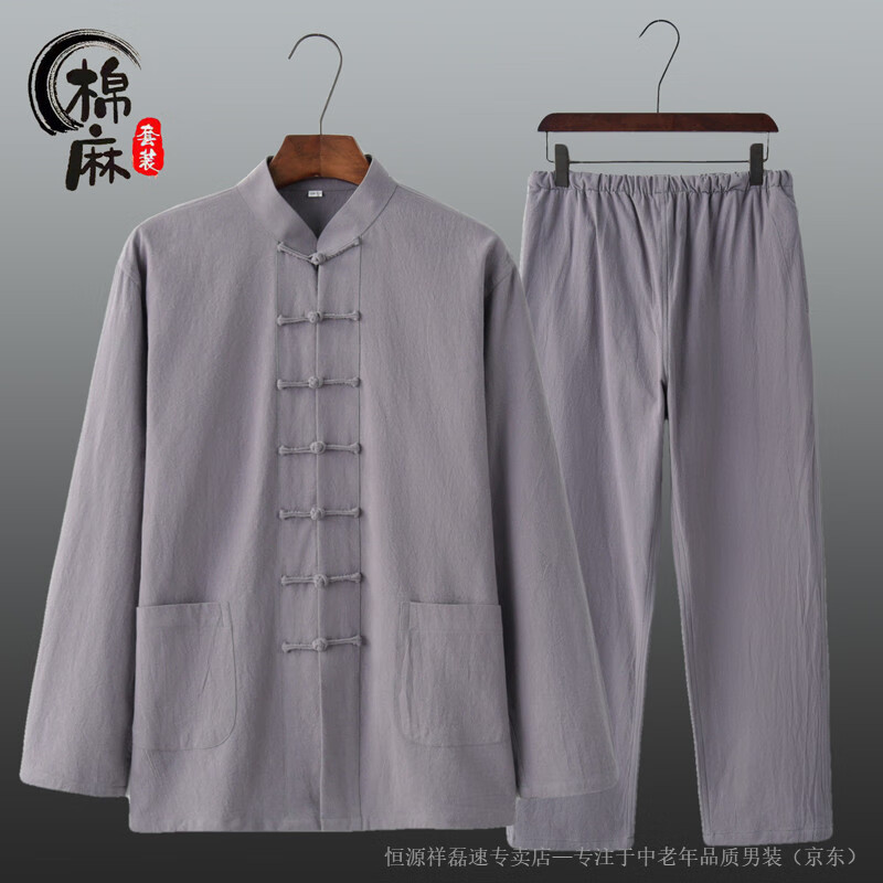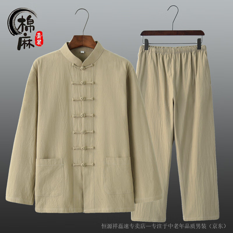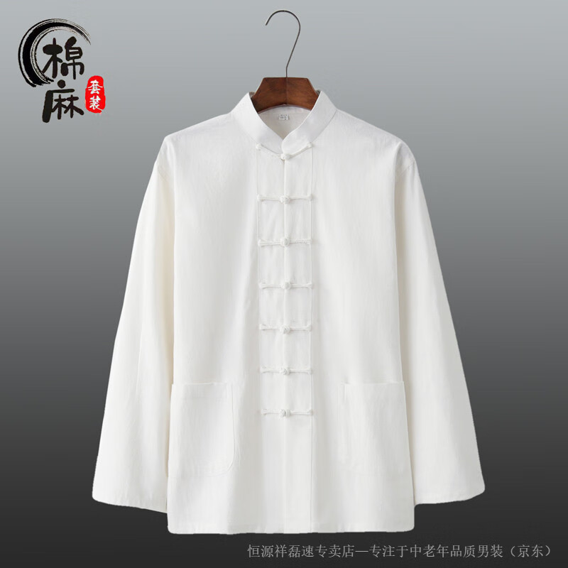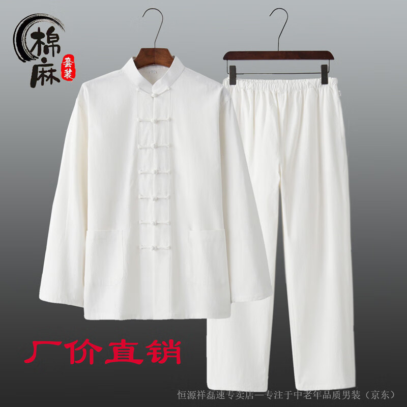 Hengyuanxiang spring and autumn men's and women's Chinese style suit cotton and linen new Chinese style Tang suit long-sleeved layman suit Tai Chi suit two-piece Han suit white 2XL