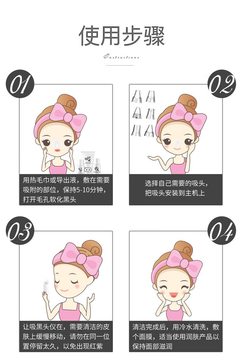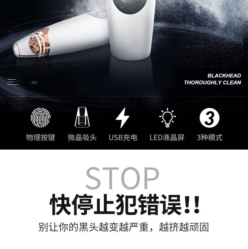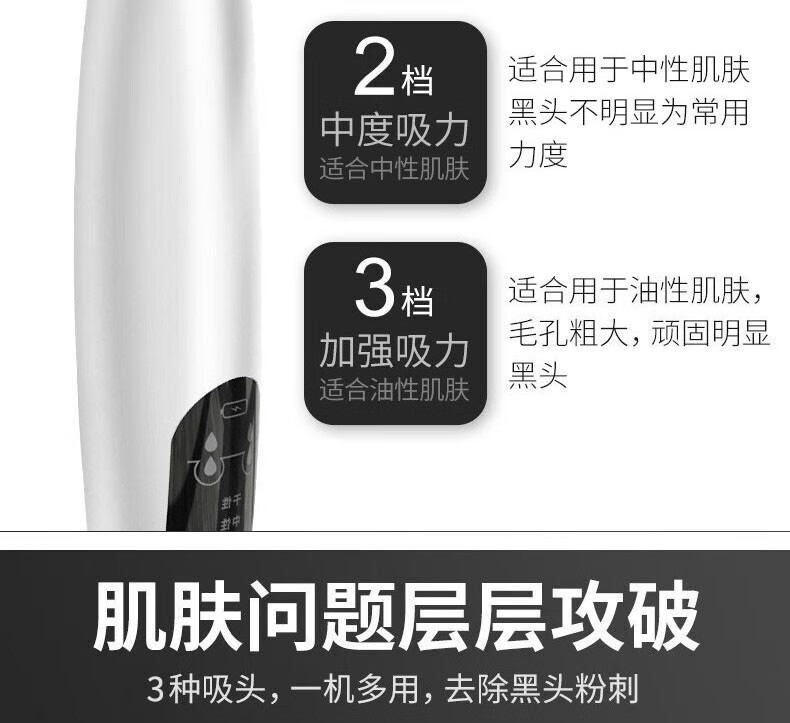 Blackhead suction instrument, blackhead cleaning artifact, blackhead extractor, pore cleaner, beauty instrument, household cleansing artifact, X3 rechargeable blackhead instrument, free 3 suction heads