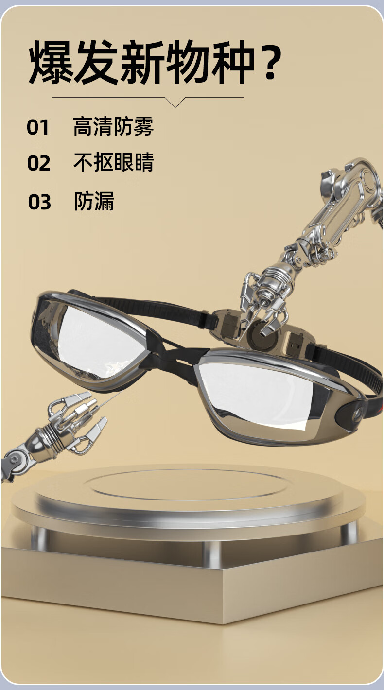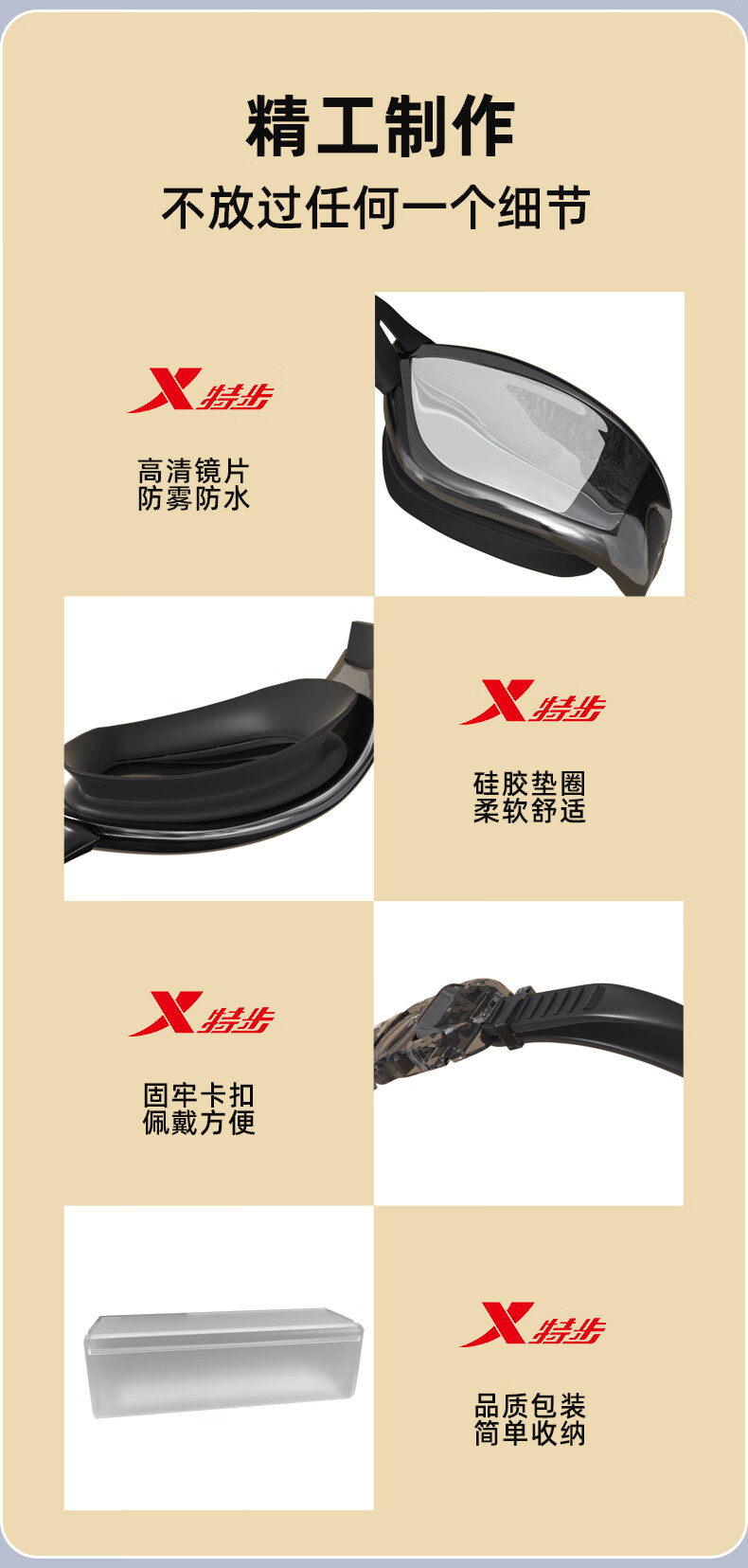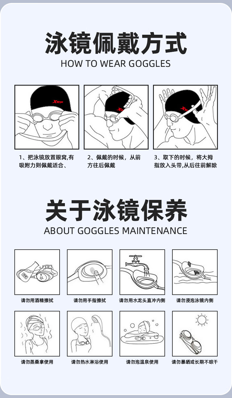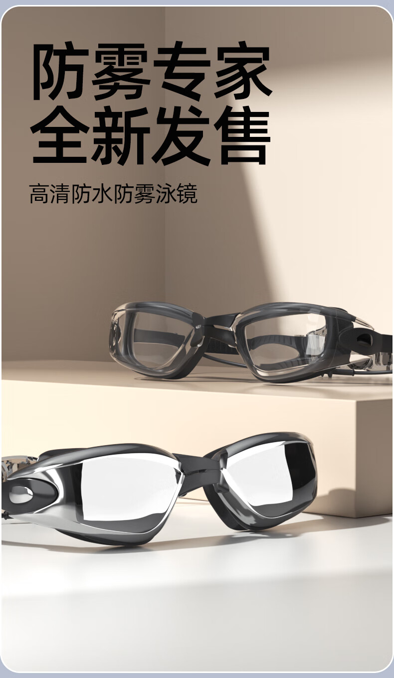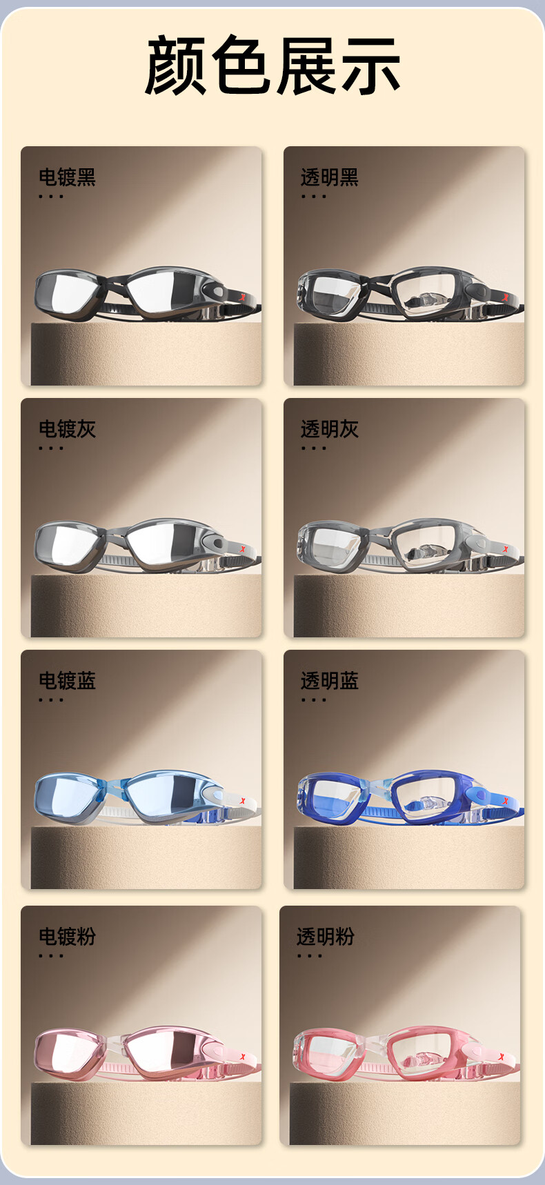 XTEP swimming goggles men's high-definition anti-fog waterproof men's racing swimming goggles electroplated myopia with prescription women's swimming goggles electroplated black two-piece set with different degrees contact customer service flat/not myopic