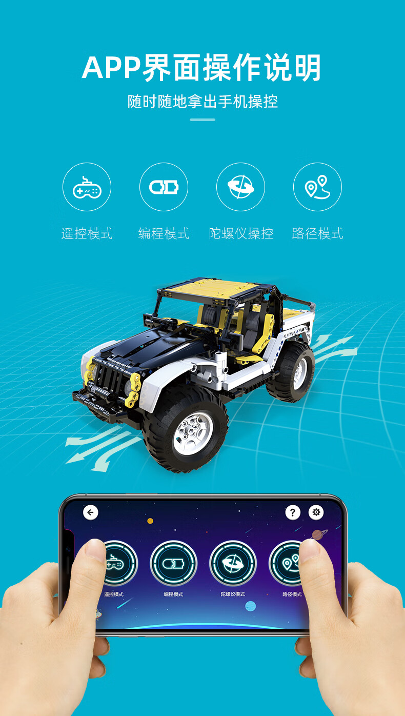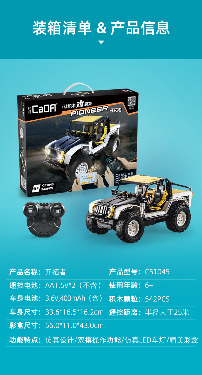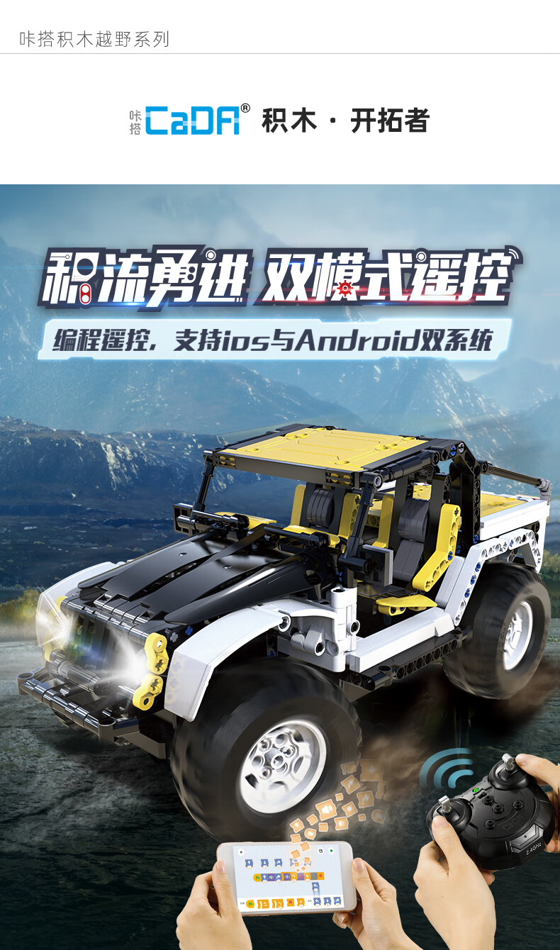 Cada (CaDA) cada building blocks Pioneer off-road vehicle assembly model mobile phone remote control car model children's toys C51045 Pioneer (supports mobile phone remote control)
