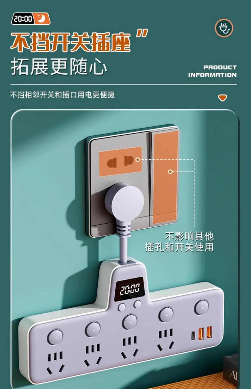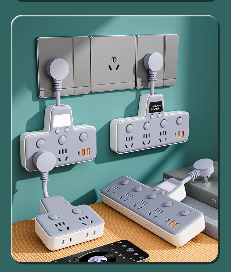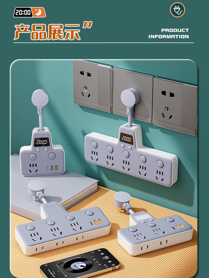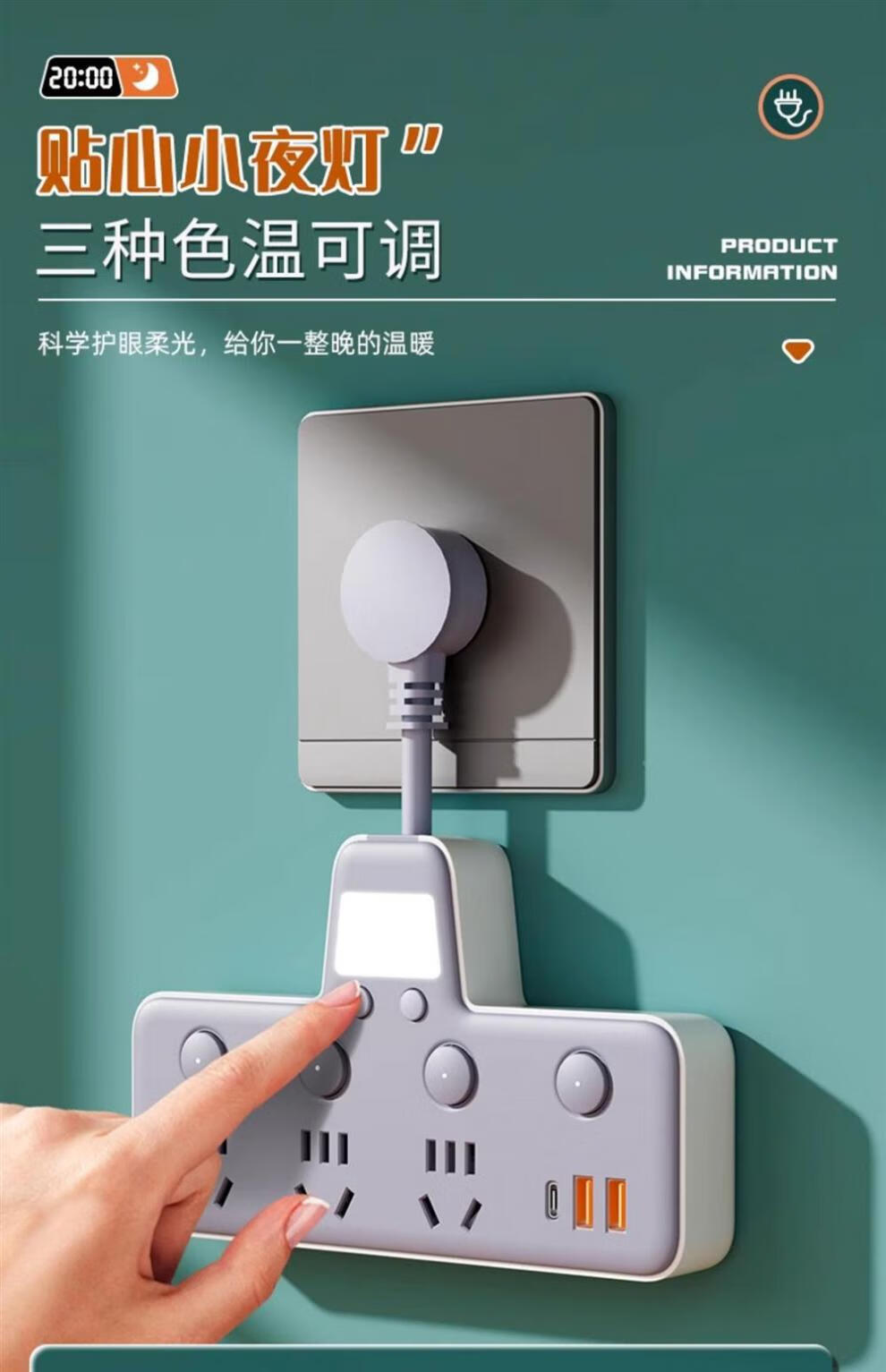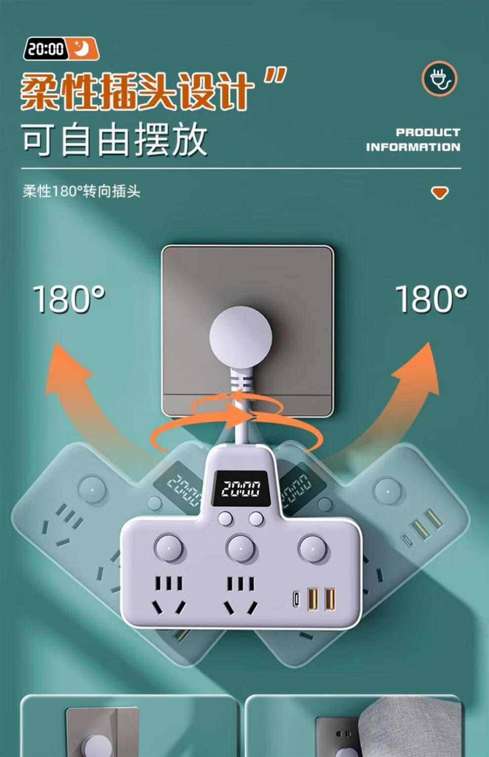 JCZS German brand socket converter USB wireless independent switch multi-function one-turn multi-hole strip plug strip pure copper lightning protection 2 sockets