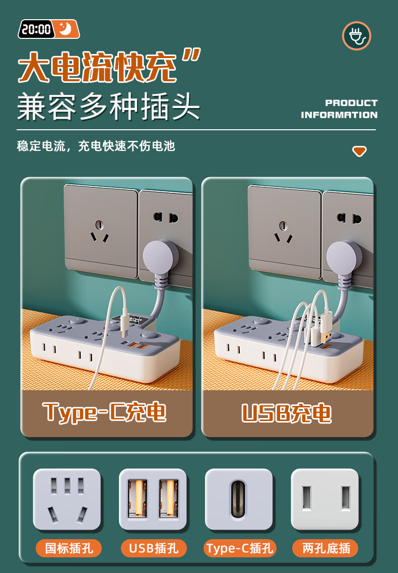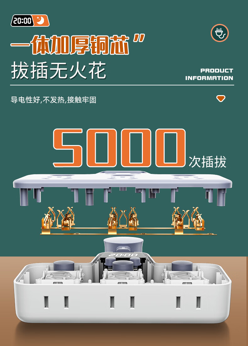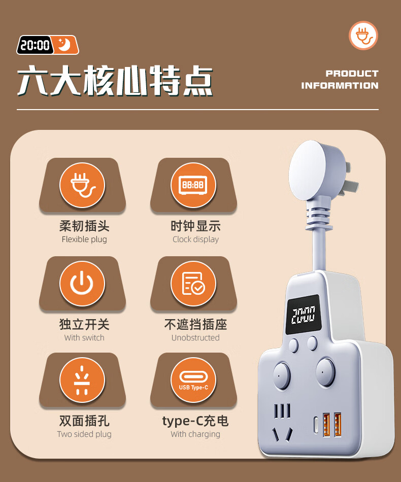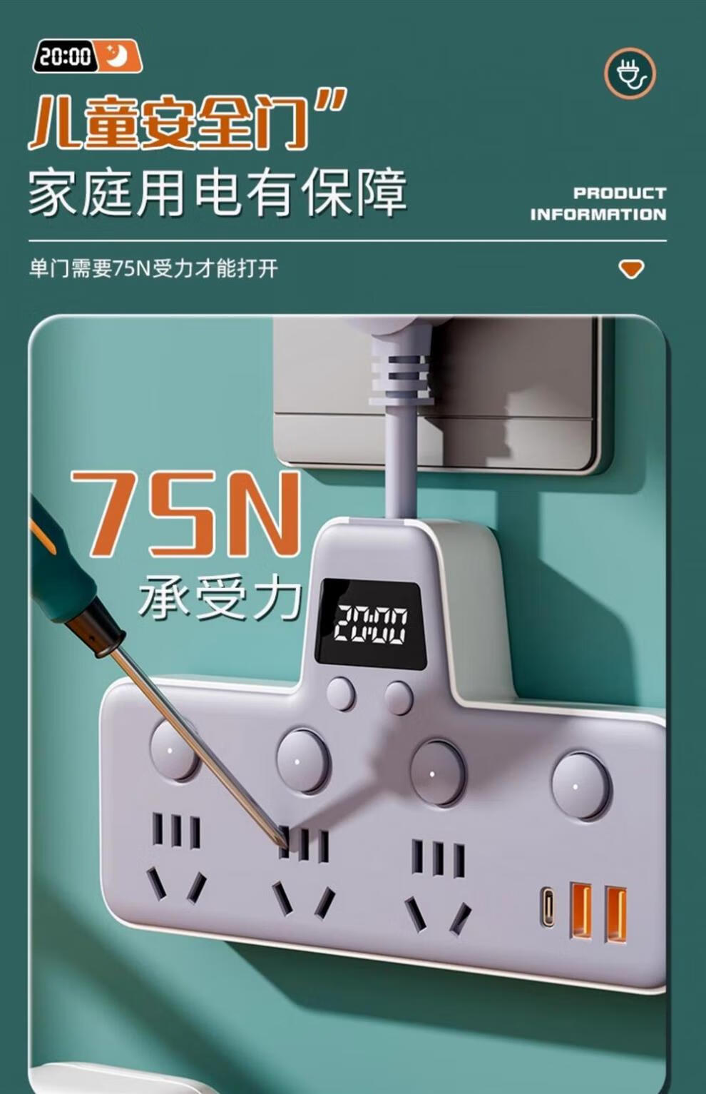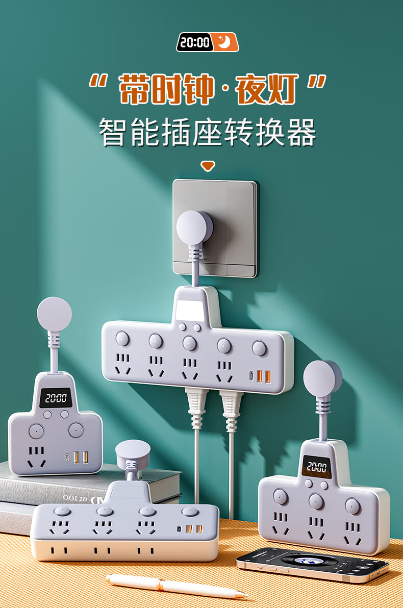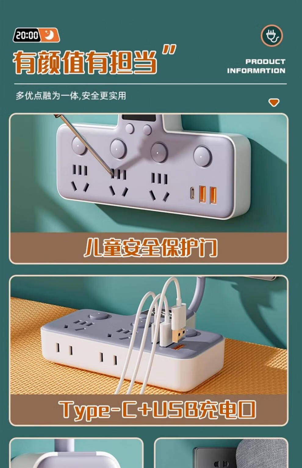 JCZS German brand socket converter USB wireless independent switch multi-function one-turn multi-hole strip plug strip pure copper lightning protection 2 sockets