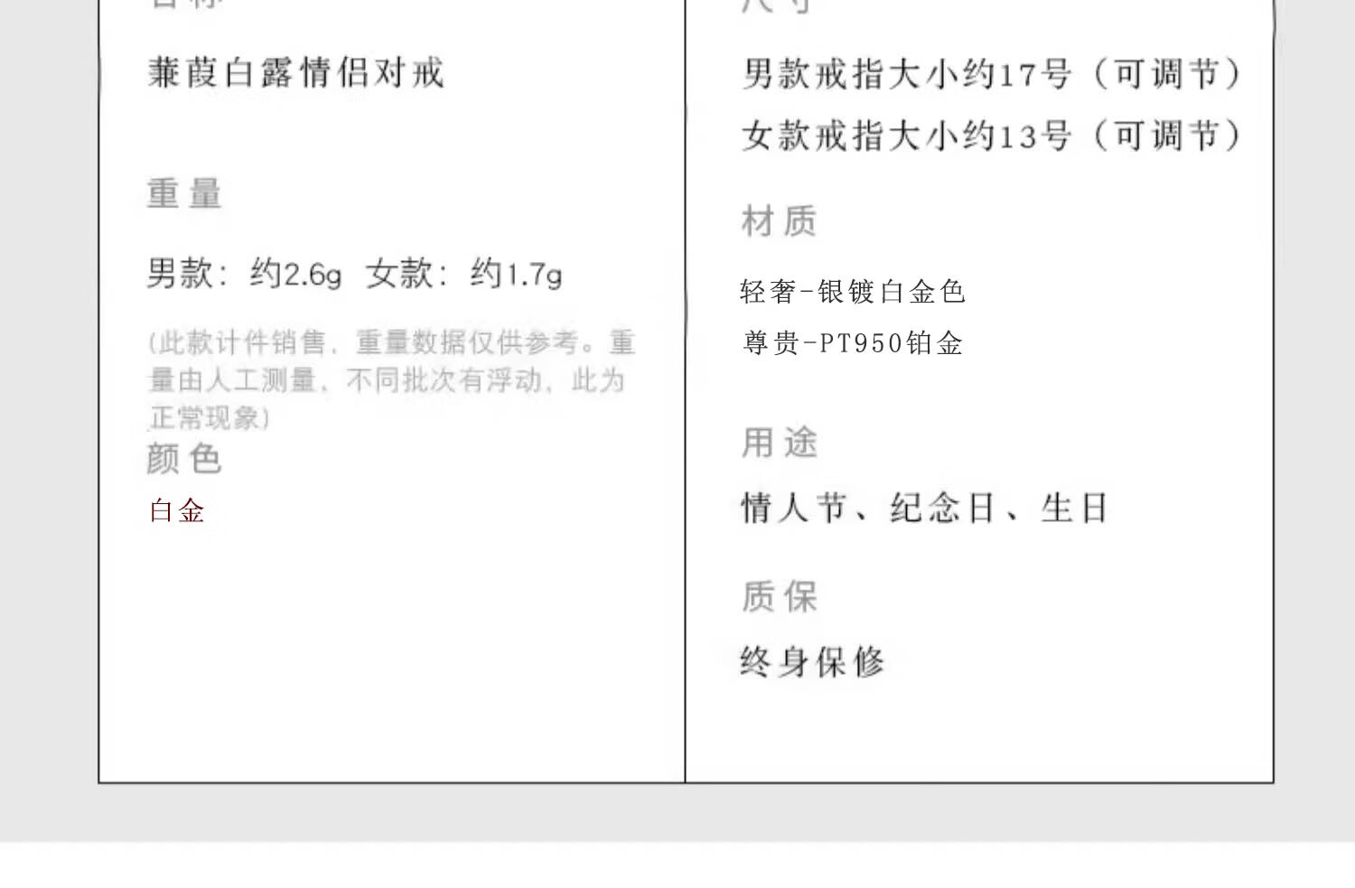Jianjia Platinum Couple Ring pt950 Platinum Knot Engagement Promise Ring Valentine's Day Birthday Gift for Girlfriend Light Luxury Style-Jianjia Bailu Couple Ring