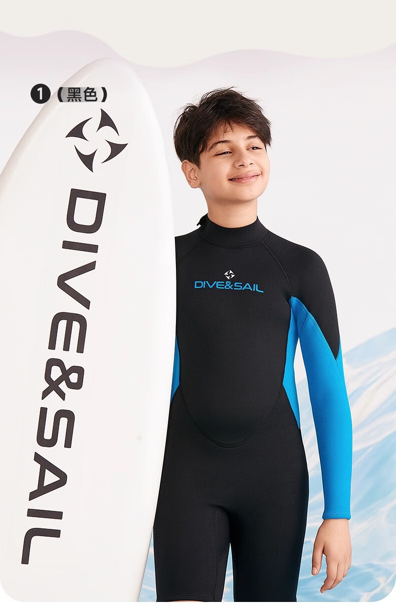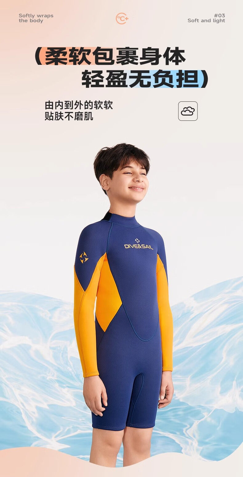 Yobel children's swimsuit girls teenagers 2025 new boys cold-proof and warm thickened snorkeling and surfing wetsuit men's dark blue long-sleeved shorts 130-142 recommended weight 27-34kg