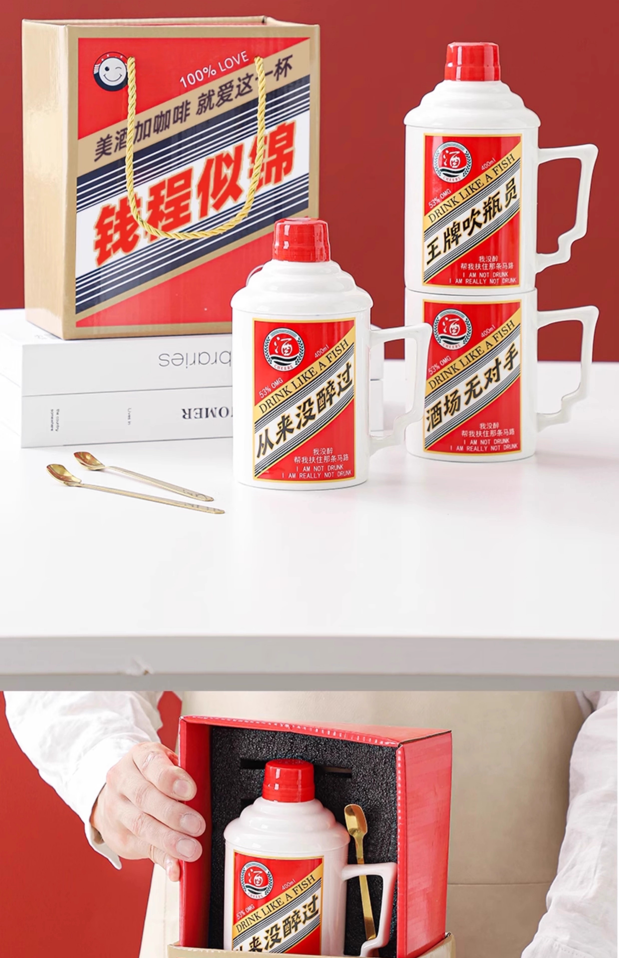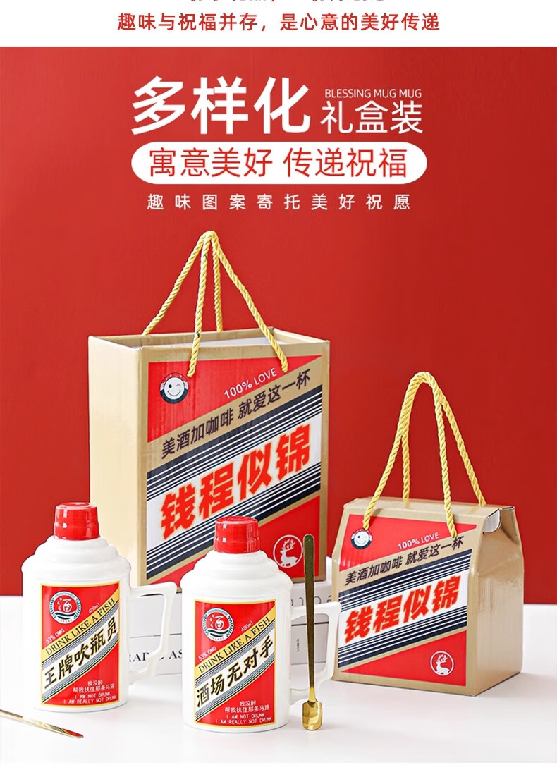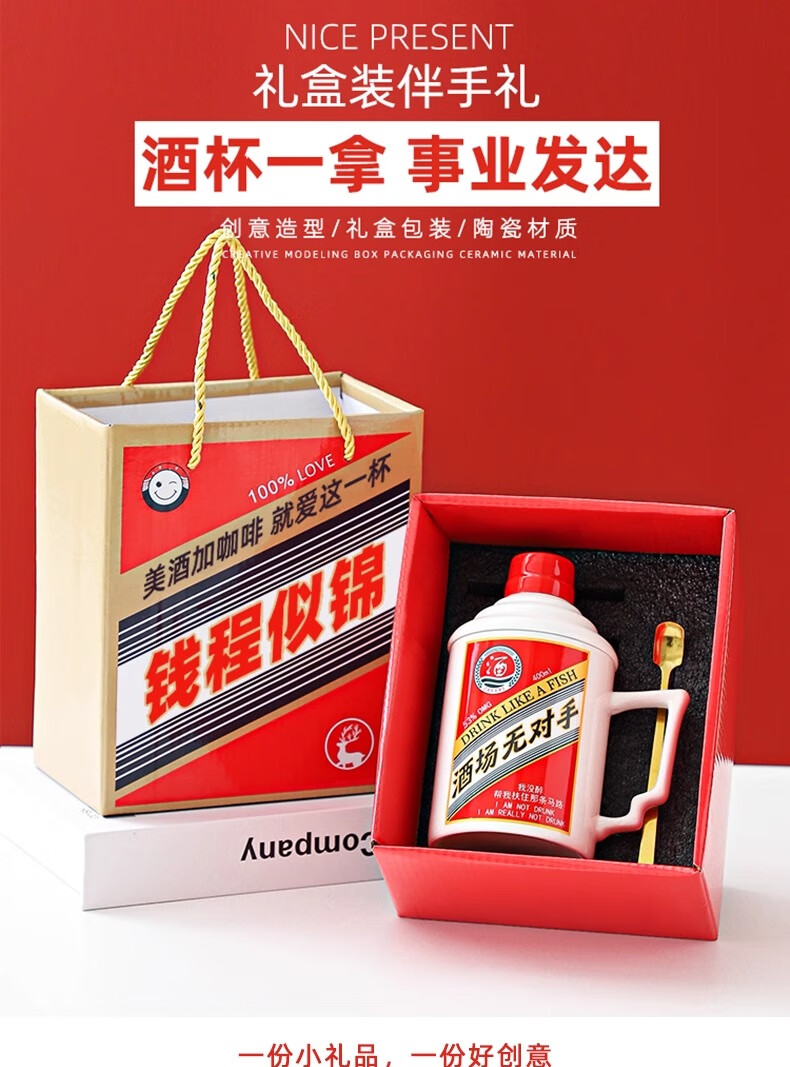 Wanjiaquan creative funny birthday gift for boys, dad, father, beer mug, souvenir, practical gift mug, unrivaled mug, spoon + large gift box