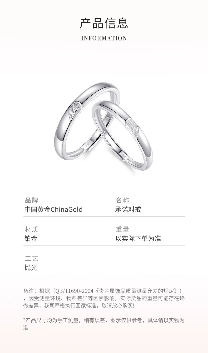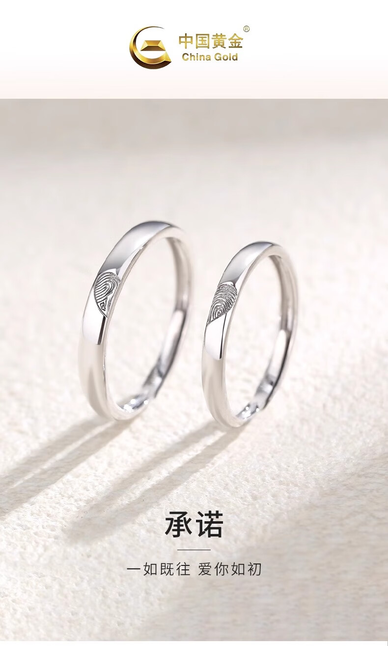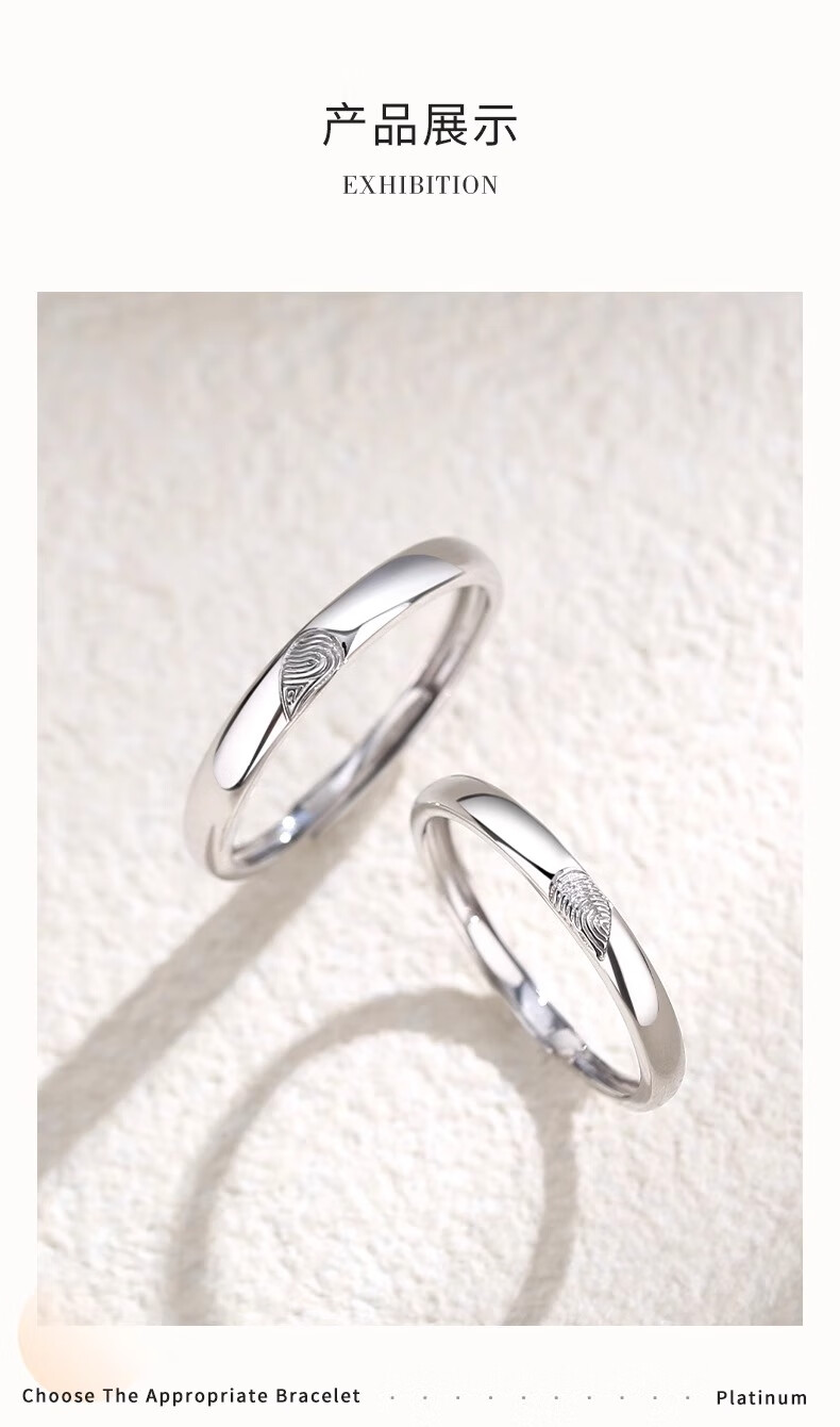China Gold (CHINA GOLD) PT950 Platinum Love Fingerprint Ring for Male and Female Couples, Valentine's Day Birthday Gift for Girlfriend and Wife, Platinum Love Fingerprint Ring, Men's Approximately 1.9g