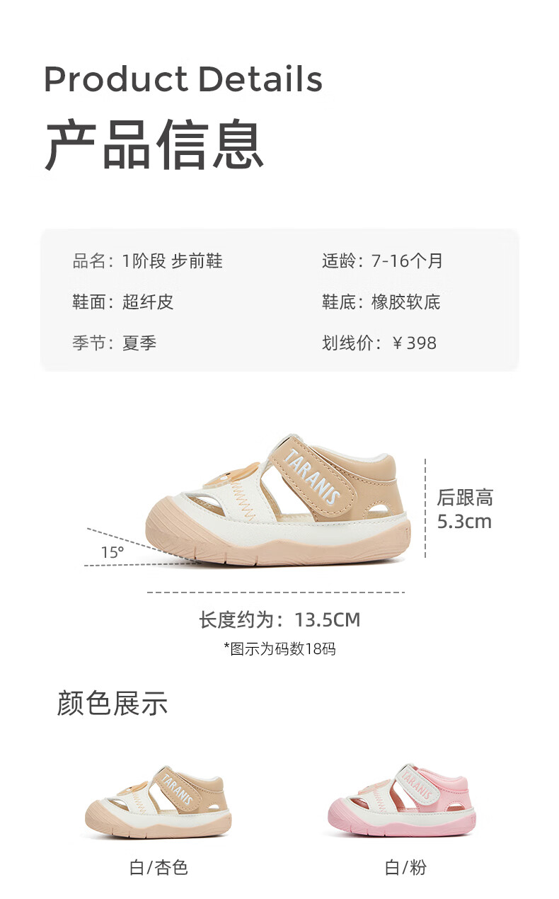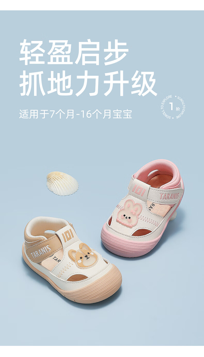 Tyrannis 101 new summer baby shoes for boys, breathable sandals, baby barefoot shoes, girls' front shoes, white_pink 16