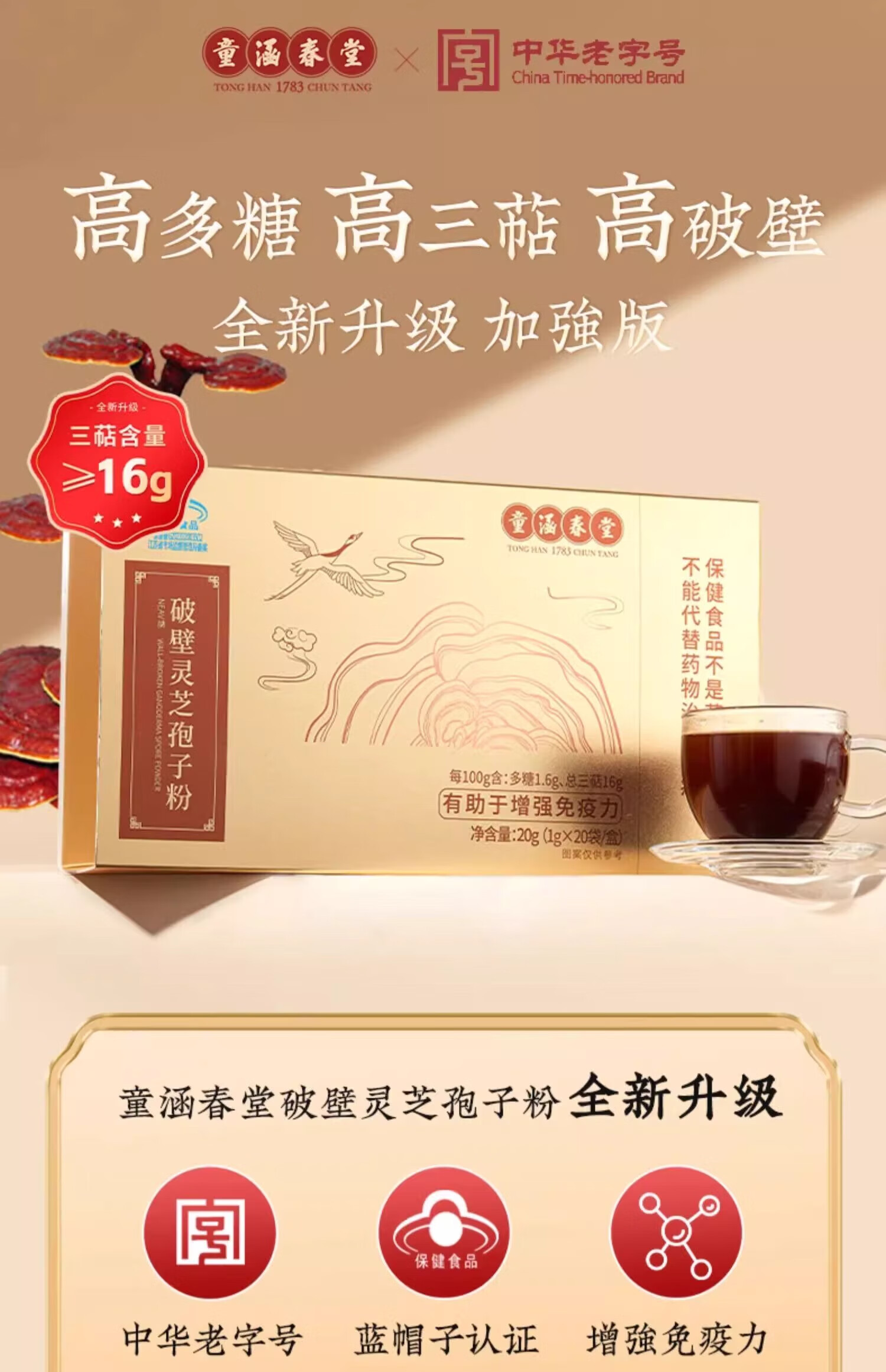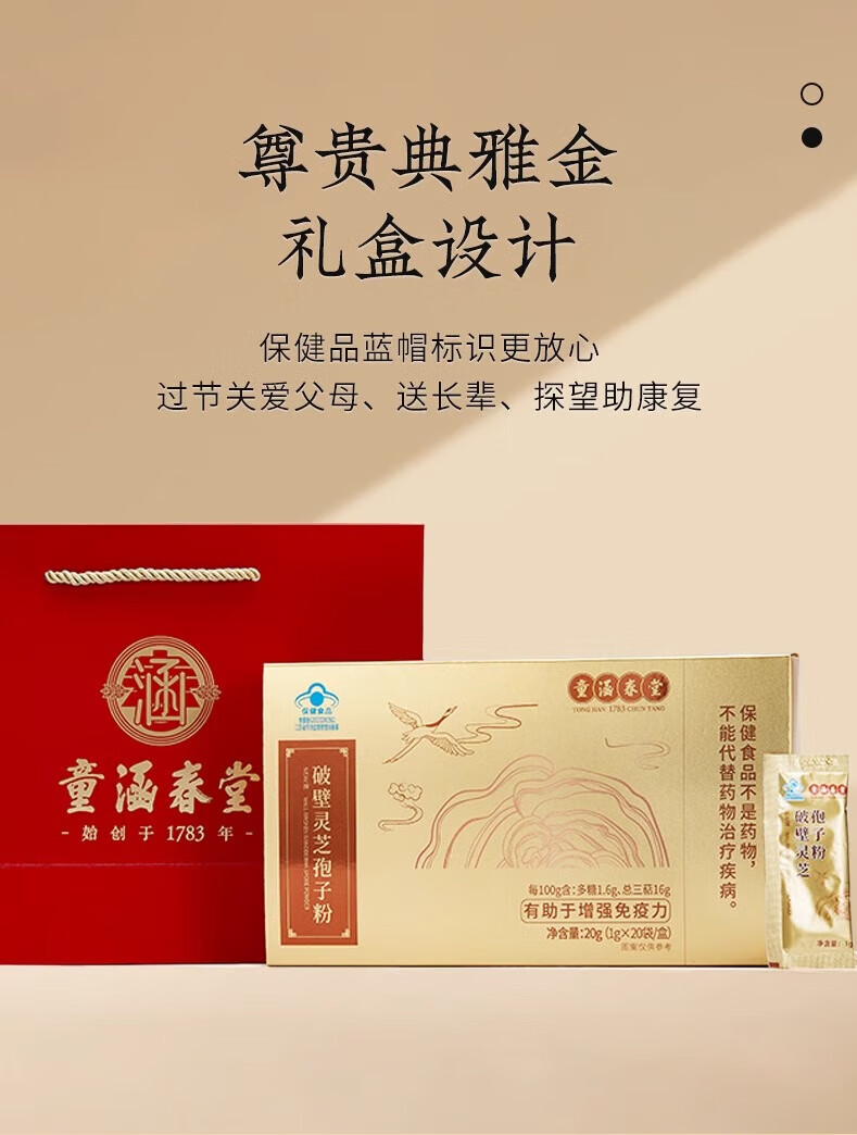 童涵春堂破壁灵芝孢子粉20g/盒增强免疫力去壁送长辈保健品术后送礼品 16%总三萜】孢子粉20g*6盒