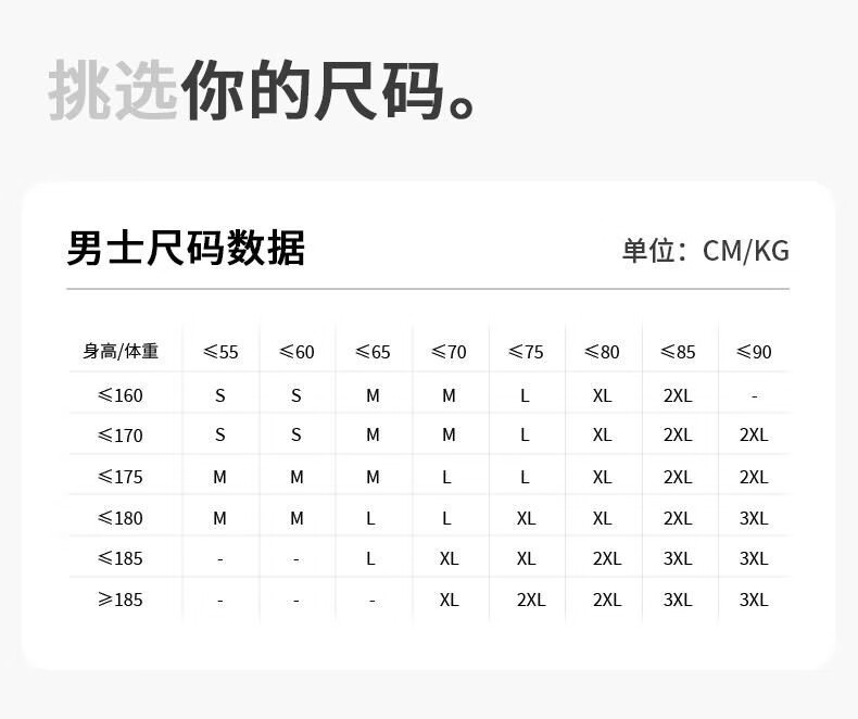 China (cm) 165 / 88-90 170 / 96-98 175 / 108-110 180 / 118-122 185 / 126-130