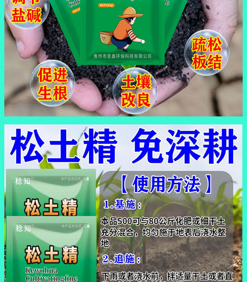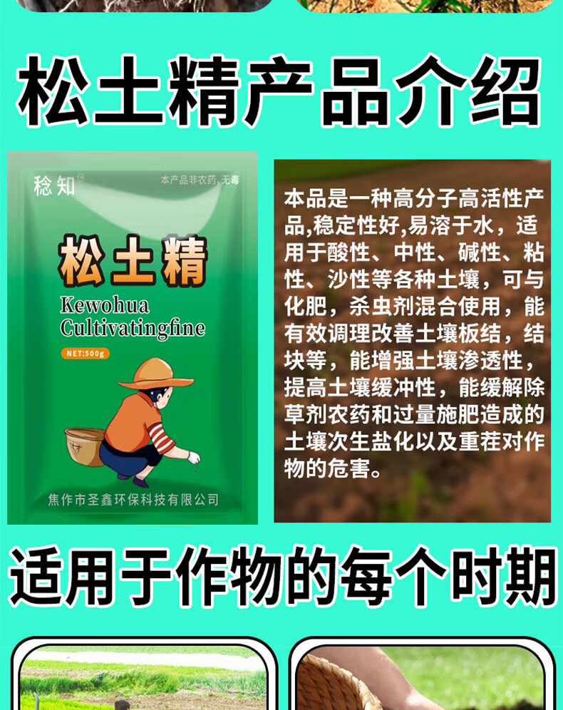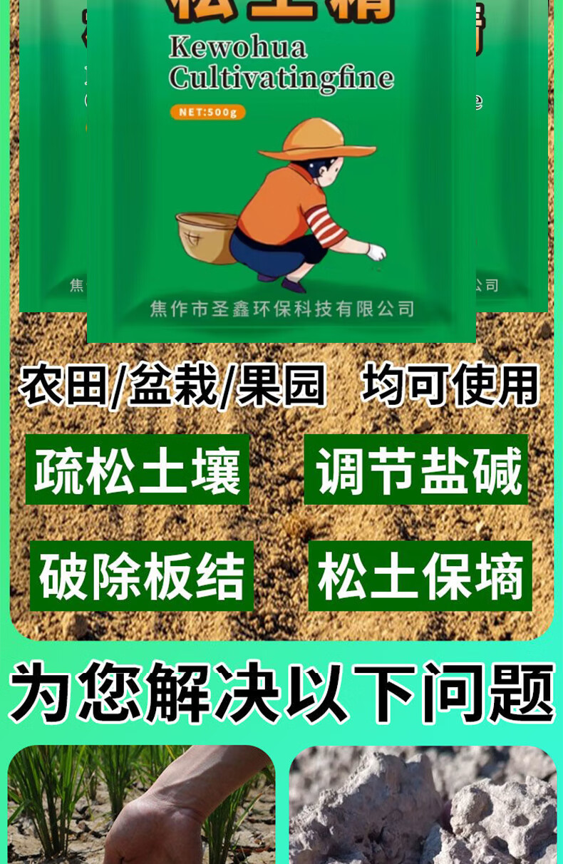 松土精土壤疏松活化剂免深耕防止板结土壤调理剂调理盐碱疏松土壤 松土精[4大袋]多面积农田用浅绿