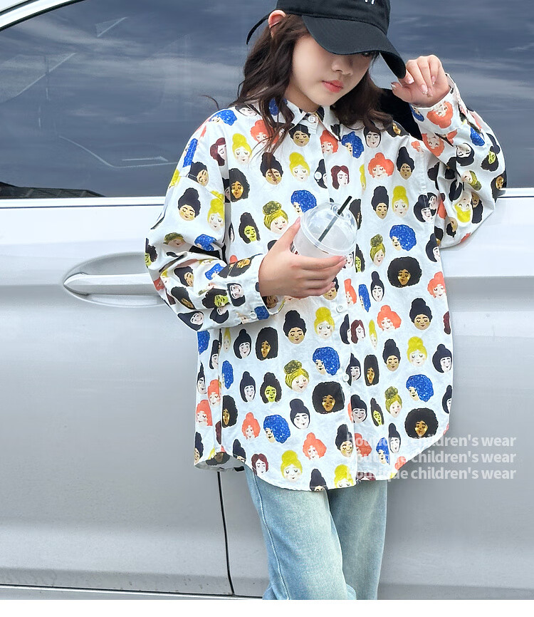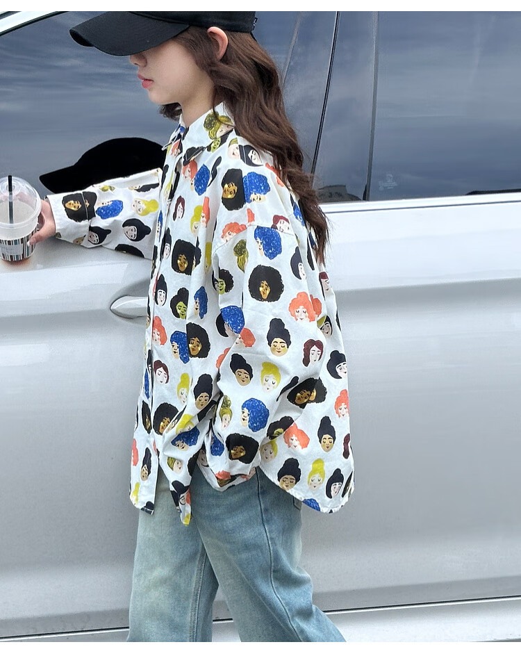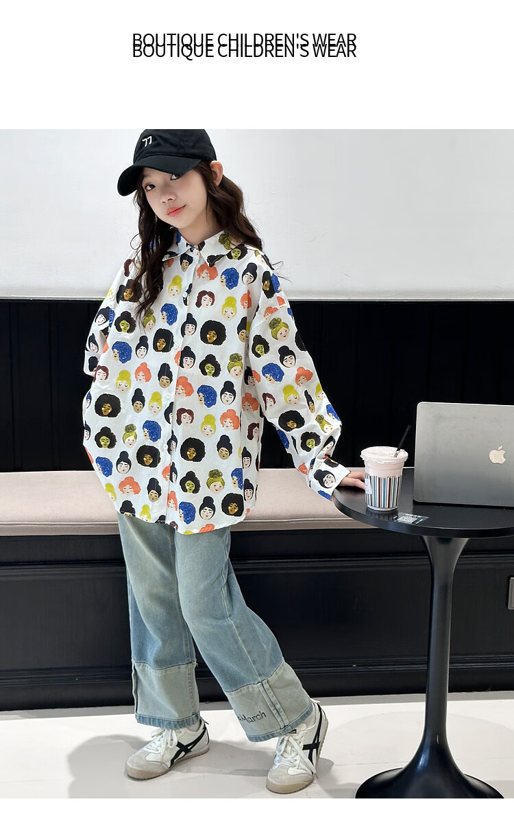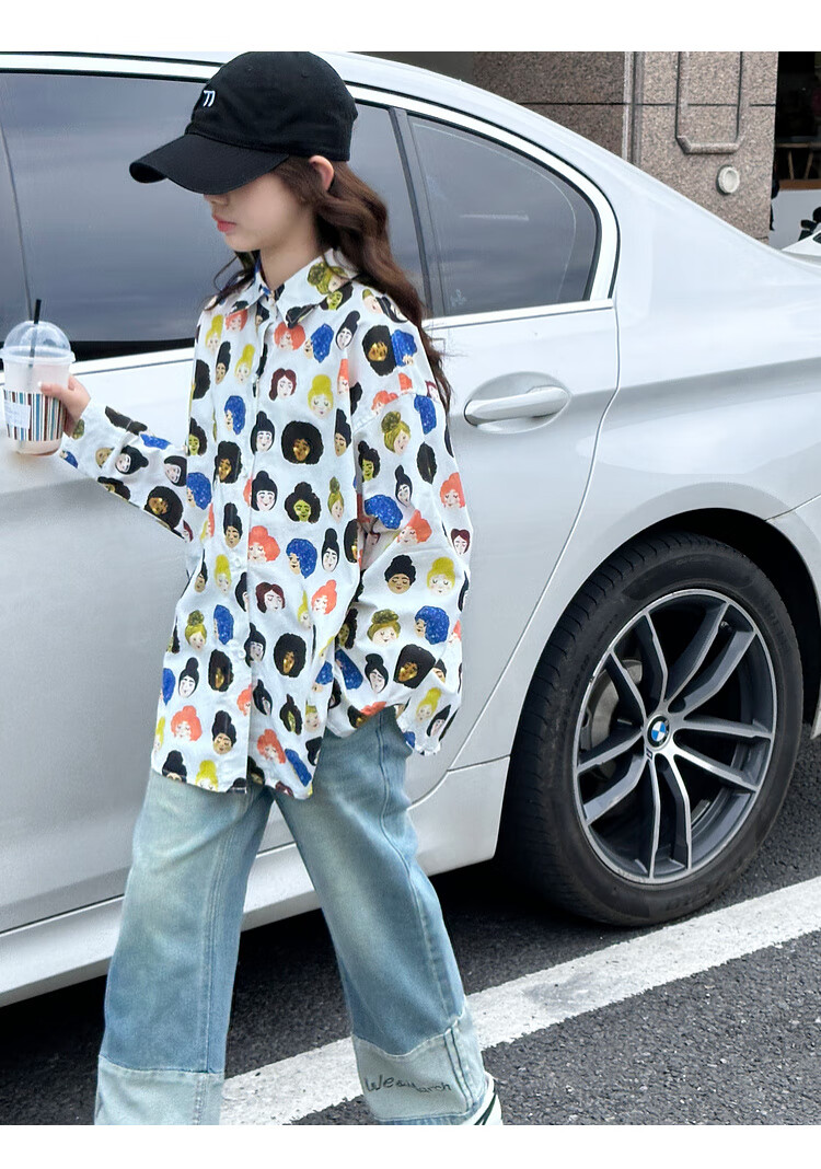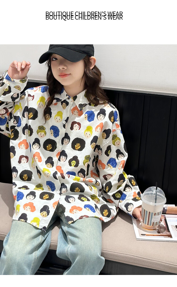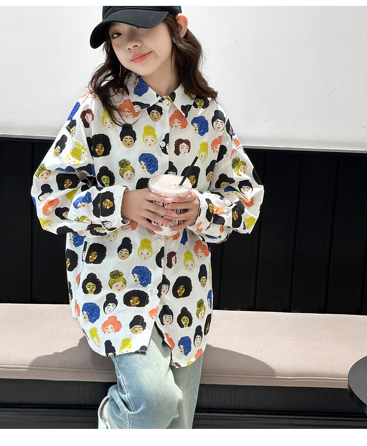 BJT Girls' Shirts Spring and Autumn Clothing Children's Style Long-Sleeved Tops 2025 New Girls Autumn Full Print Clothes Trendy White 160 cm