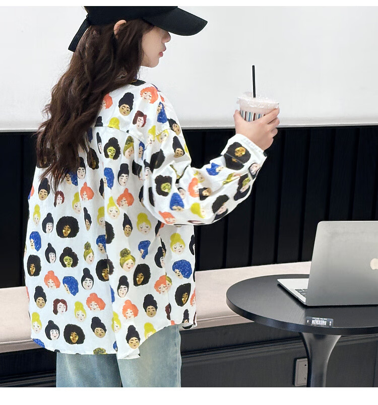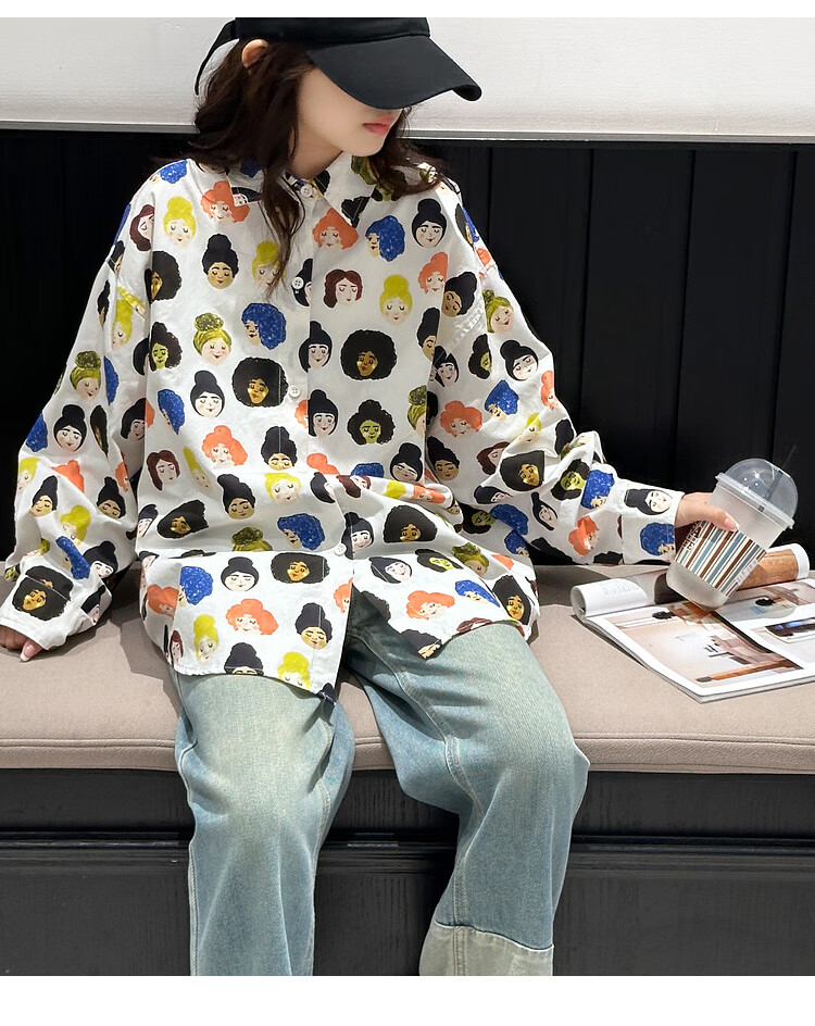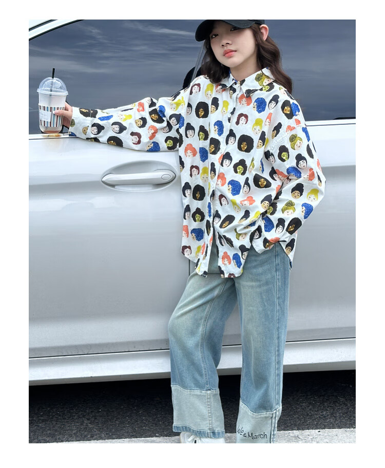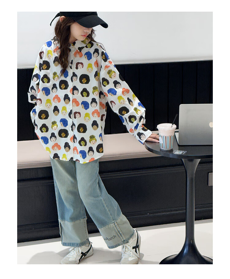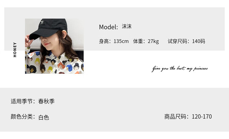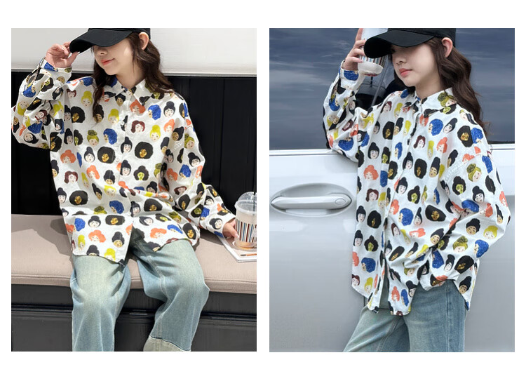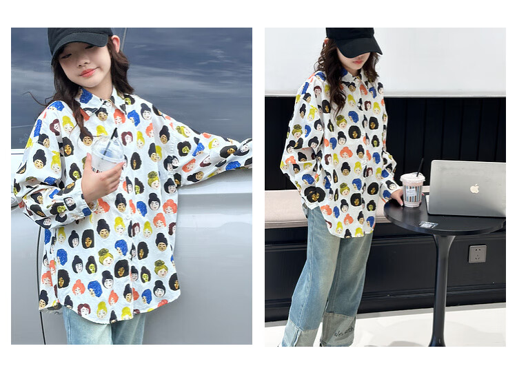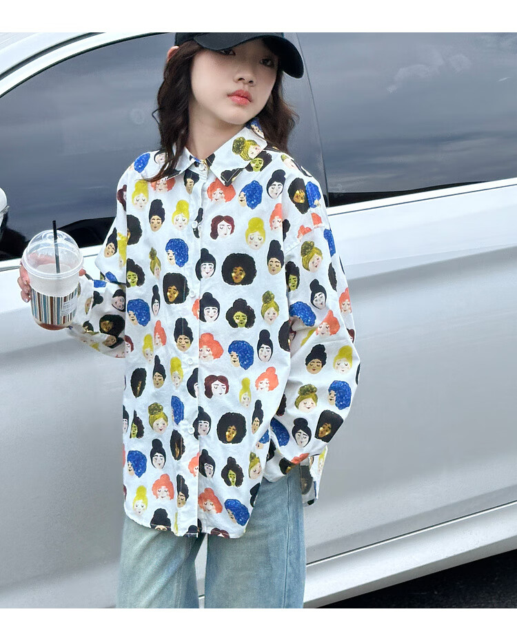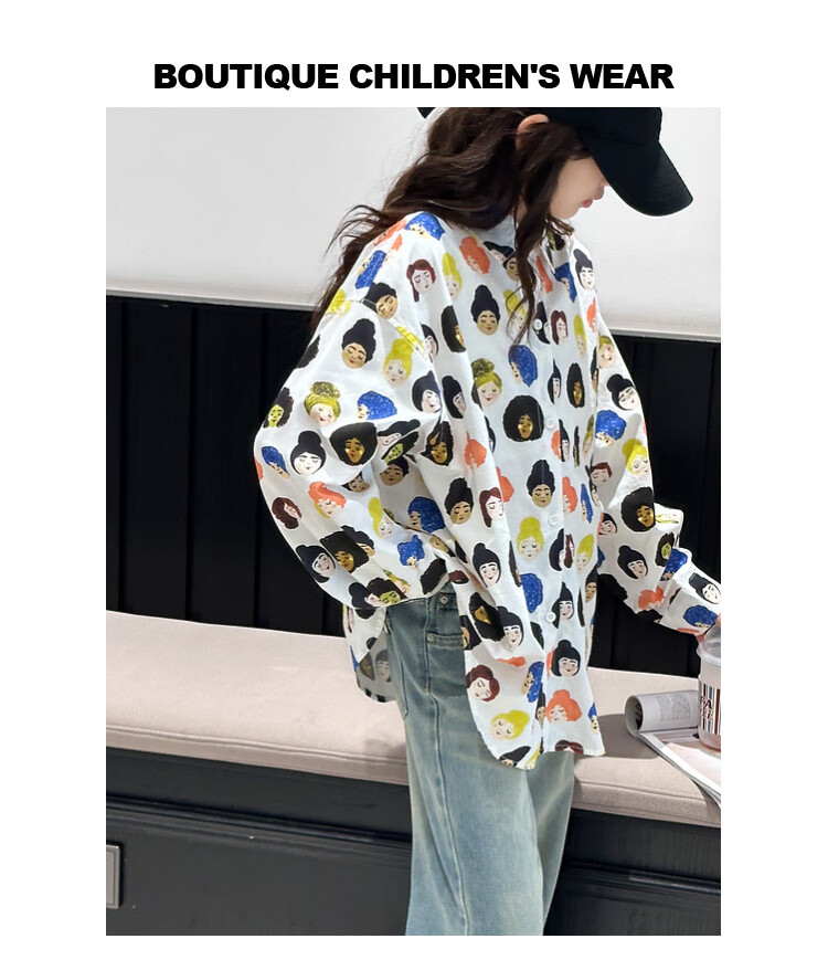 BJT Girls' Shirts Spring and Autumn Clothing Children's Style Long-Sleeved Tops 2025 New Girls Autumn Full Print Clothes Trendy White 160 cm