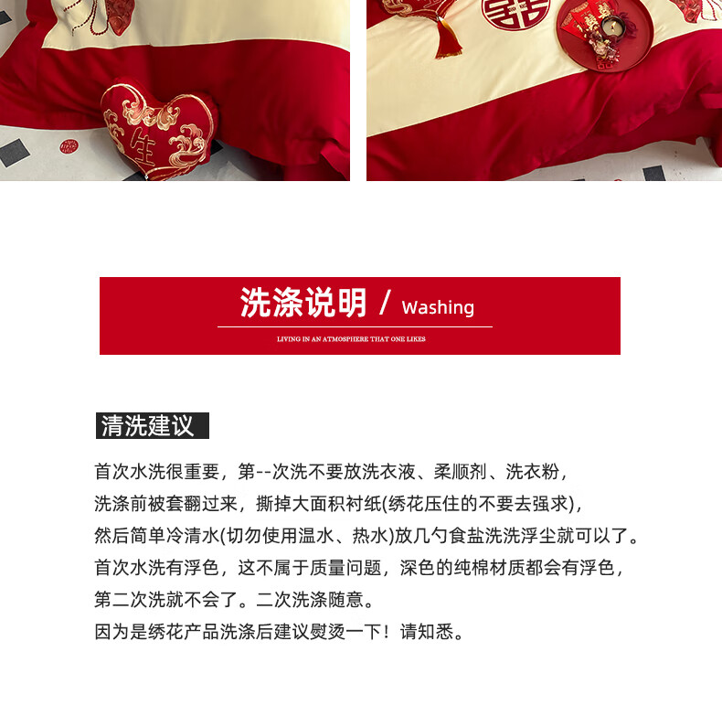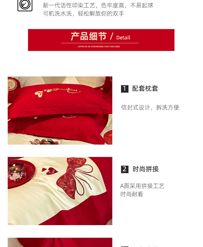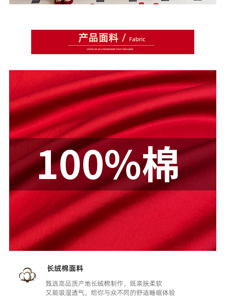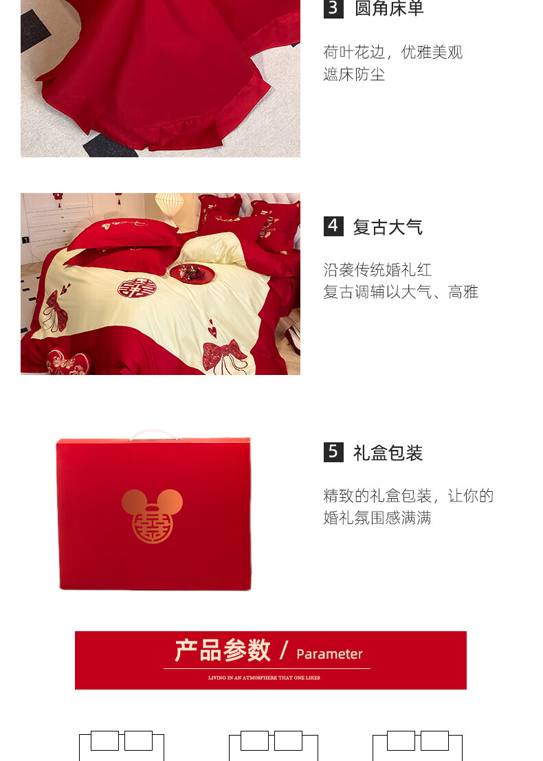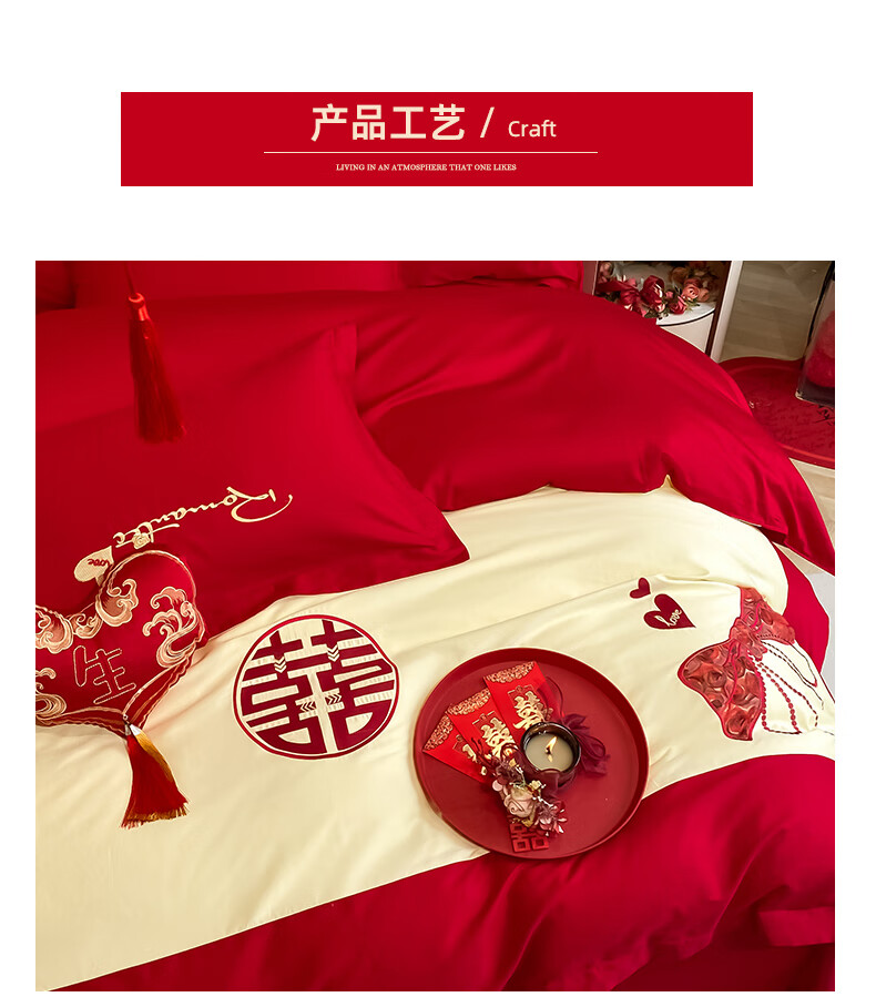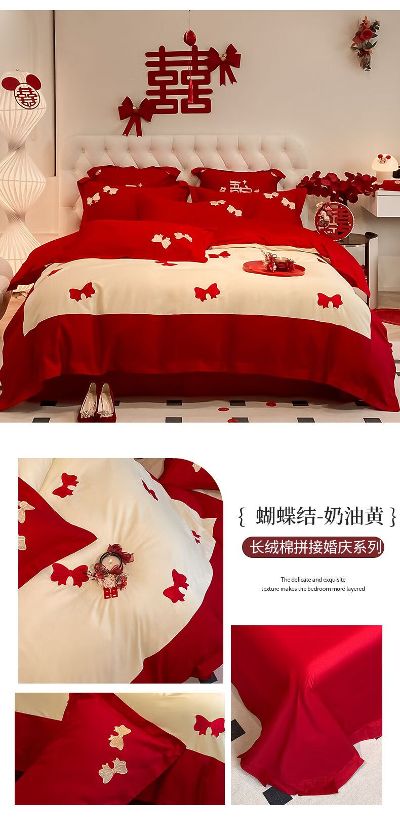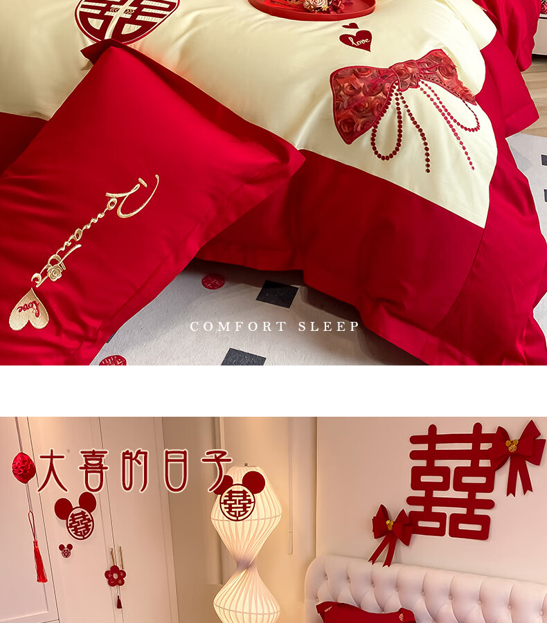 Mercury series home textiles red pure cotton wedding four-piece set long-staple cotton wedding cotton embroidered bed sheet quilt cover newlywed bedding Alice 2.0 bed sheet style four-piece set