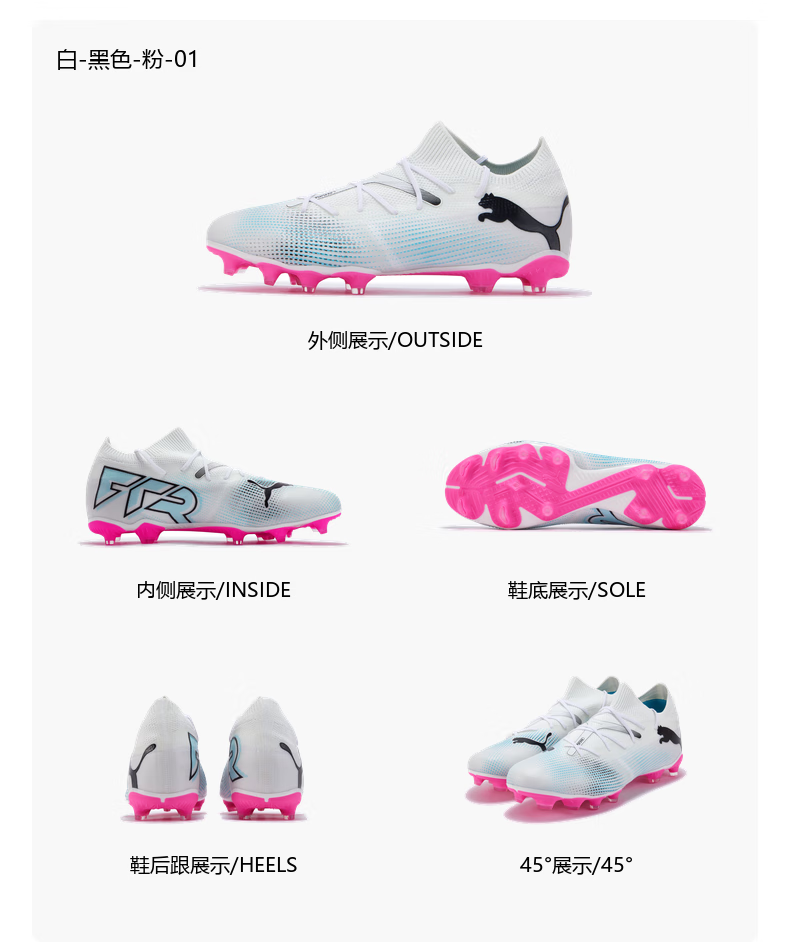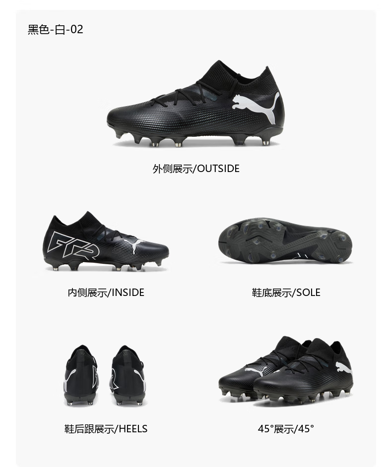 PUMA FG/AG Long Spike Lightweight Training Football Shoes Men's Natural Turf Spikes FUTURE 7 107715 Black-White-02 43