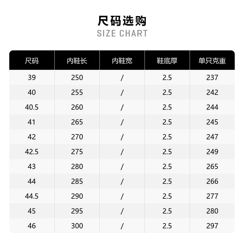 China (cm) 36 - 37 38 - 39 40 - 42 43 - 44 45 - 47