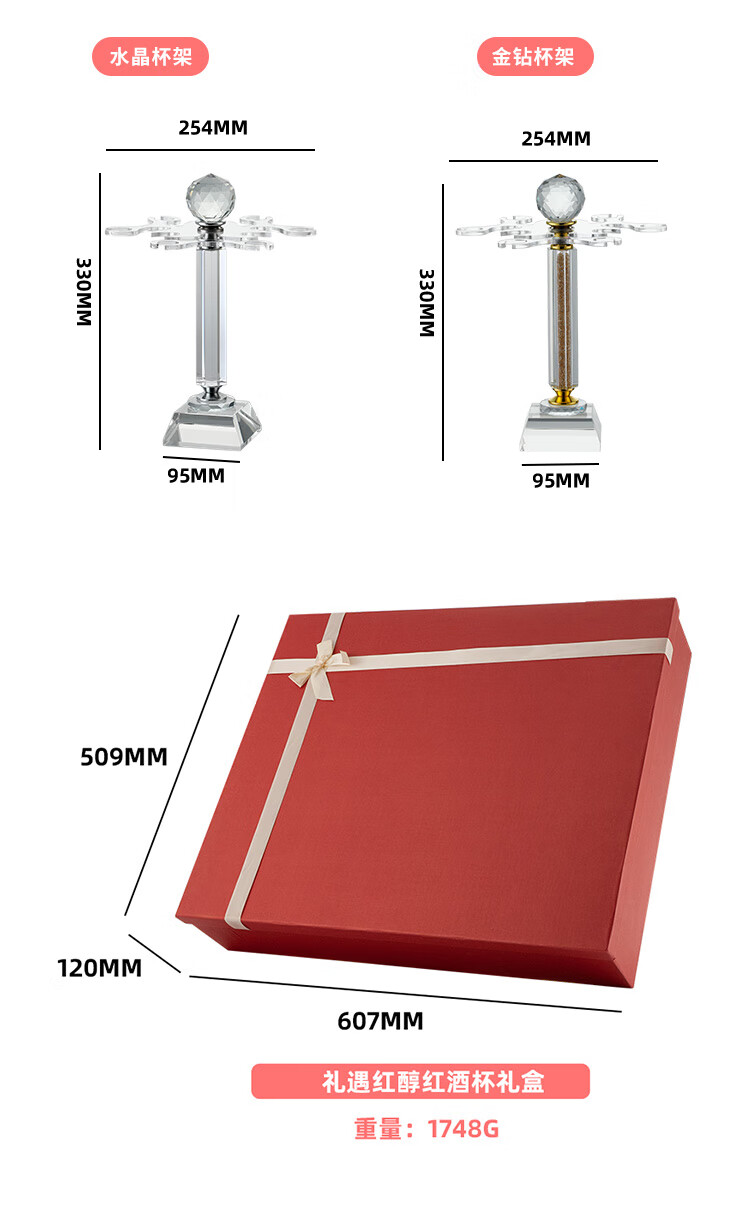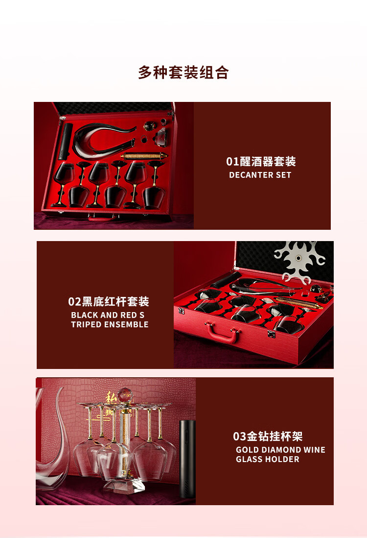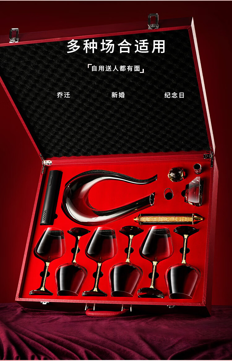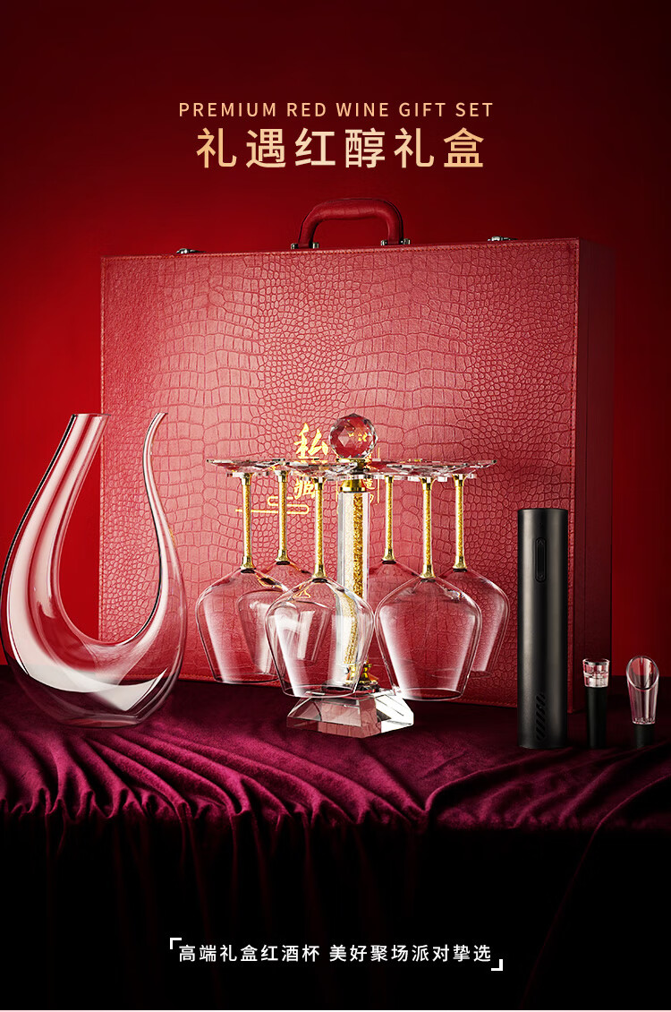 Luxury Flowers high-end red wine glass suitcase home goblet decanter set wedding gift housewarming gift special wine set red rod 600ml red leather suitcase 11-piece set No Specifications