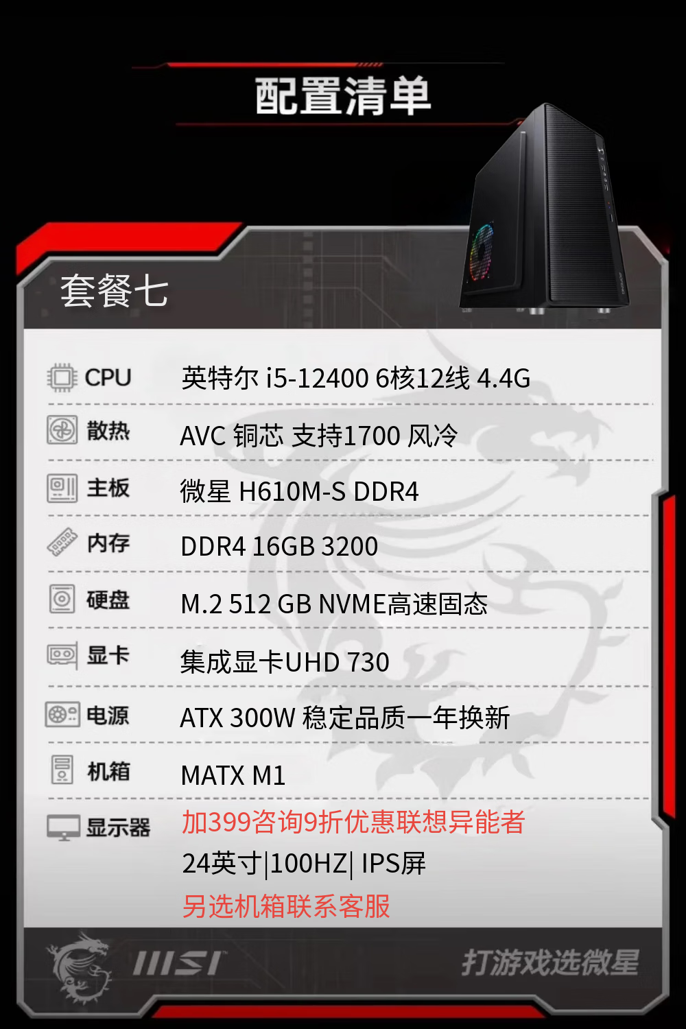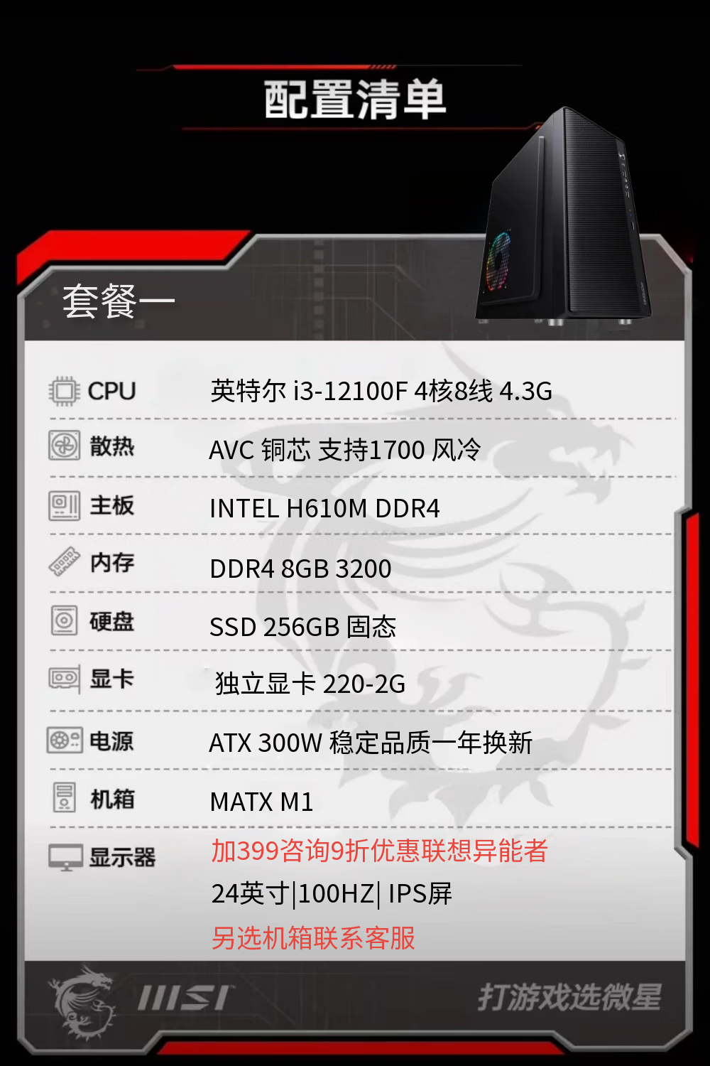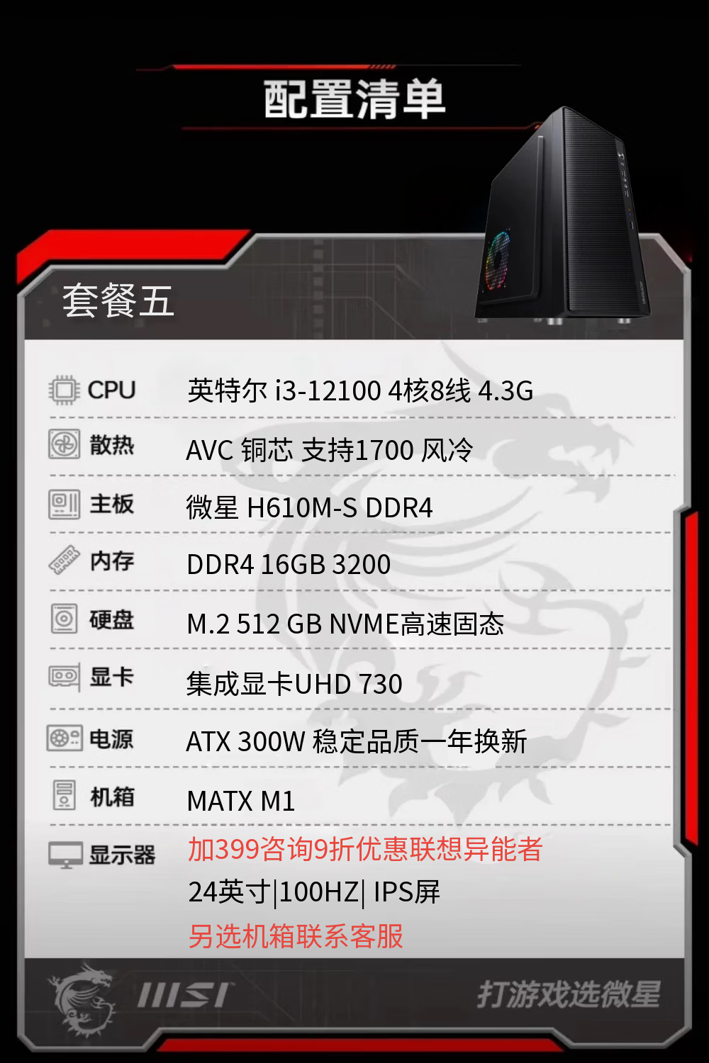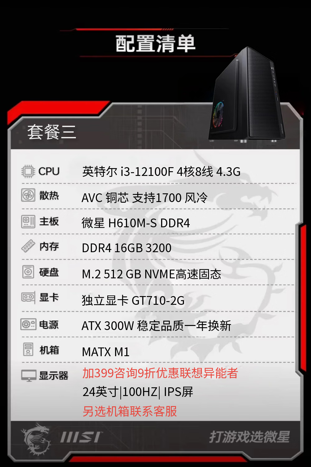 MSI I3 12100F 12400F 4G independent display integrated display DIY assembly desktop home office game entertainment computer host independent display enterprise office desktop computer host package four 12100+8G+256G+ integrated display