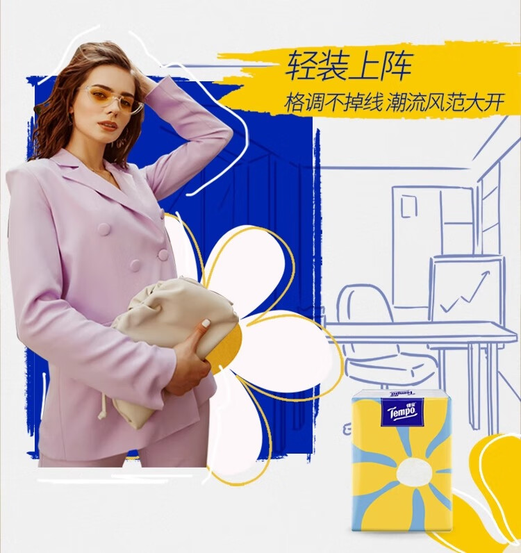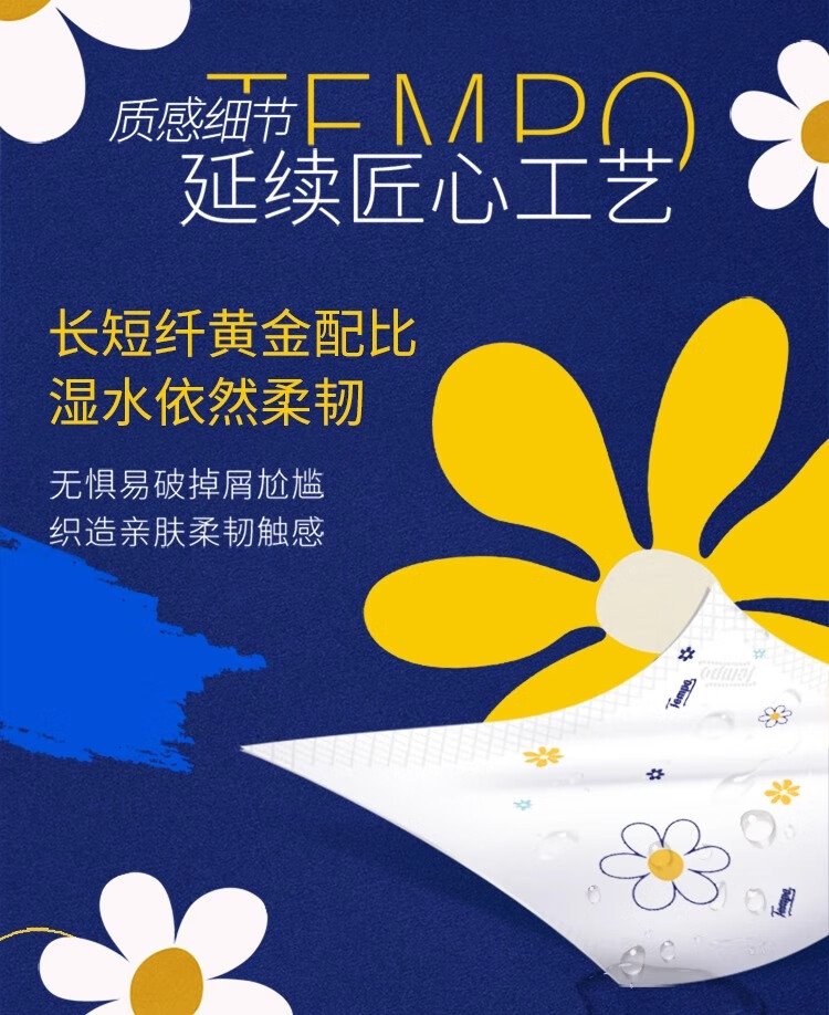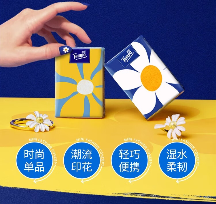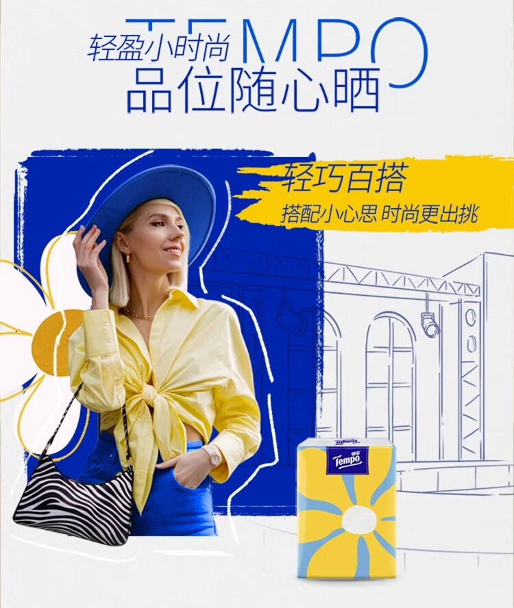 TEMPO Mini series handkerchief paper 18 packs 4 layers 5 sheets natural unscented mini small pack paper towels portable wettable water 4 layers 5 sheets * 18 packs