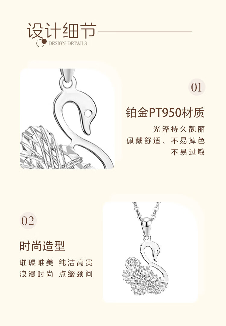 CHINA GOLD pt950 platinum necklace for women platinum swan pendant light luxury jewelry Valentine's Day birthday gift for lover and wife swan pendant with S925 chain about 2.5g