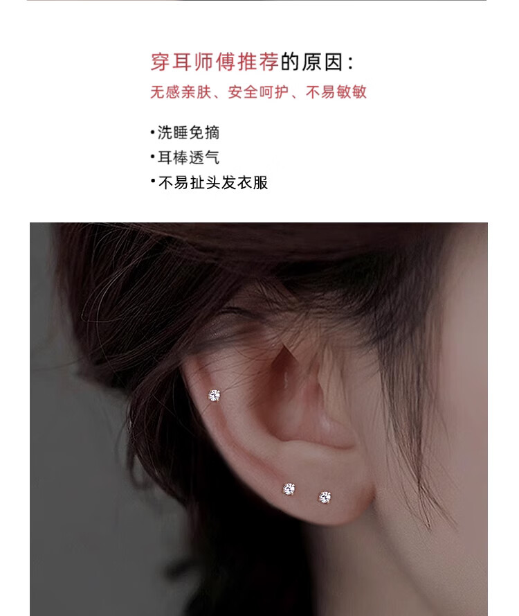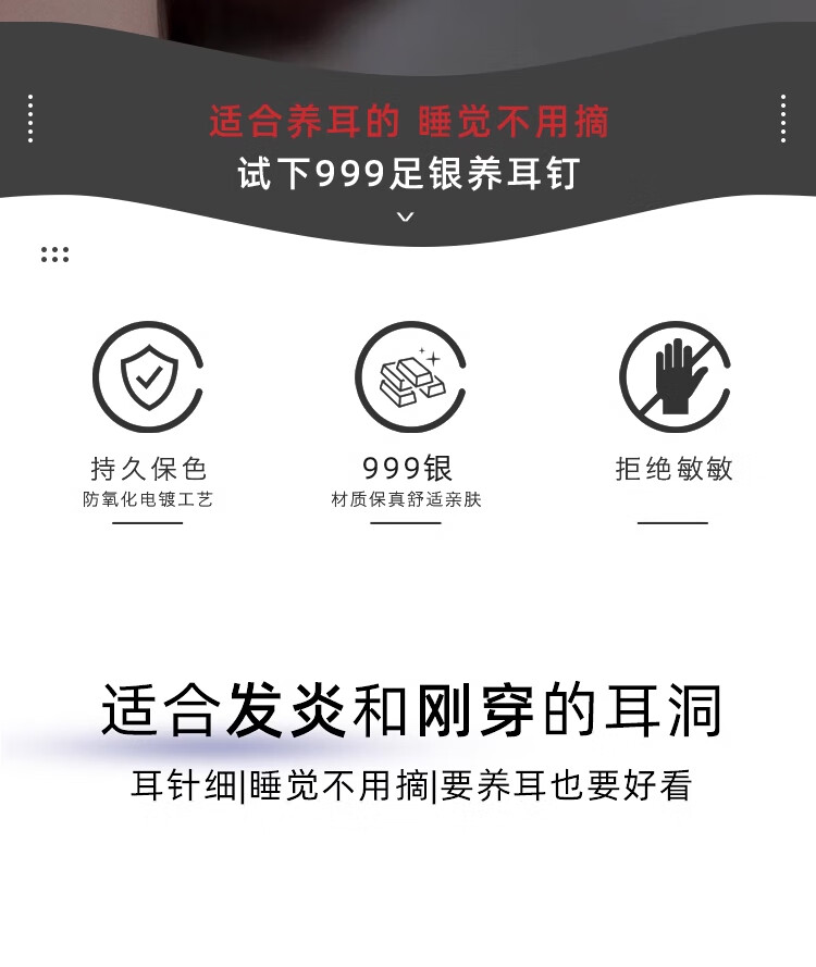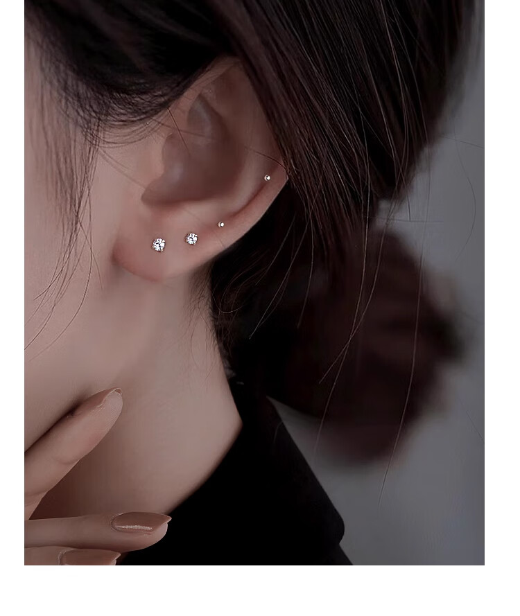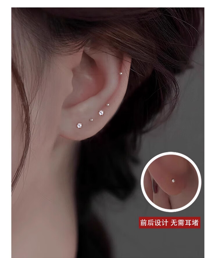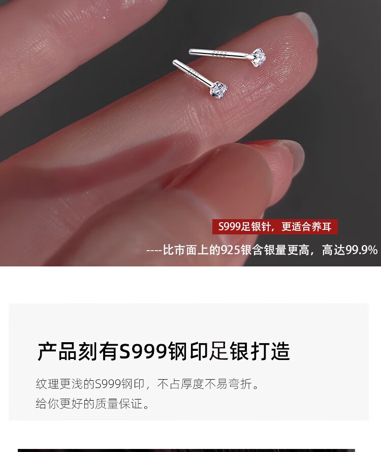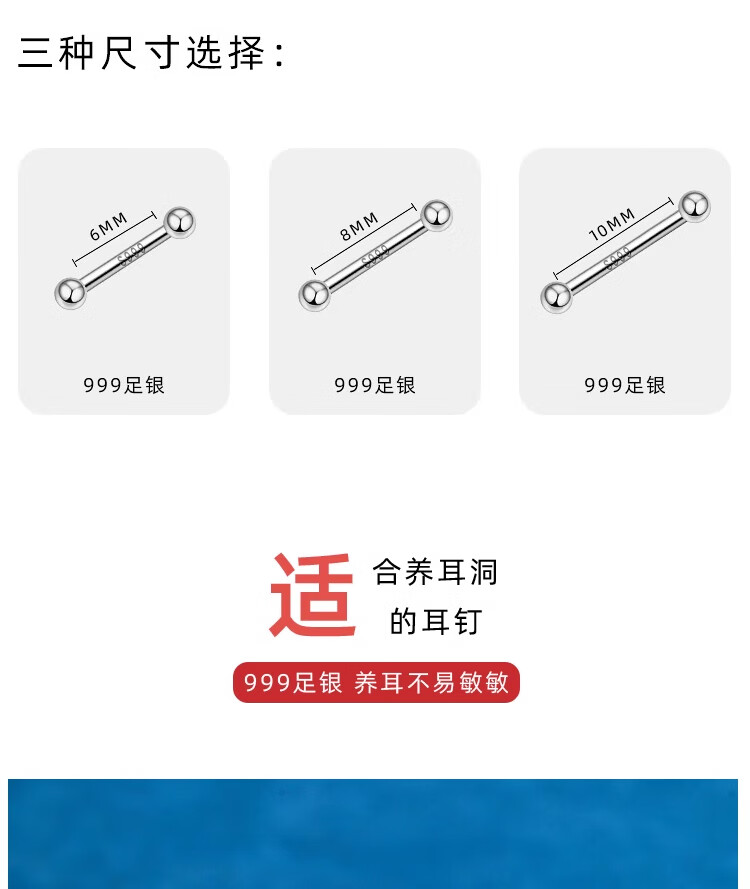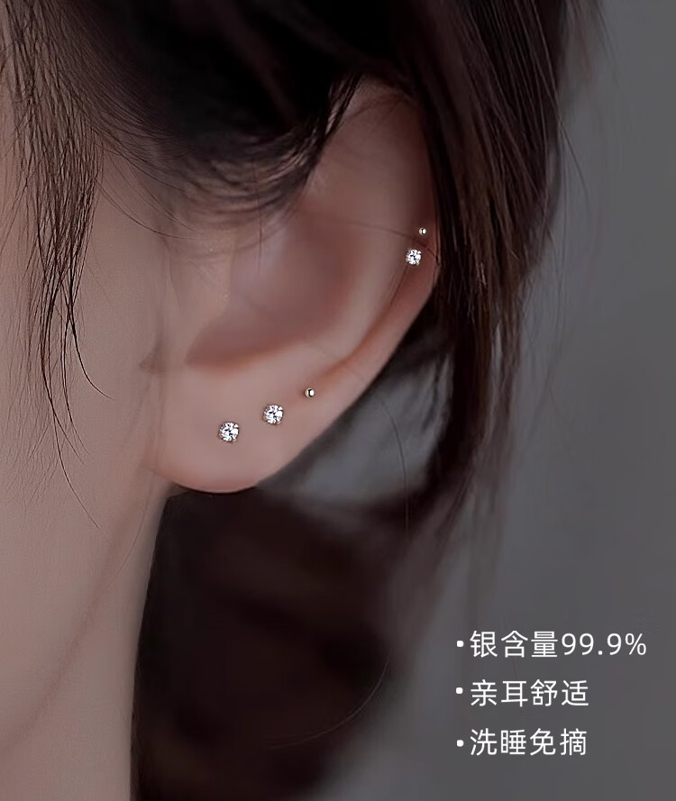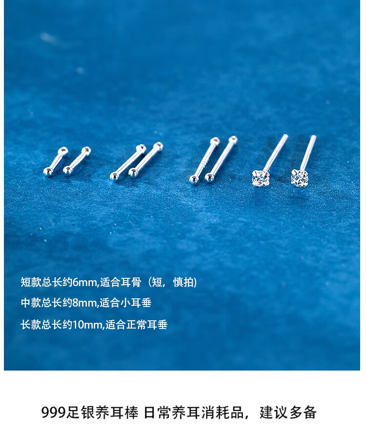 Qi Xiaomi s999 sterling silver round bead earrings for women with pierced ears for sleeping without removing them 2025 new hot style anti-blocking ear stick earrings for women 999 pure silver 8mm round ball silver 2 pairs