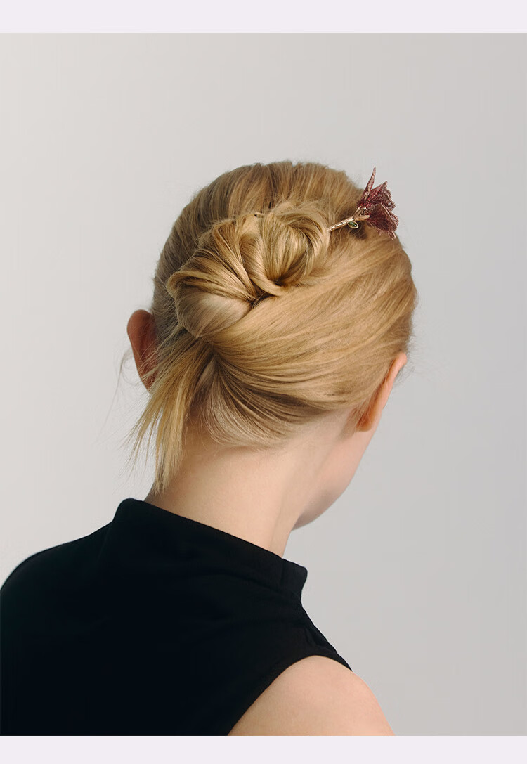 Qianzi shes Qianzi original handmade beading gradient embroidery flower hairpin new Chinese style hairpin red A0