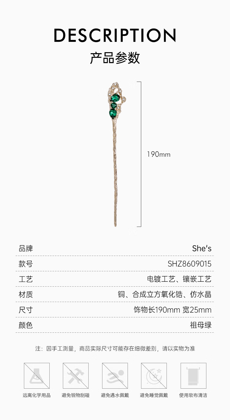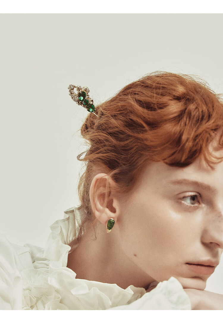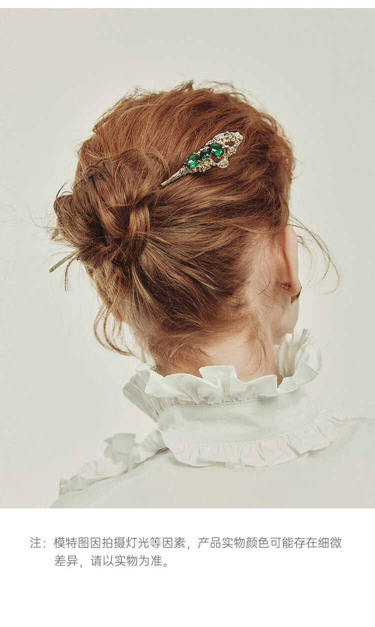 Qianzi shes Rousseau holiday bright craft crystal emerald hairpin light luxury new Chinese style hairpin for women emerald D0