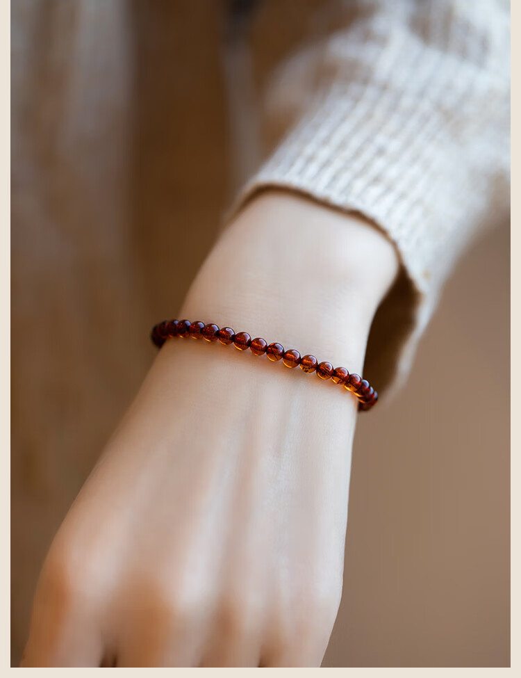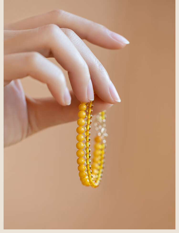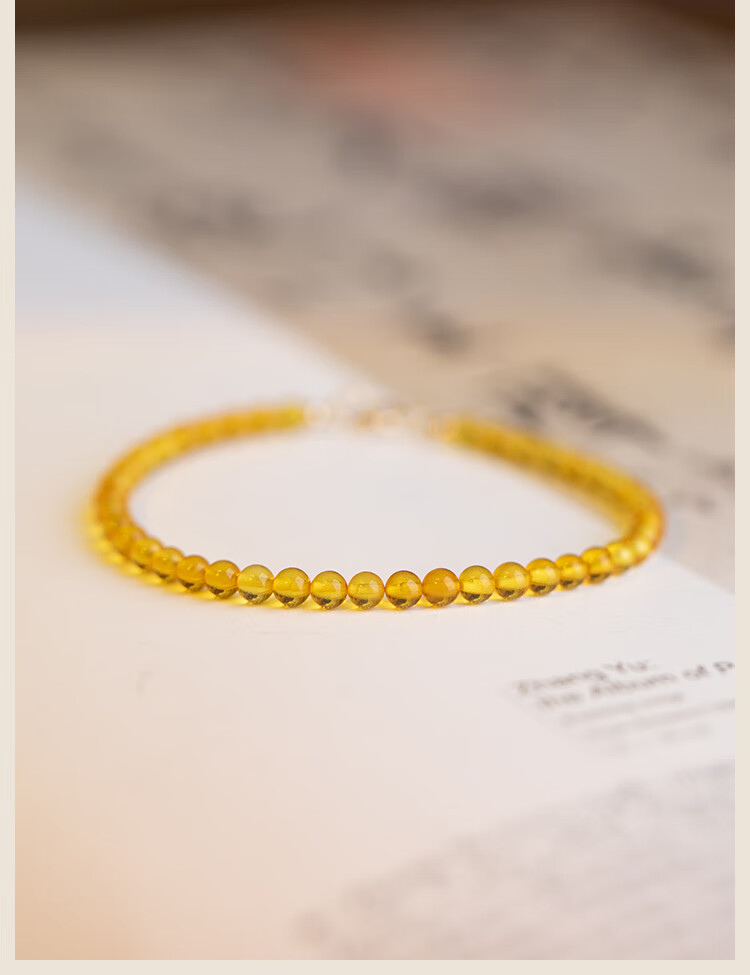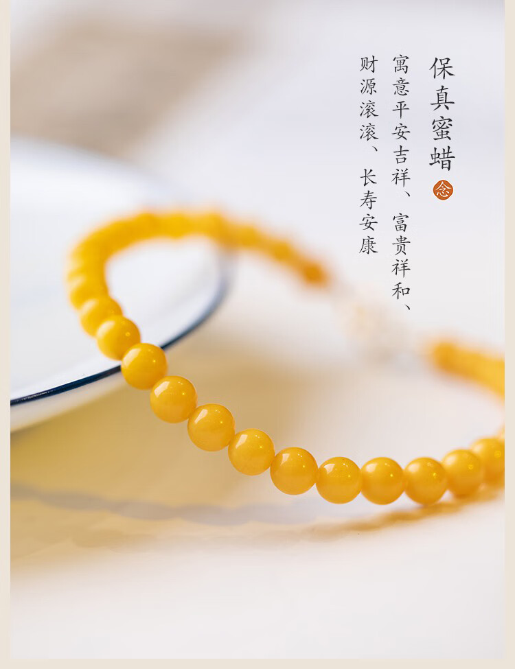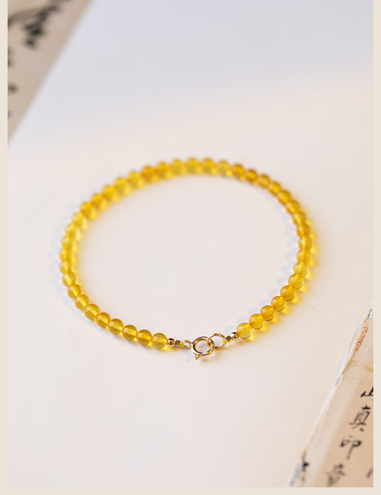 Gold Amber Bracelet for Women Old Beeswax Bracelet New Chinese Style Lucky Beads Hand Decoration Beads Beads Niche Gift for Women Old Beeswax - Suitable for Wrist Circumference 17cm