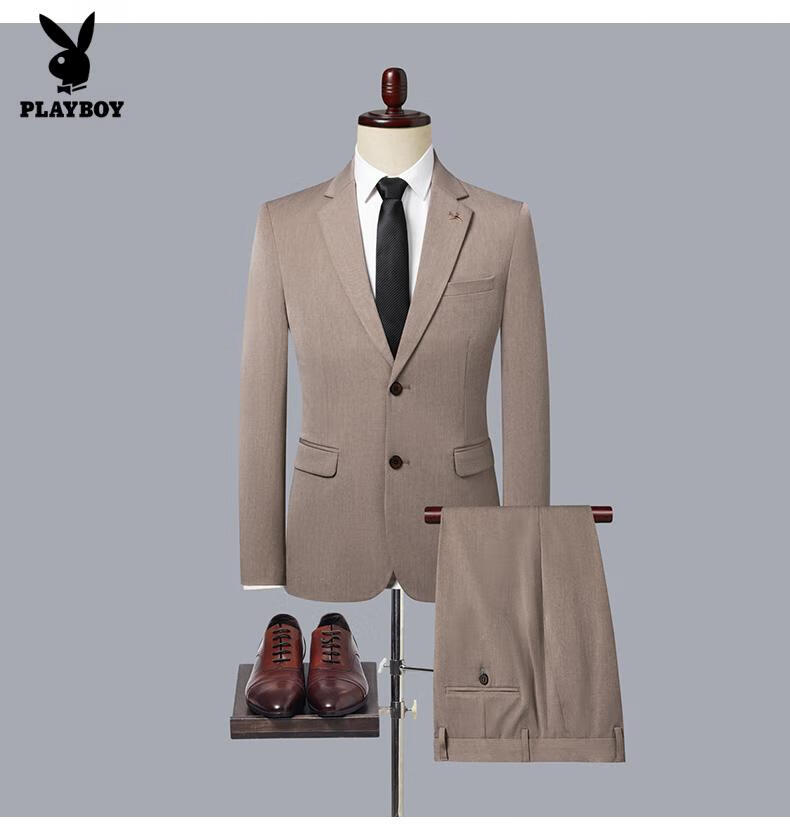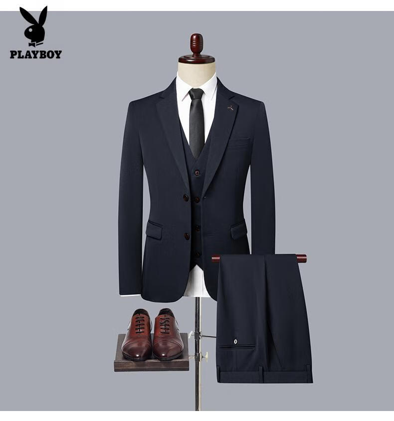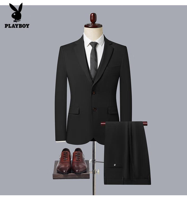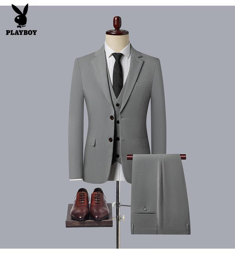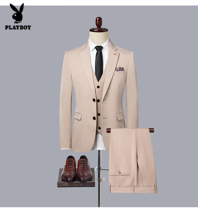 Playboy commuter business large size two-button suit suit men's high-end Korean style slim formal casual suit three-piece suit white three-piece suit XL