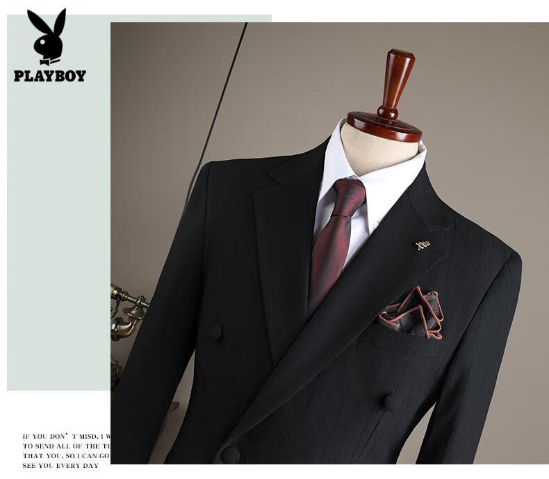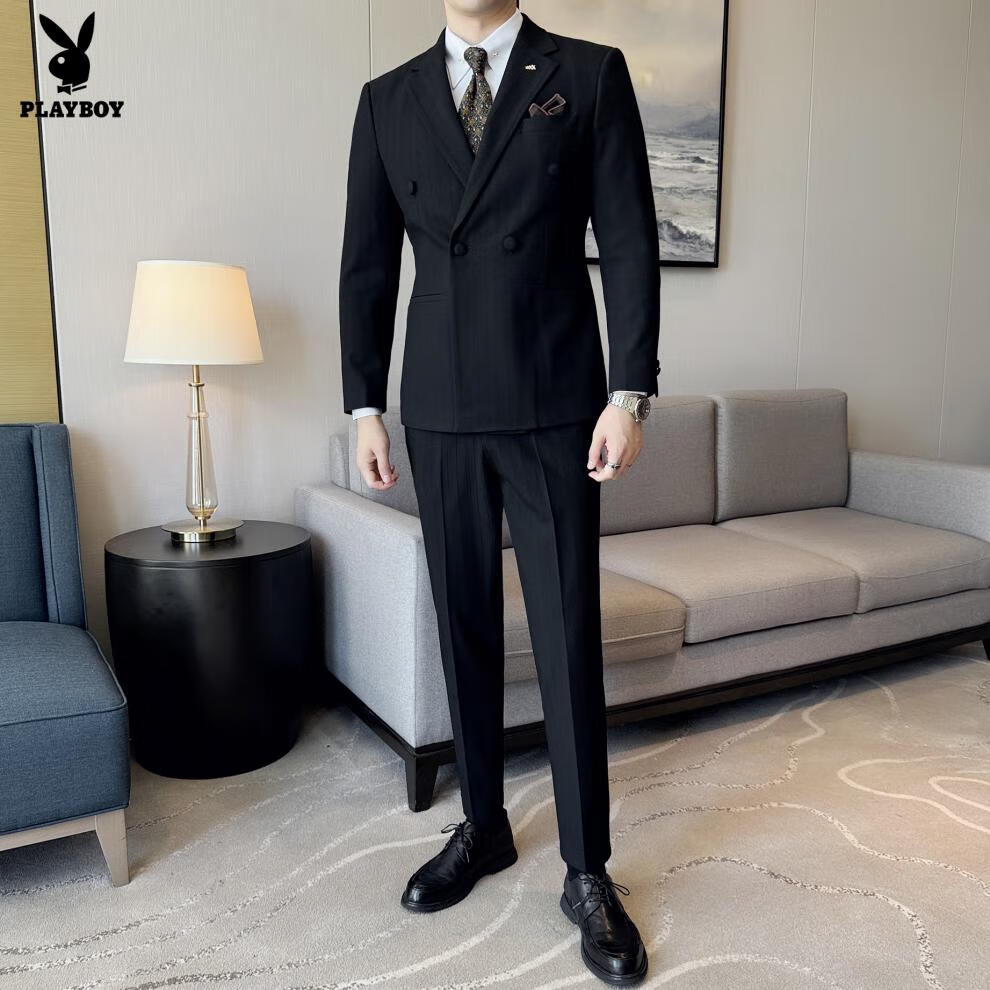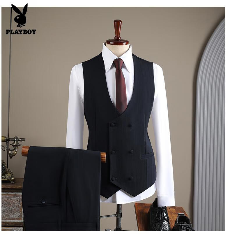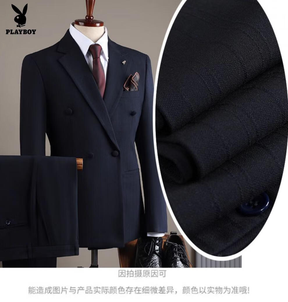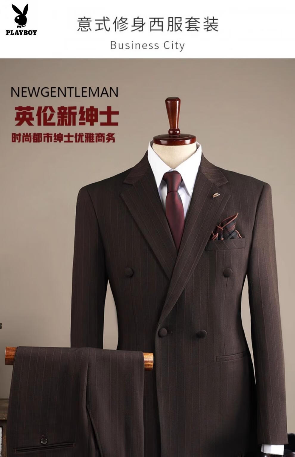 Playboy 2025 Winter Suit Men's Retro Striped High-Quality Double-breasted Suit Three-piece Formal Wedding Dress Retro Three-piece Suit XL 52