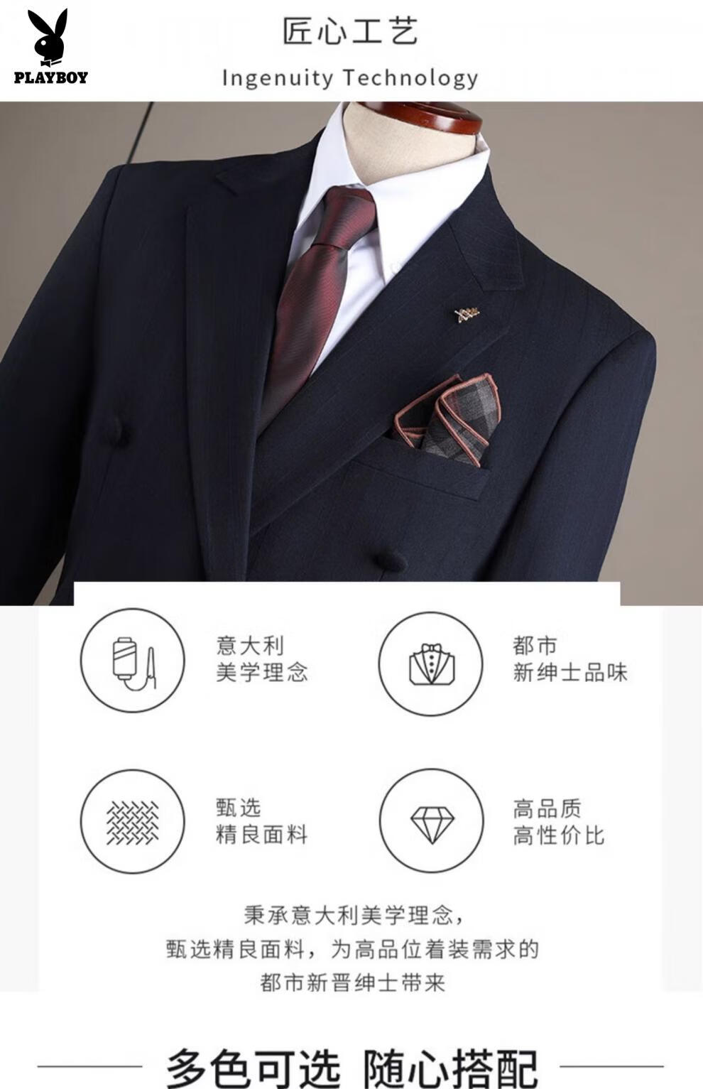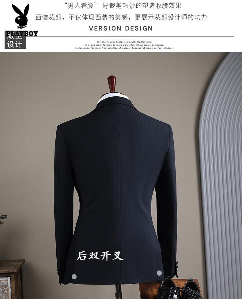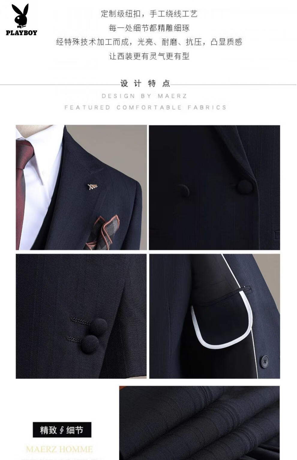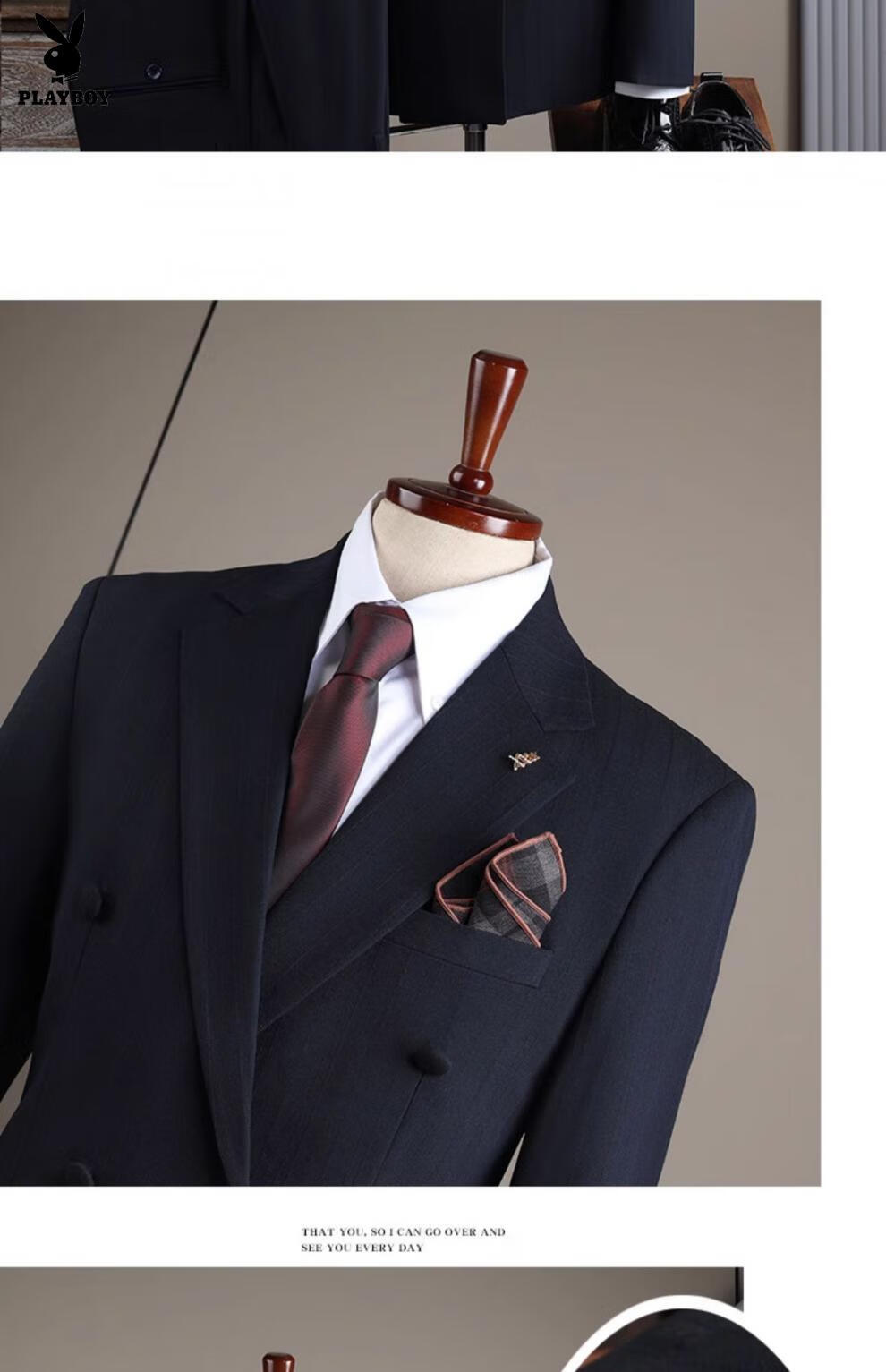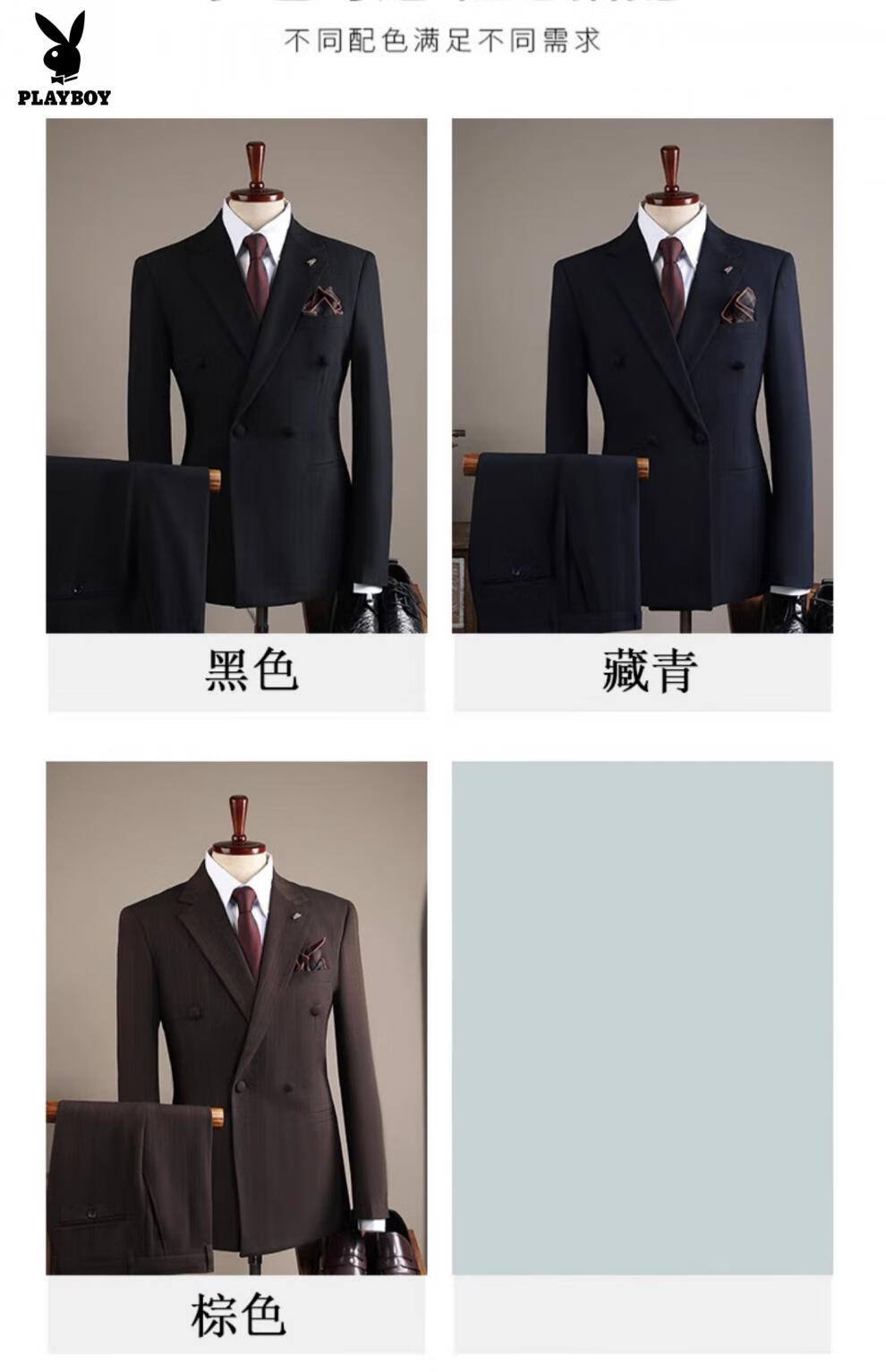 Playboy 2025 Winter Suit Men's Retro Striped High-Quality Double-breasted Suit Three-piece Formal Wedding Dress Retro Three-piece Suit XL 52