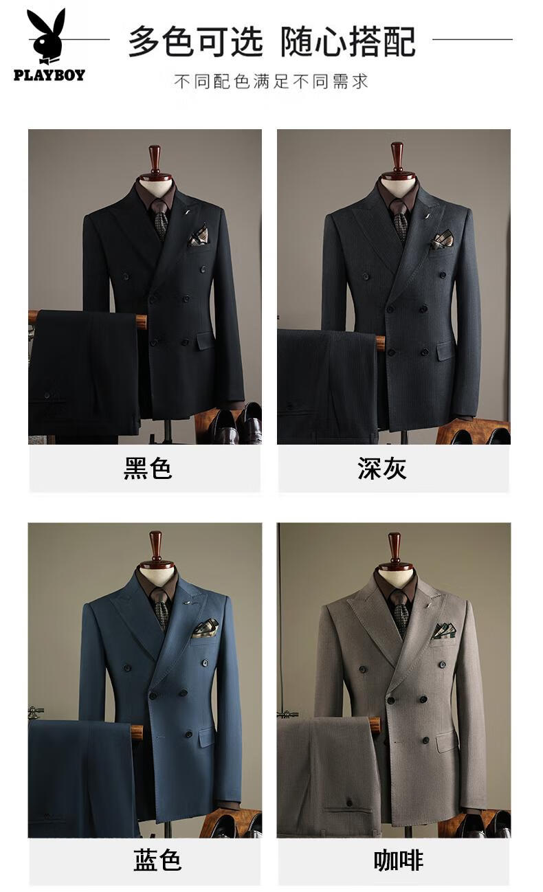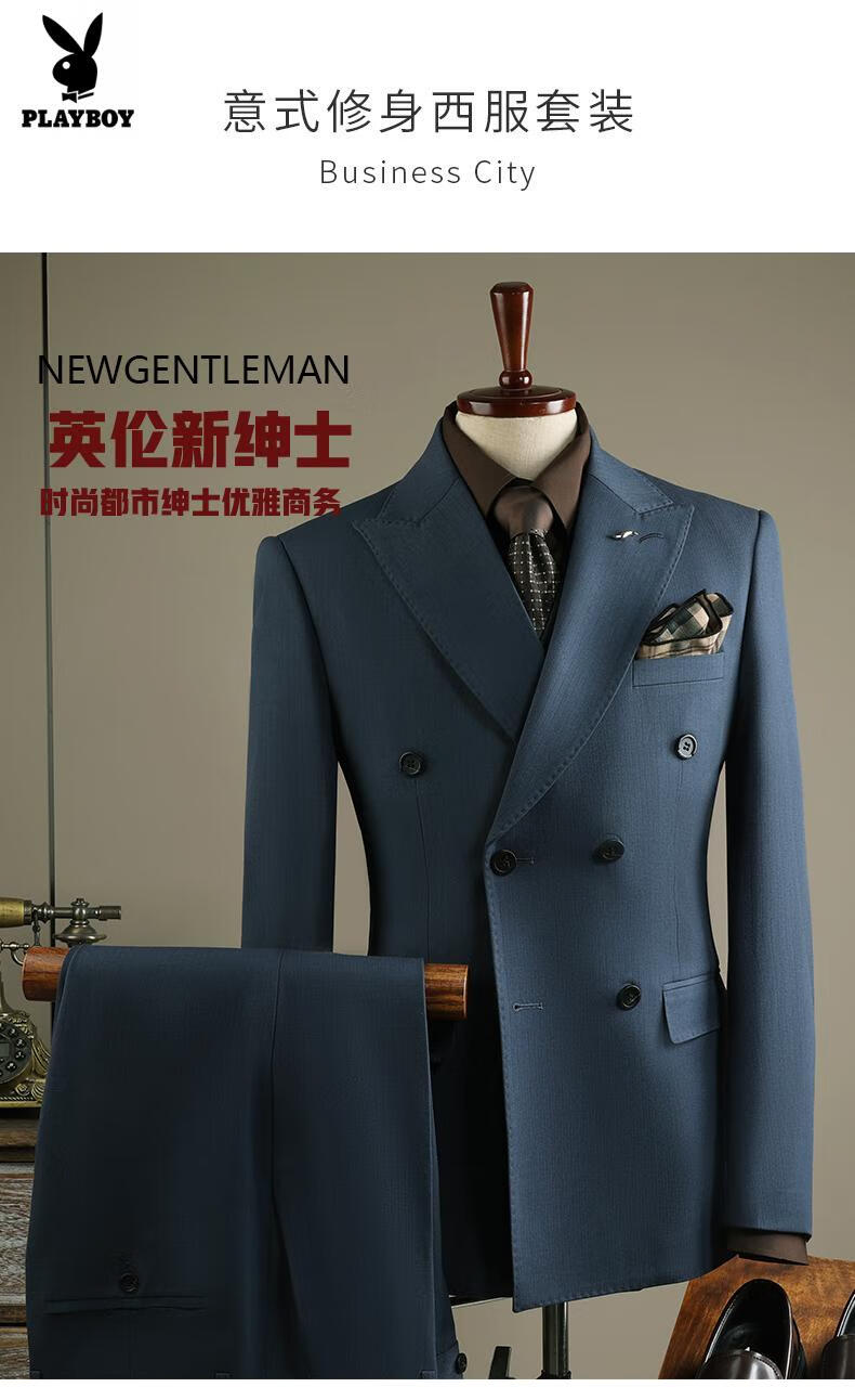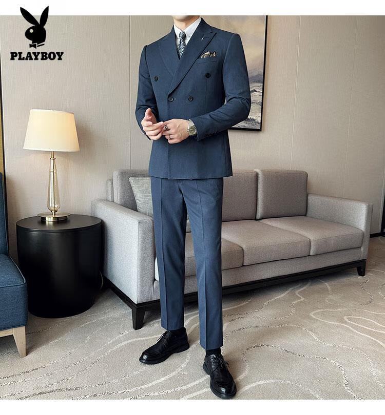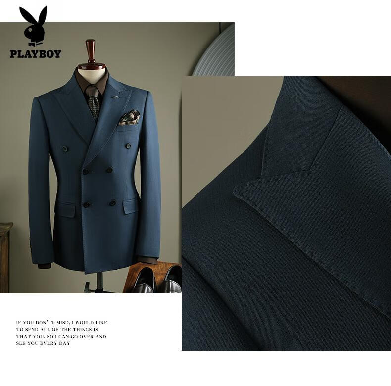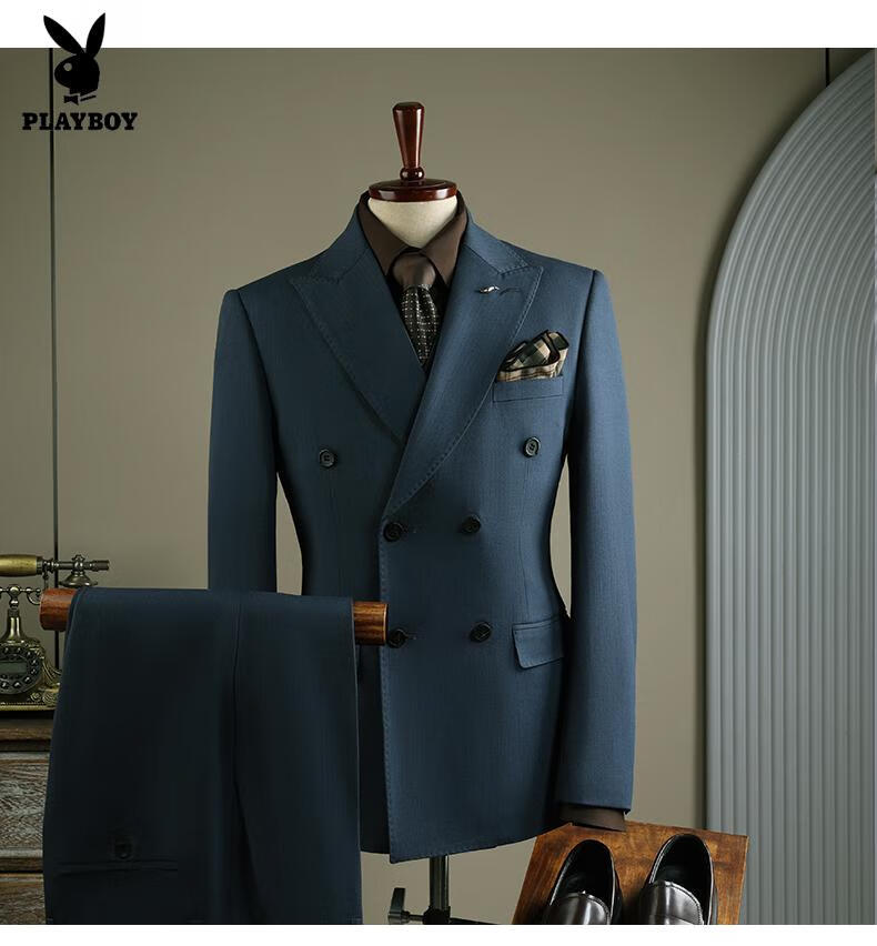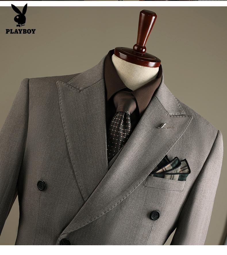 Playboy winter suit men's high-end business formal double-breasted striped suit three-piece groom's wedding dress one button-warm brown three-piece suit 7XL 64