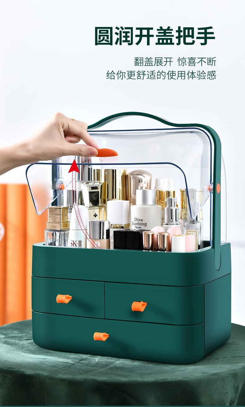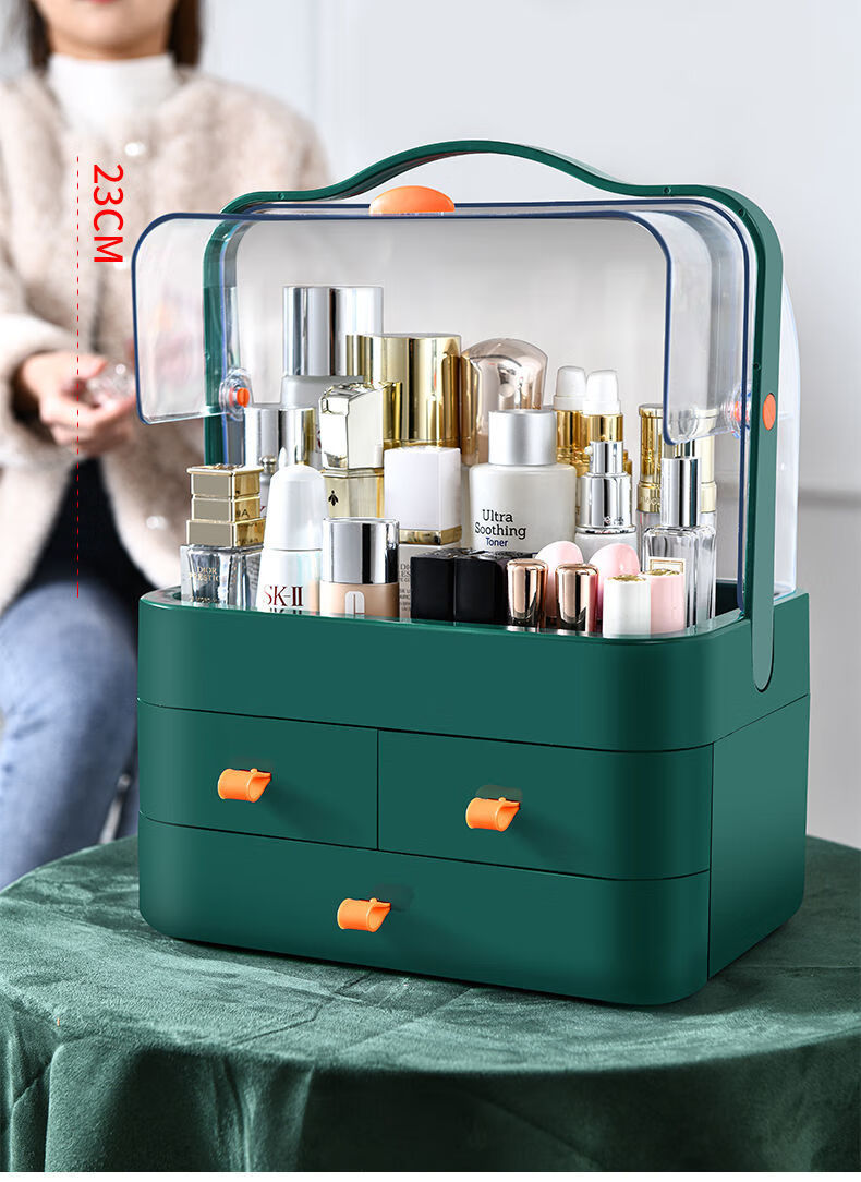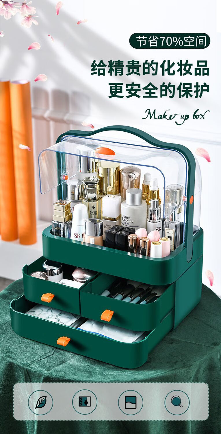 Cosmetics storage box Internet celebrity dust-proof storage rack drawer-type desktop skin care products home lipstick dressing table extra large thickened pink three drawers extra large capacity
