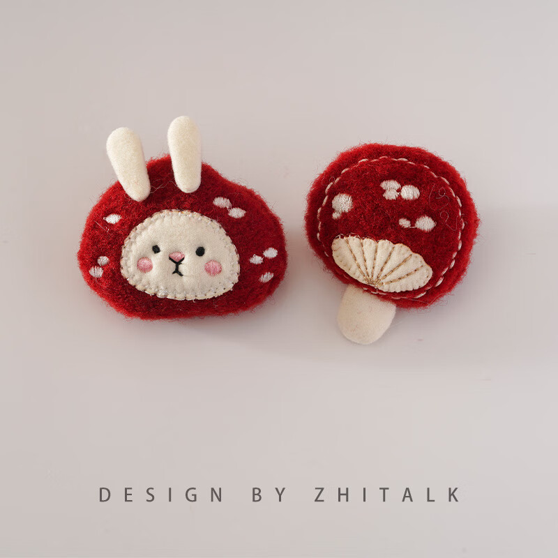 Companion blessing cartoon plush angora red mushroom rabbit brooch accessories pin decoration plush rabbit