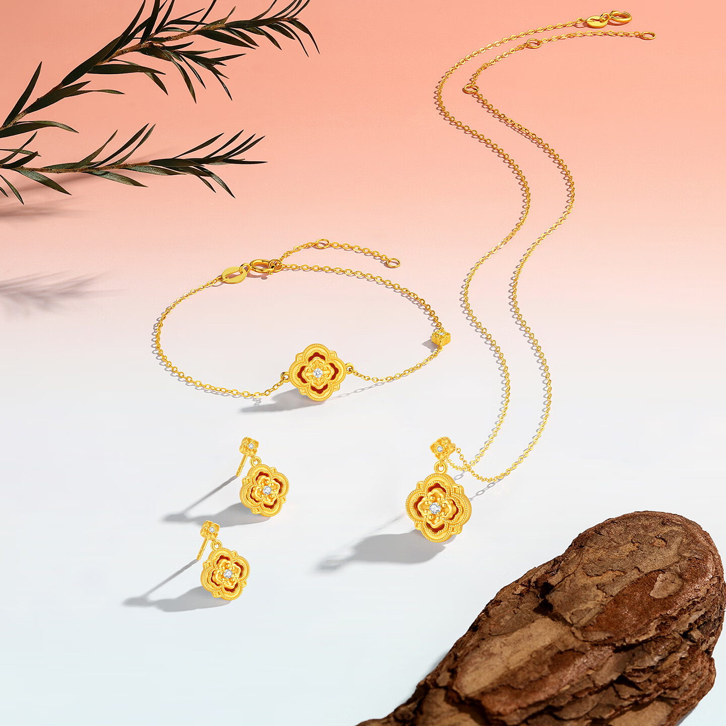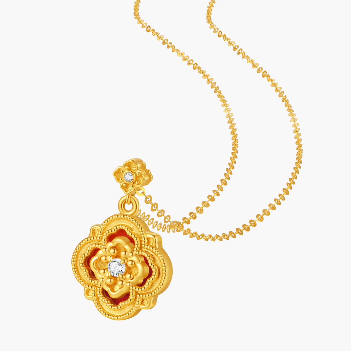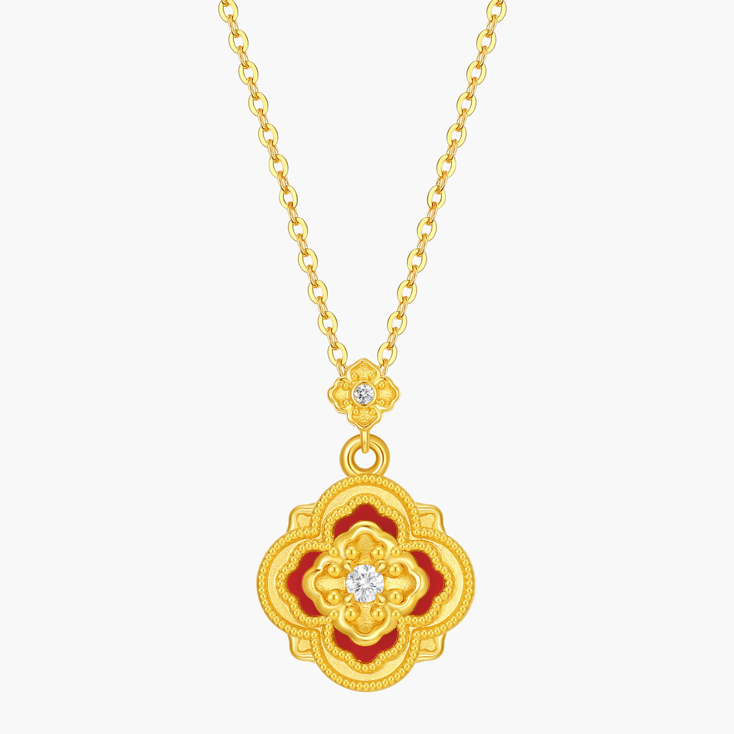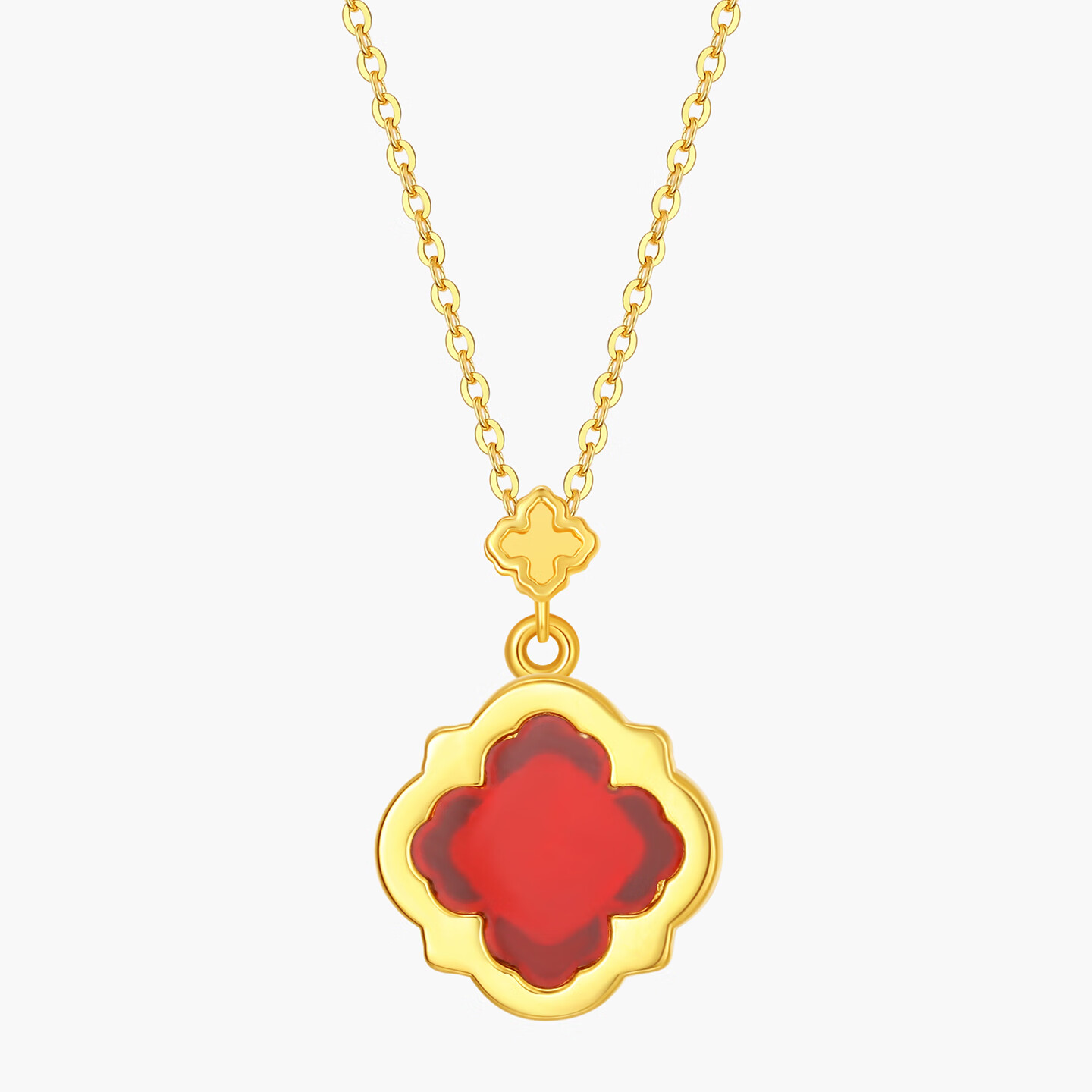 Chao Acer four-leaf clover 18K gold diamond chalcedony necklace women's gold pendant necklace high-end light luxury gift for girlfriend, chain length about 40cm + extension chain
