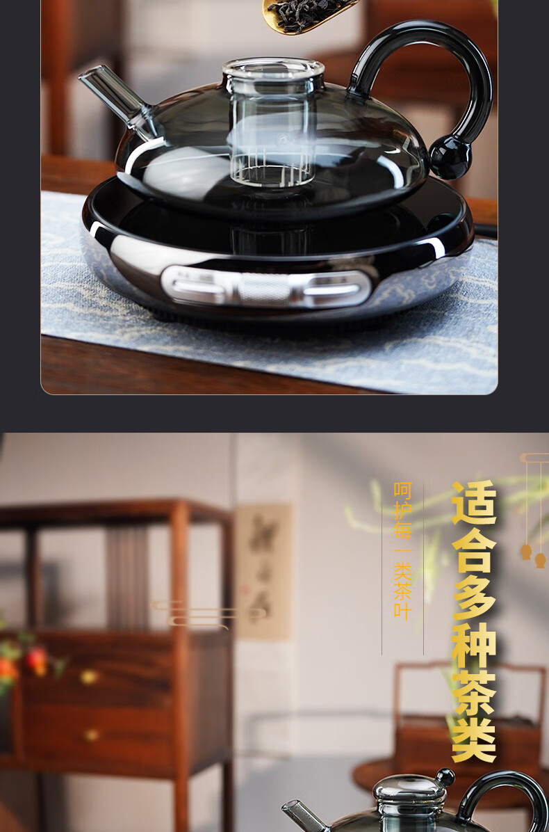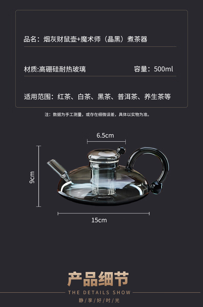 Full-degree heat-resistant glass teapot, electric ceramic stove, teapot, kettle, Pu'er white tea, household stove for teamaking, Huicai Mousepot, single pot 500ml