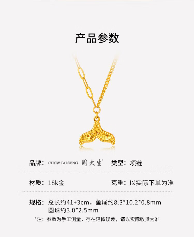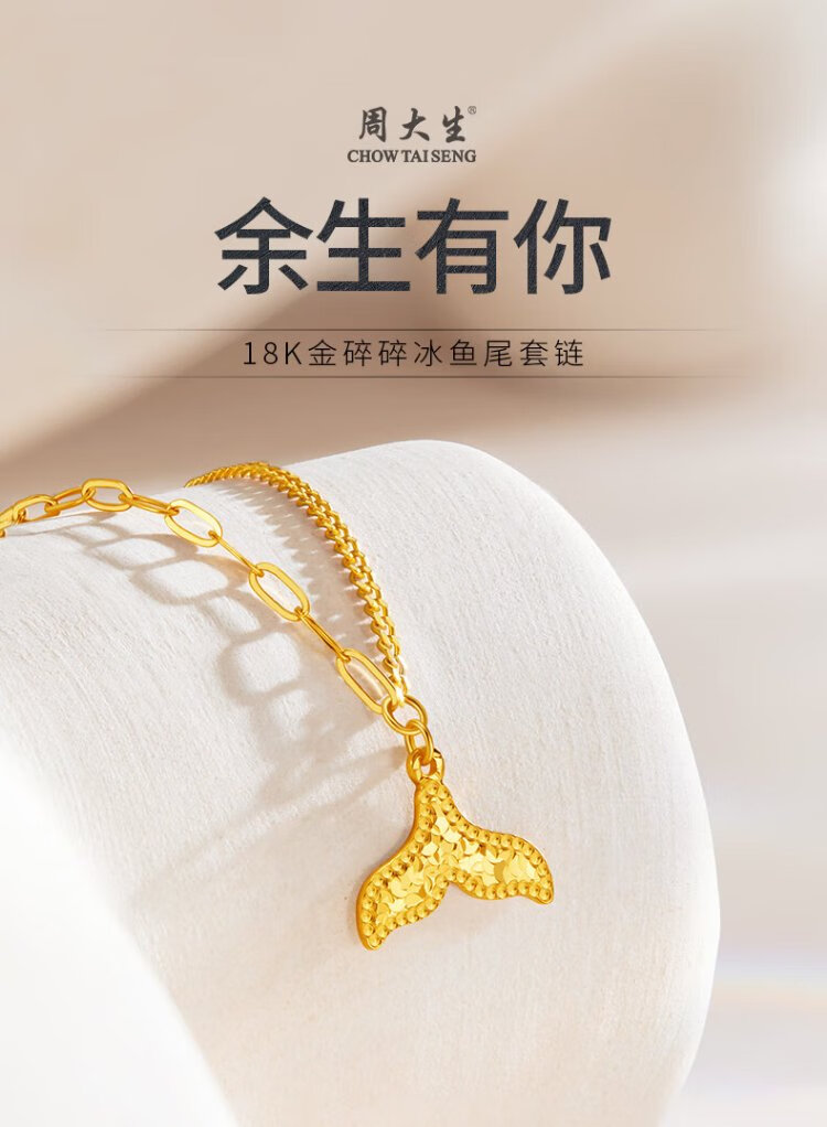 Chow Tai Sang 18K Gold Crushed Ice Fish Tail Chain, Classic Versatile Necklace for Girlfriend and Wife as a Valentine’s Day Gift Crushed Ice Fish Tail Chain, Approximately 1g