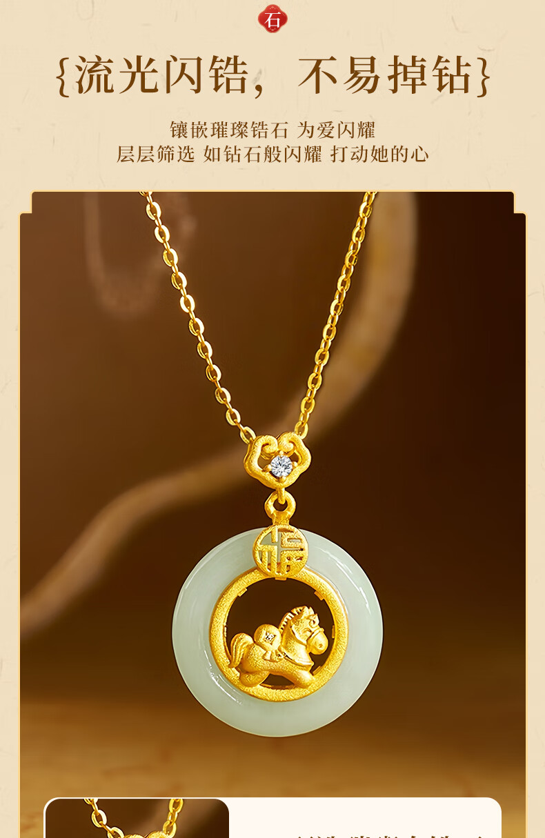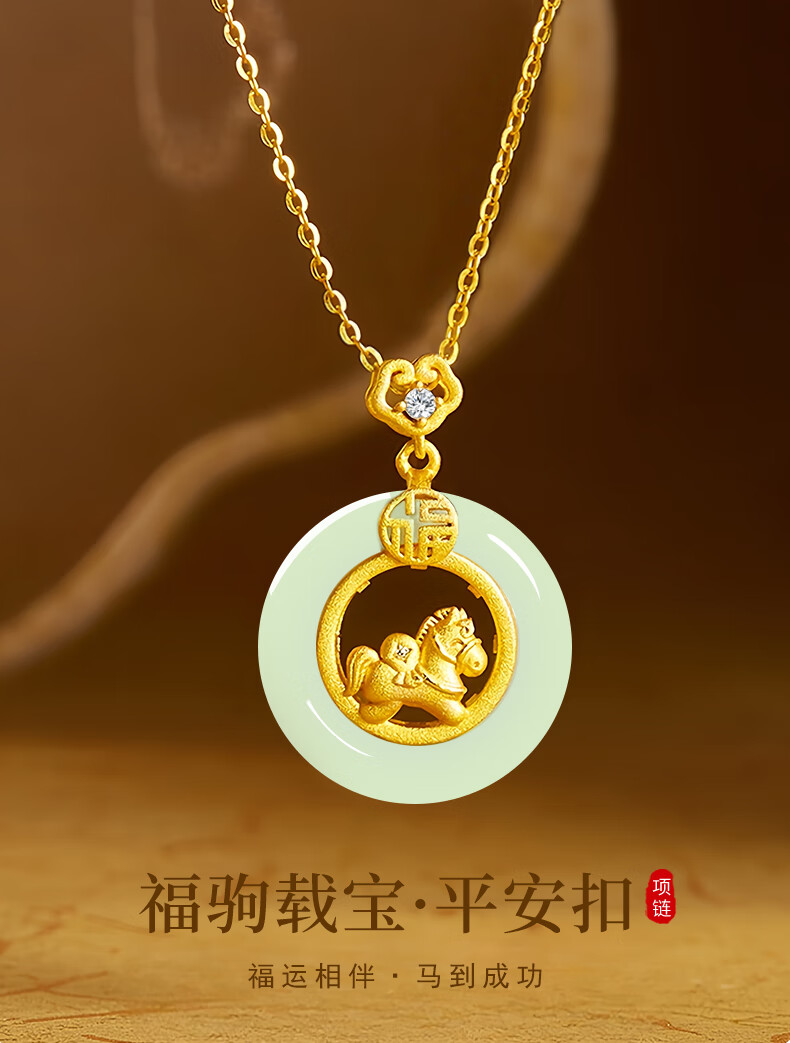 Lao Fengxiang Fuju Zaibao silver necklace women's safety buckle and Tian jade pendant wedding anniversary gift for girlfriend and wife's birthday Fuju Zaibao safety buckle-brand gift box
