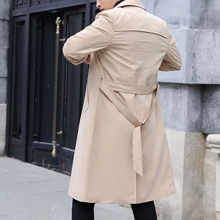 BYPHYTEE young men's long over-the-knee windbreaker autumn new coat jacket men's Korean version slim British mid-length windbreaker Khaki M