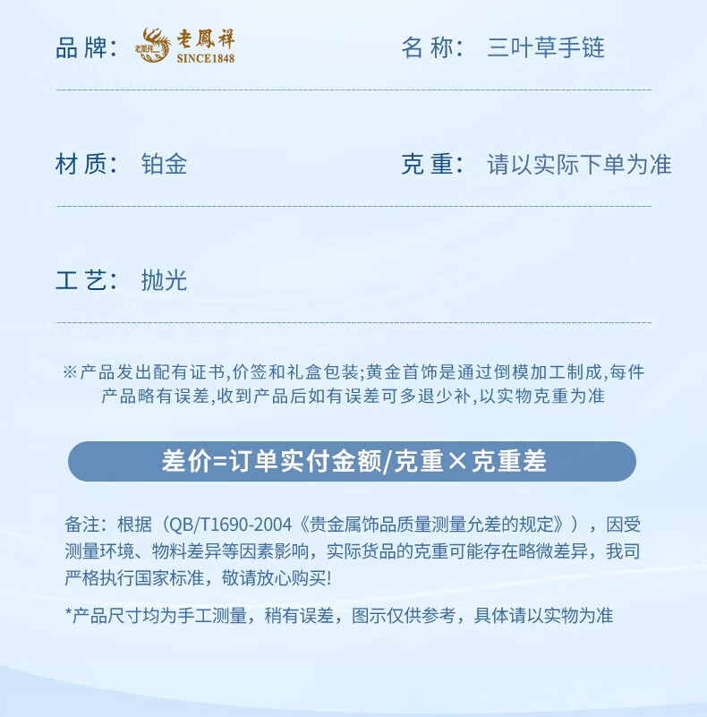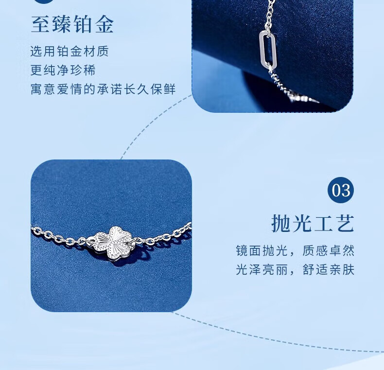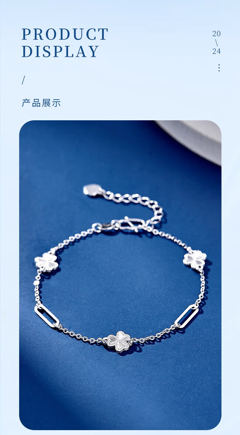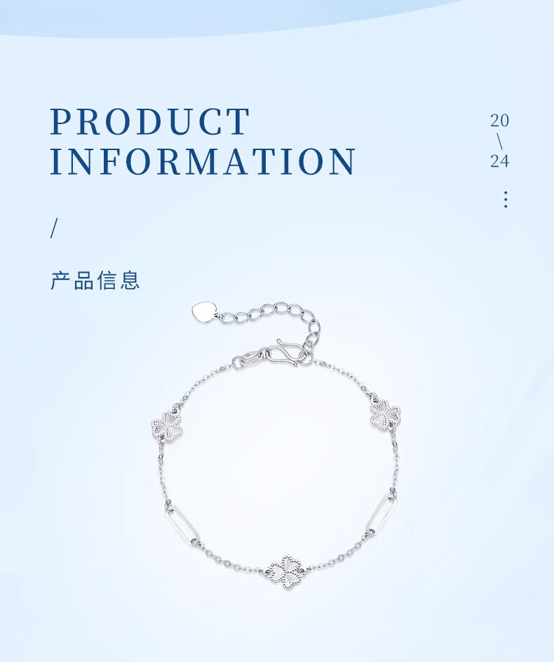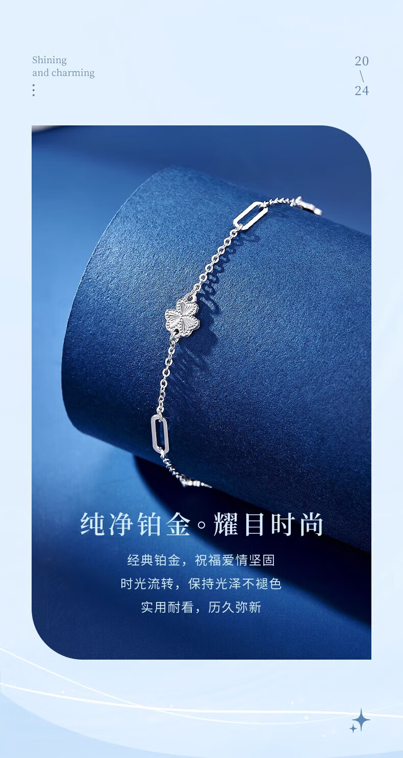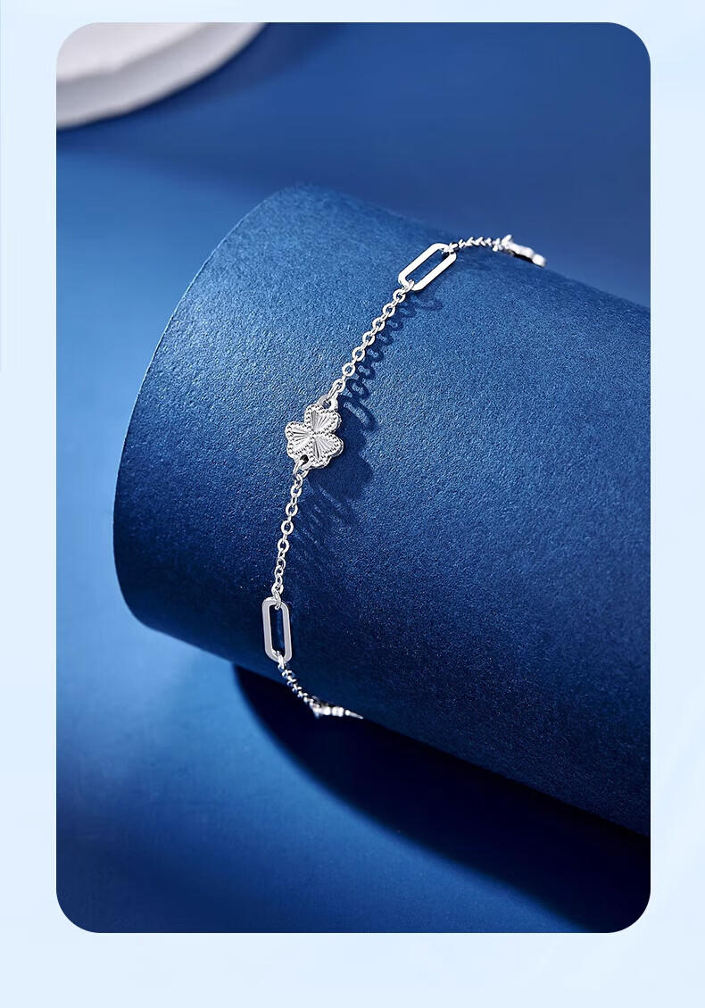 Lao Fengxiang pt950 platinum clover bracelet plain chain bracelet new style ladies gift for wife birthday gift for girlfriend clover platinum bracelet about 3.8g